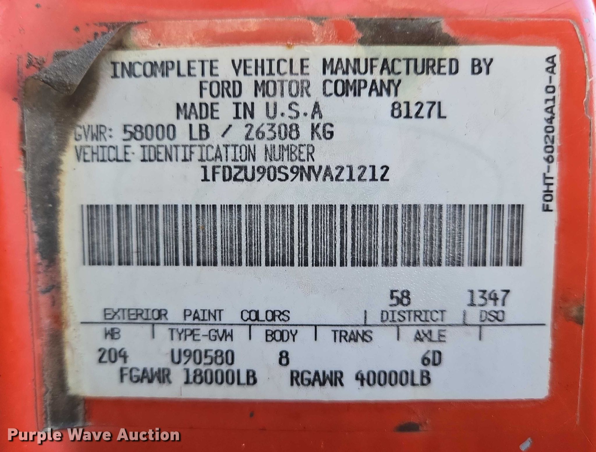 - VIN: 1FDZU90S9NVA21212