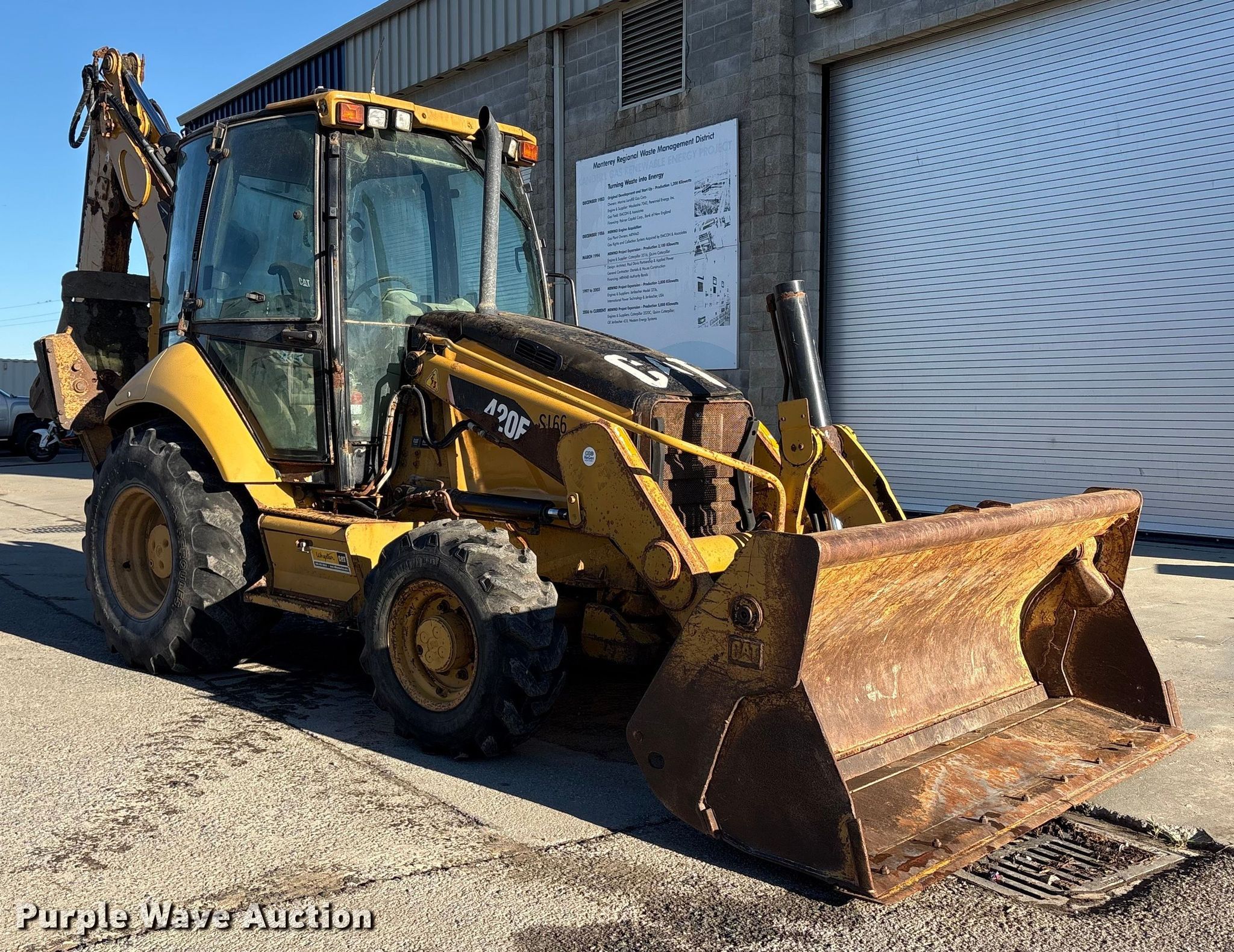 Purple Wave is selling a used Tractor Loader Backhoe in California. This item is a 2009 Caterpillar 420E backhoe with the following: Hours: 3,963 on meter, Serial: CAT0420EKPRA01055