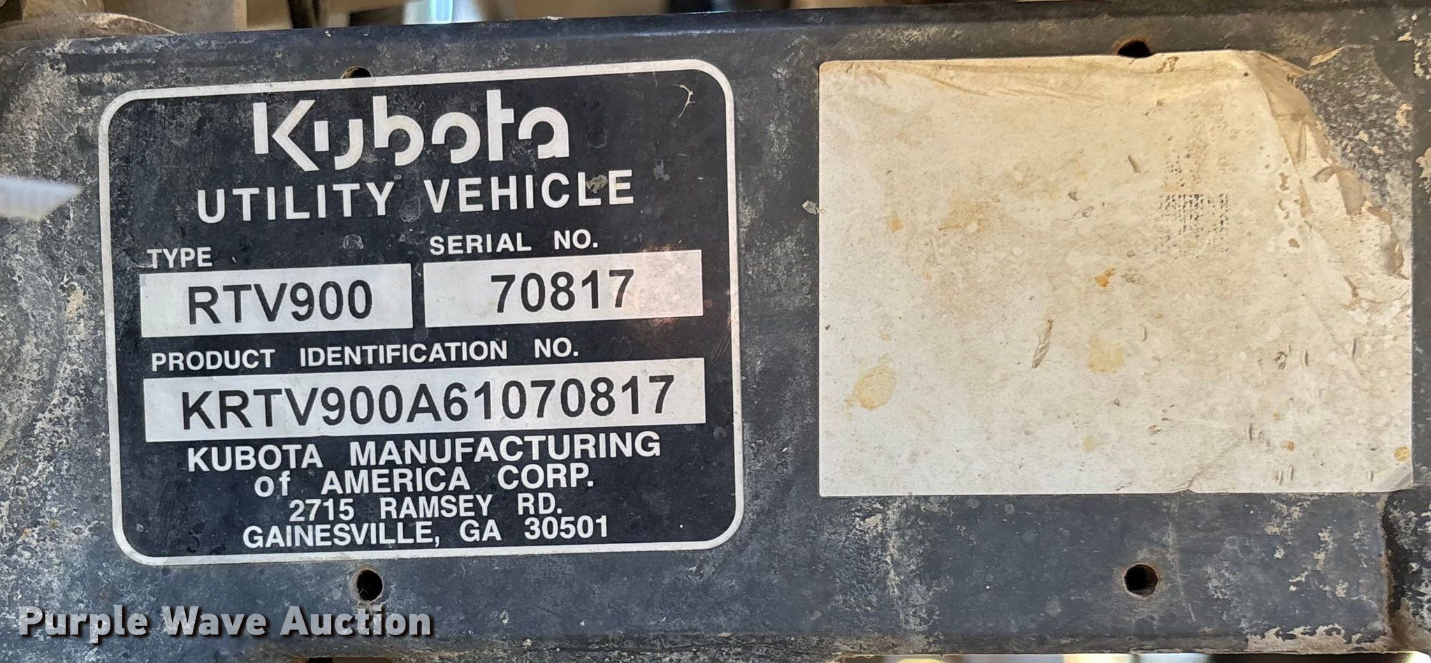 Purple Wave is selling a used Utility Vehicle in Missouri. This item is a 2007 Kubota RTV900 utility vehicle with the following: Hours: 2,423 on meter, VIN: KRTV900A61070817, Serial: 70817