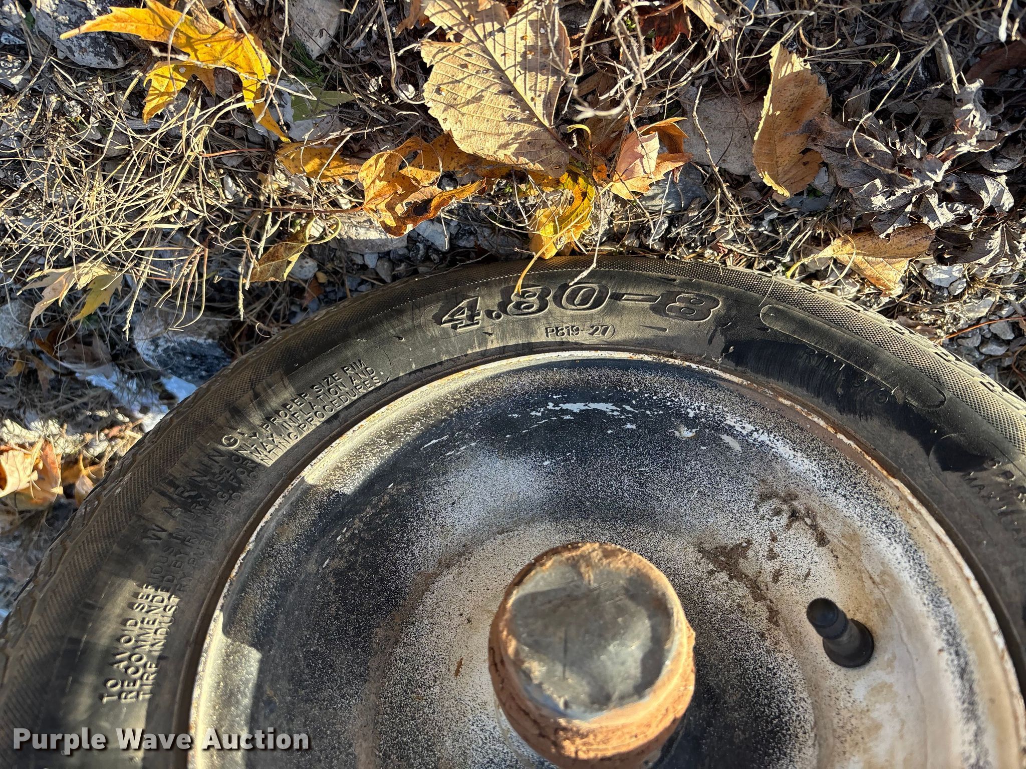 Diamond Demon field drag. Overall width: 65". Features Teeth: 17, Spacing: 4", Depth: approximately 2", Rear roller: diameter: 12". Tires Tire size: 4.80-8. City of Centralia, MO. Centralia, MO 65240