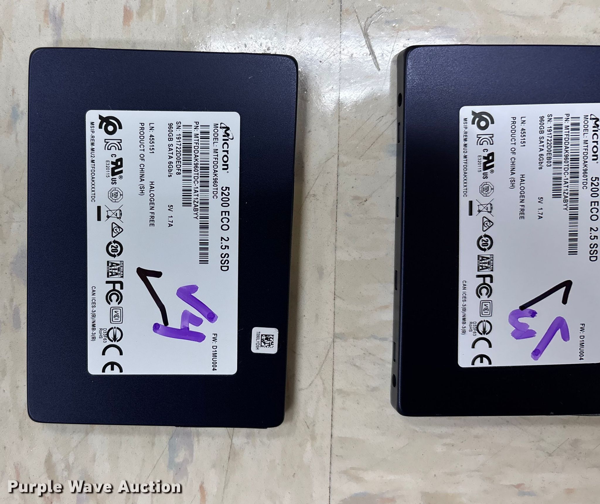 Take a look at this used (8) Micron 5200 ECO 2.5 SSD hard drives being sold on December 16th, 2025 in the Tuesday December 16 Government Auction. Take a look at all of the item information below or take a look at similar auctions for Electronics.