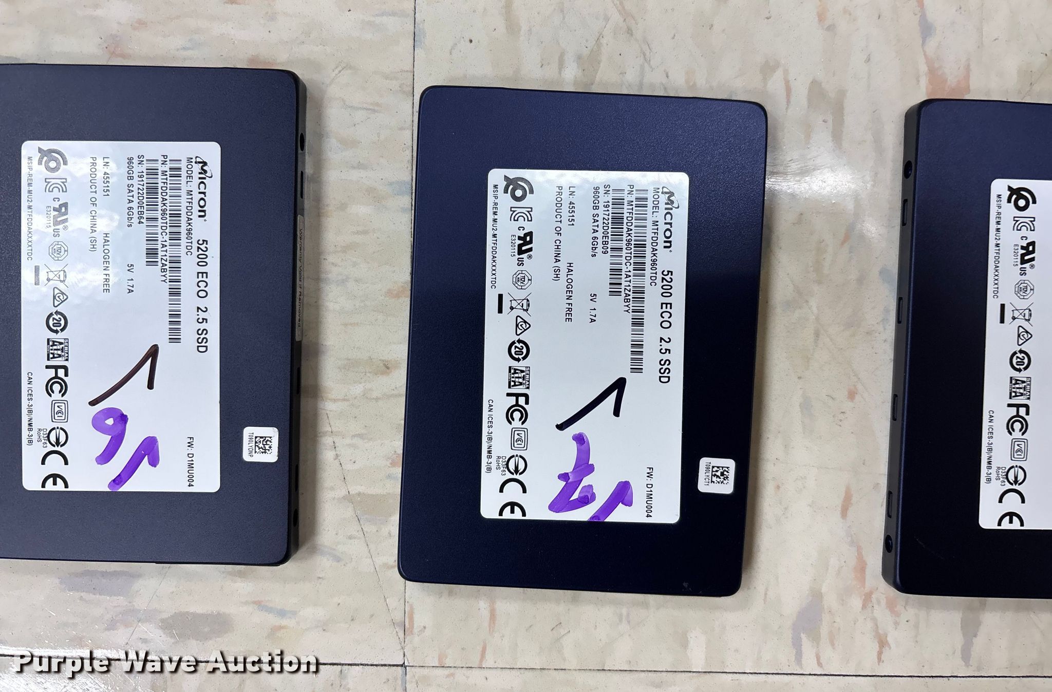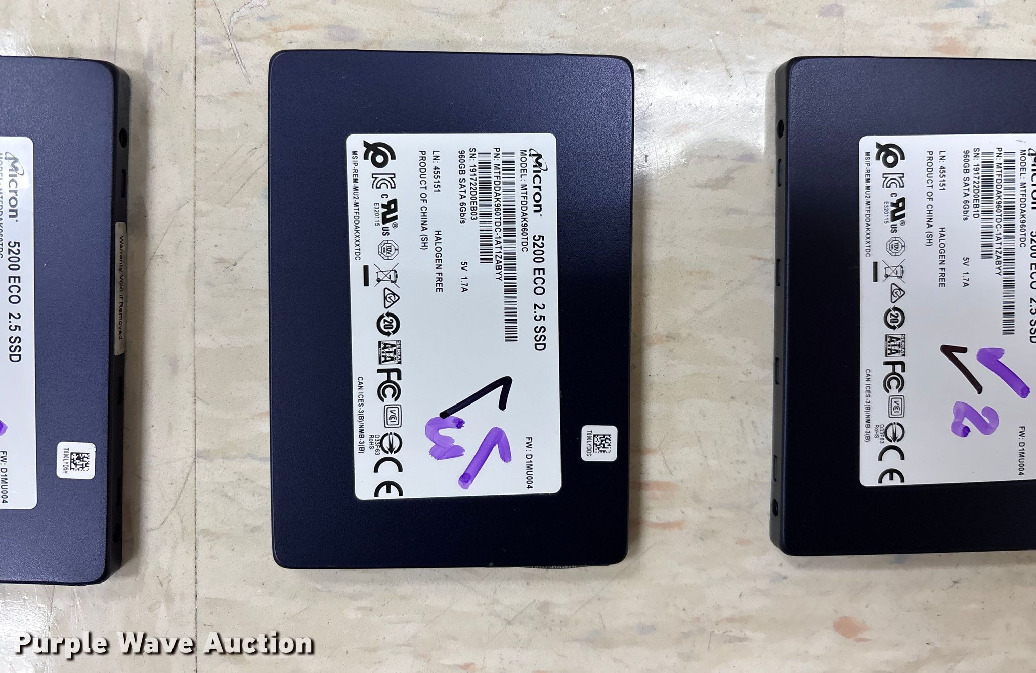 Purple Wave is selling a used Electronics in Missouri. This item is a (8) Micron 5200 ECO 2.5 SSD hard drives with the following: Unit #: 1