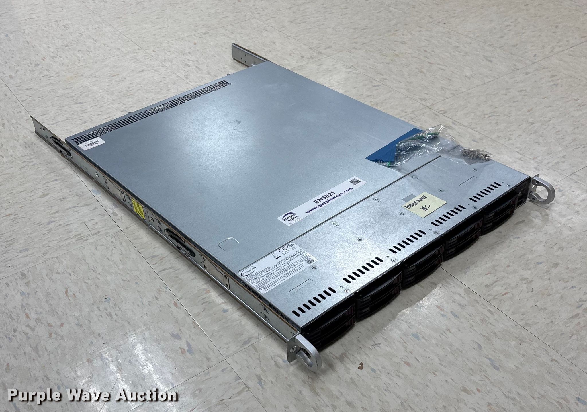 Purple Wave is selling a used Electronics in Missouri. This item is a Supermicro 116-7 server with the following: (2) Xeon Silver 4216 processors, 2.10 GHz, 132GB RAM, Hard drives removed