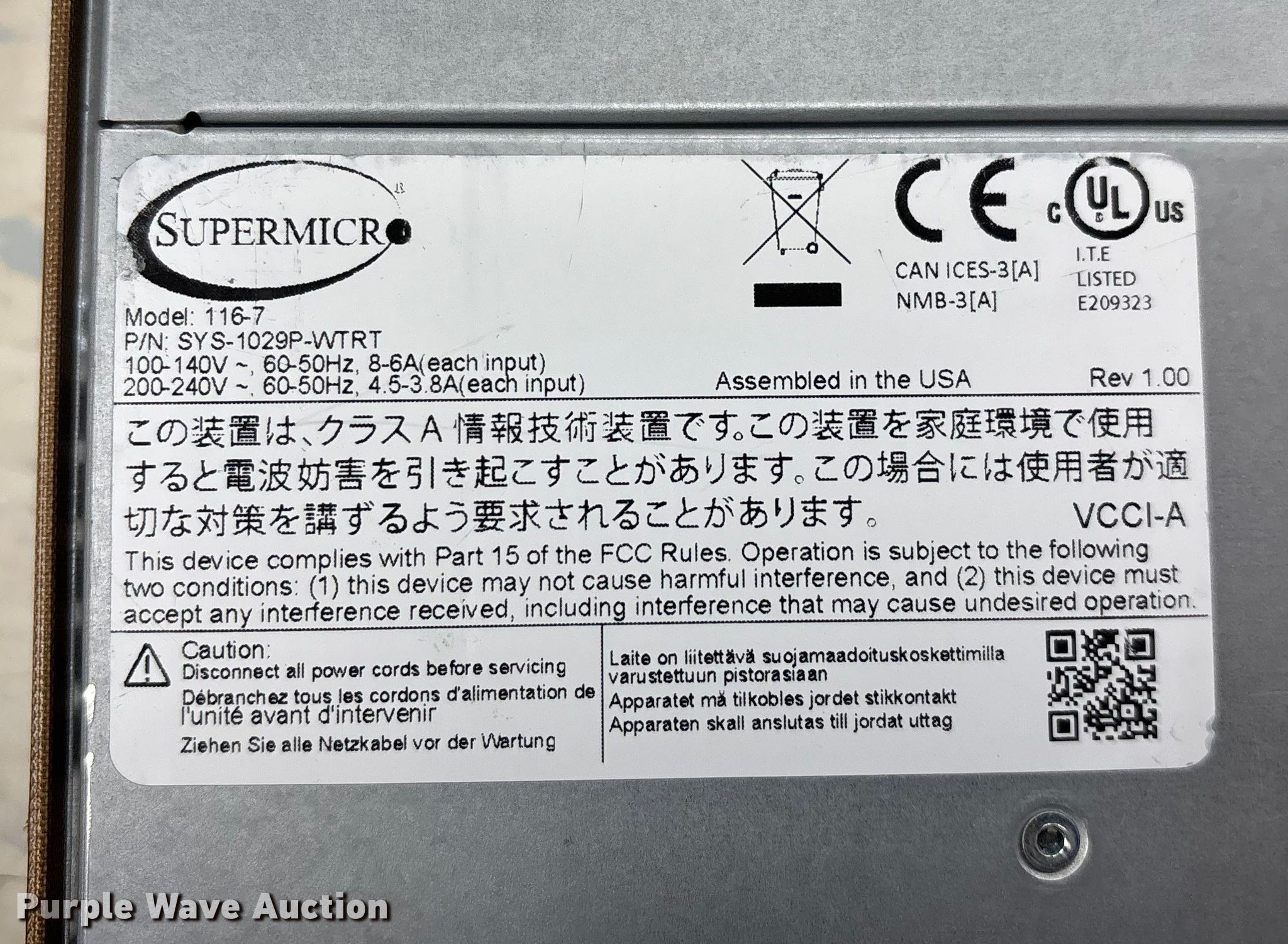 Take a look at this used Supermicro 116-7 server being sold on December 16th, 2025 in the Tuesday December 16 Government Auction made by Supermicro. Take a look at all of the item information below or take a look at similar auctions for Electronics.