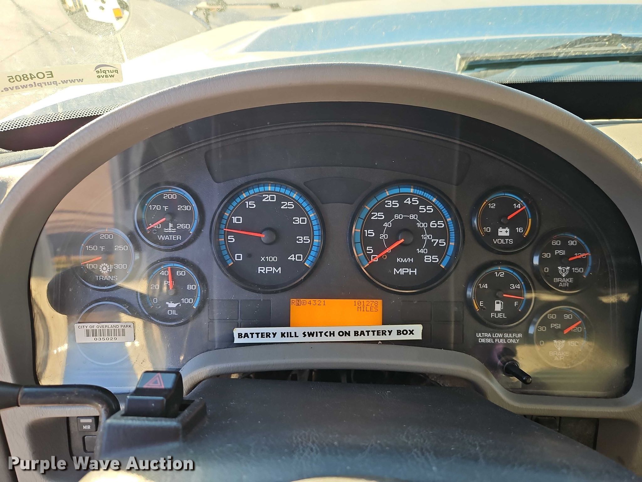 2009 International 7400 dump truck. Miles: 101,278 on odometer, Hours: 6,424 on meter, VIN: 1HTWGAAT69J077342, Unit #: 8219. Engine International Maxxforce DT, Displacement: 7.64L, Cylinders: 6, Fuel type: Diesel. Transmission Allison, Automatic. Chassis Axles: Tandem, Suspension: Spring over walking beam, Brakes: Air, PTO, GVWR: 58,000 lbs FAWR: 18,000 lbs, IAWR: 20,000 lbs, RAWR: 20,000 lbs, Wheelbase: 490". Interior AC, Heat, Cruise control, Brake controller. Features Bed Dump bed, Monroe RDS, Length: 14', Width: 97", Side height: 46", Side board height: 10", Bed type: Steel, Roll tarp, Ram: Single, End gate: Manual. Tires Front: 315/80R22.5, Rear: 11R22.5. Notes Jump start required during on-site data collection, Possible engine issues, white smoke , Coolant leak. Kansas title. Title distribution may be delayed up to 30 days from verification of funds. City of Overland Park, KS. Overland Park, KS 66213
