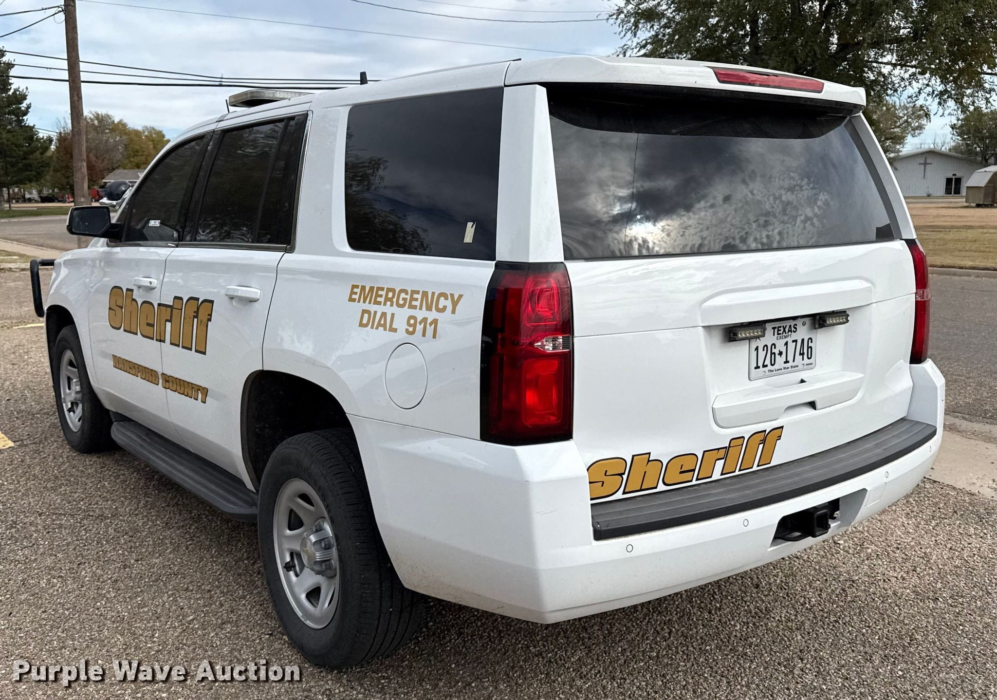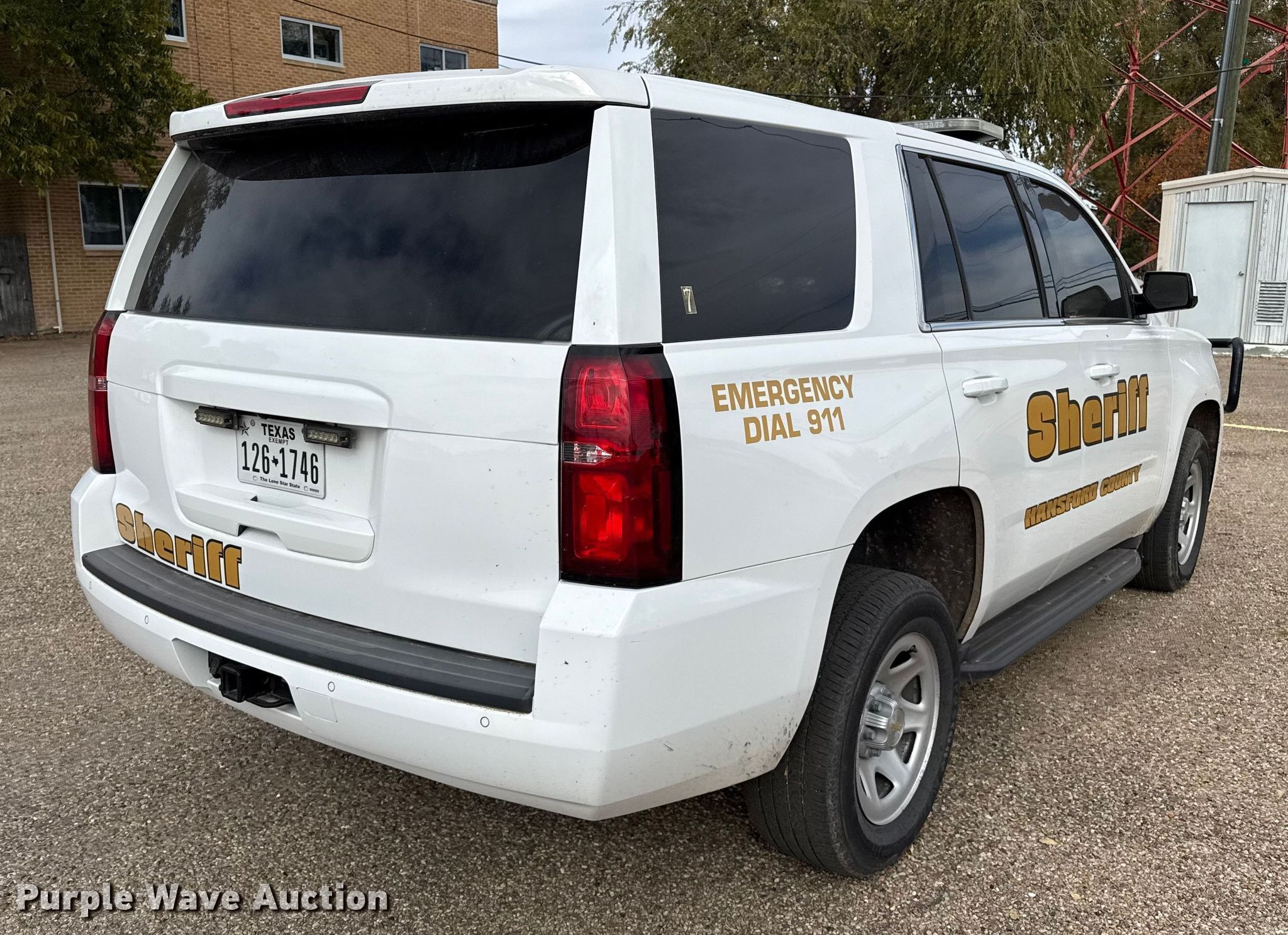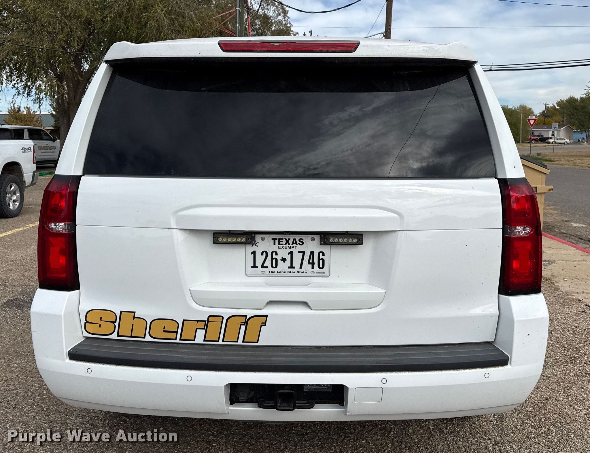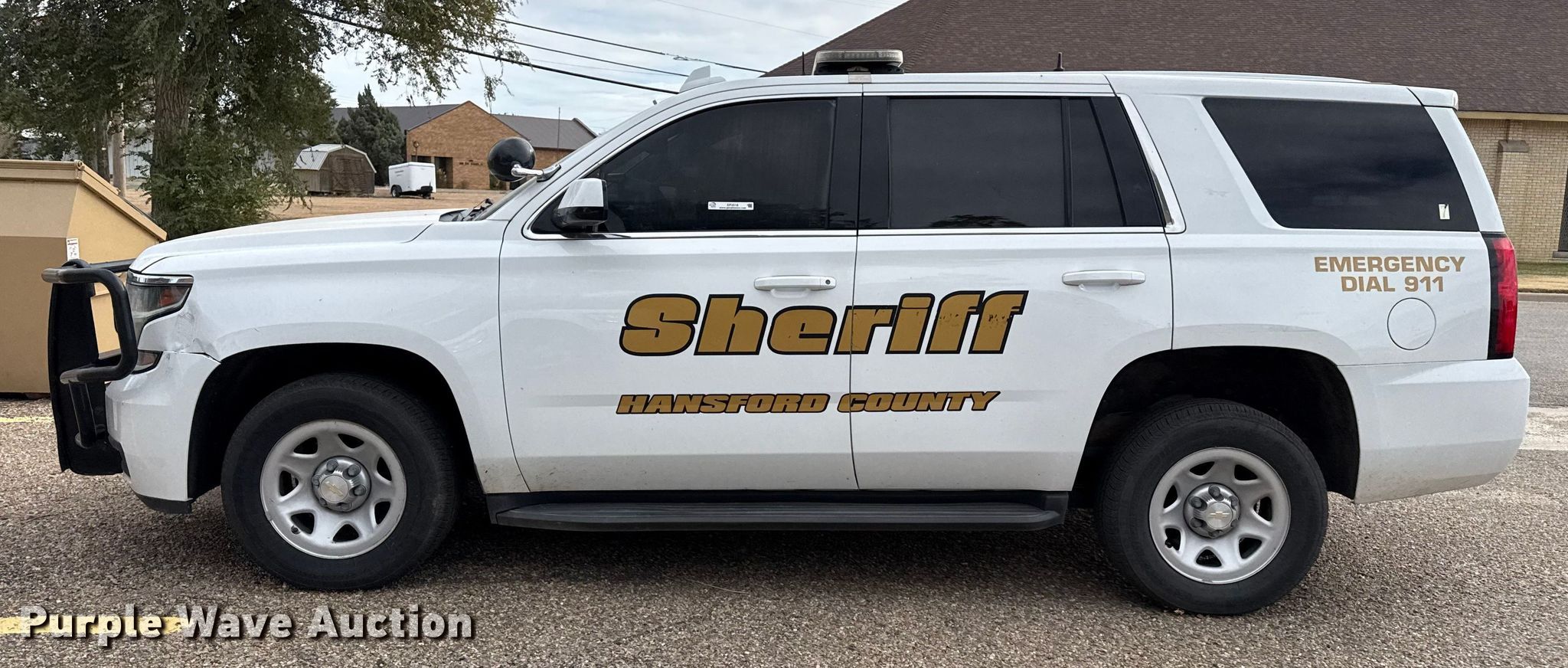 2020 Chevrolet Tahoe SSV SUV. Miles: 129,086 on odometer, VIN: 1GNSKFEC1LR220487. Engine Displacement: 5.3L, Cylinders: 8, Fuel type: Gas. Transmission Automatic, Four wheel drive. Interior AC, Heat, Seat: Power driver, Power passenger, Power windows, Power locks, Cruise control. Tires Size: 265/60R17. Notes Law enforcement and emergency equipment will be removed if not purchased by a law enforcement agency. Texas title. Title distribution may be delayed up to 14 days from verification of funds. Hansford County Sheriff. Spearman, TX 79081