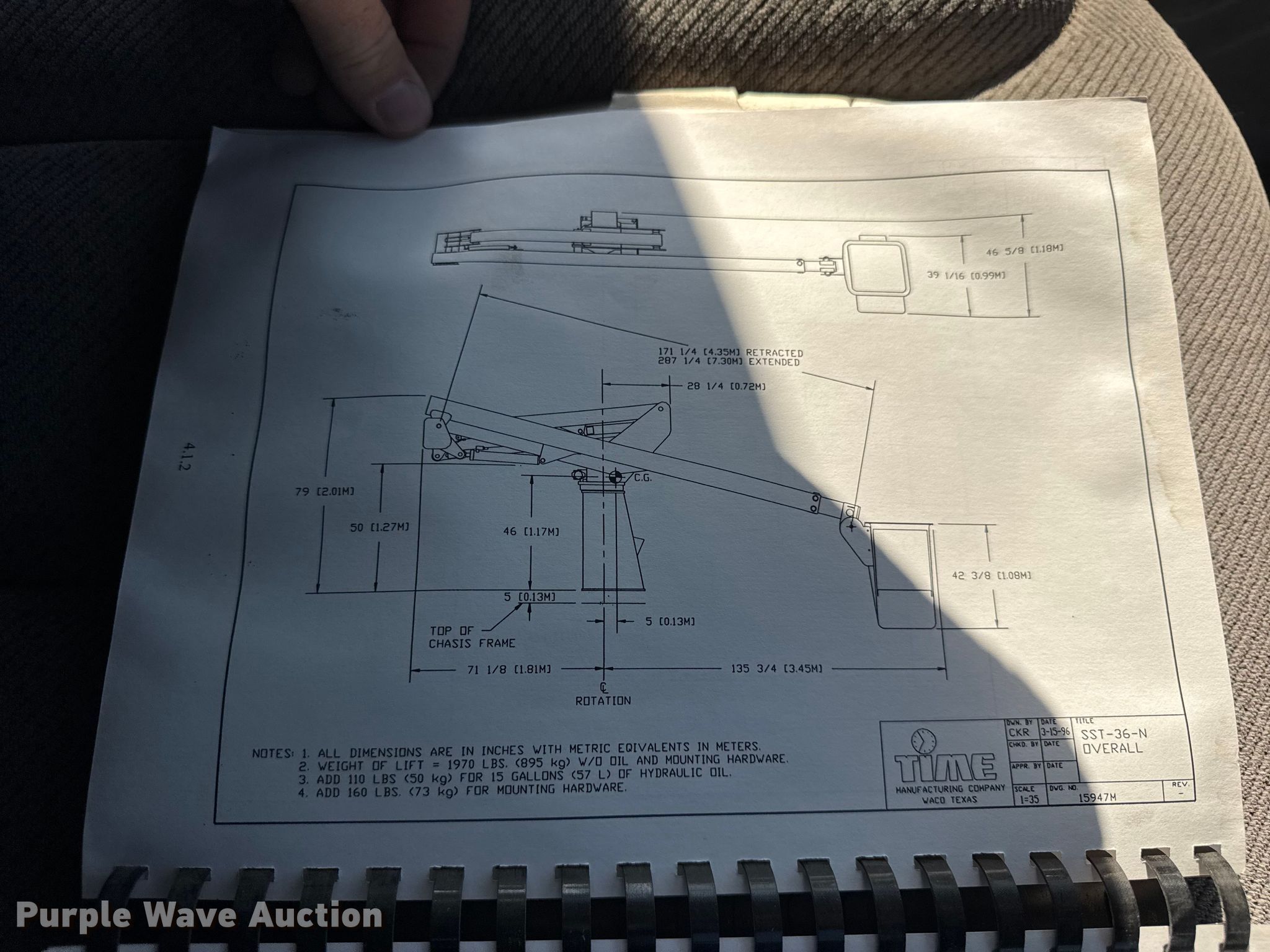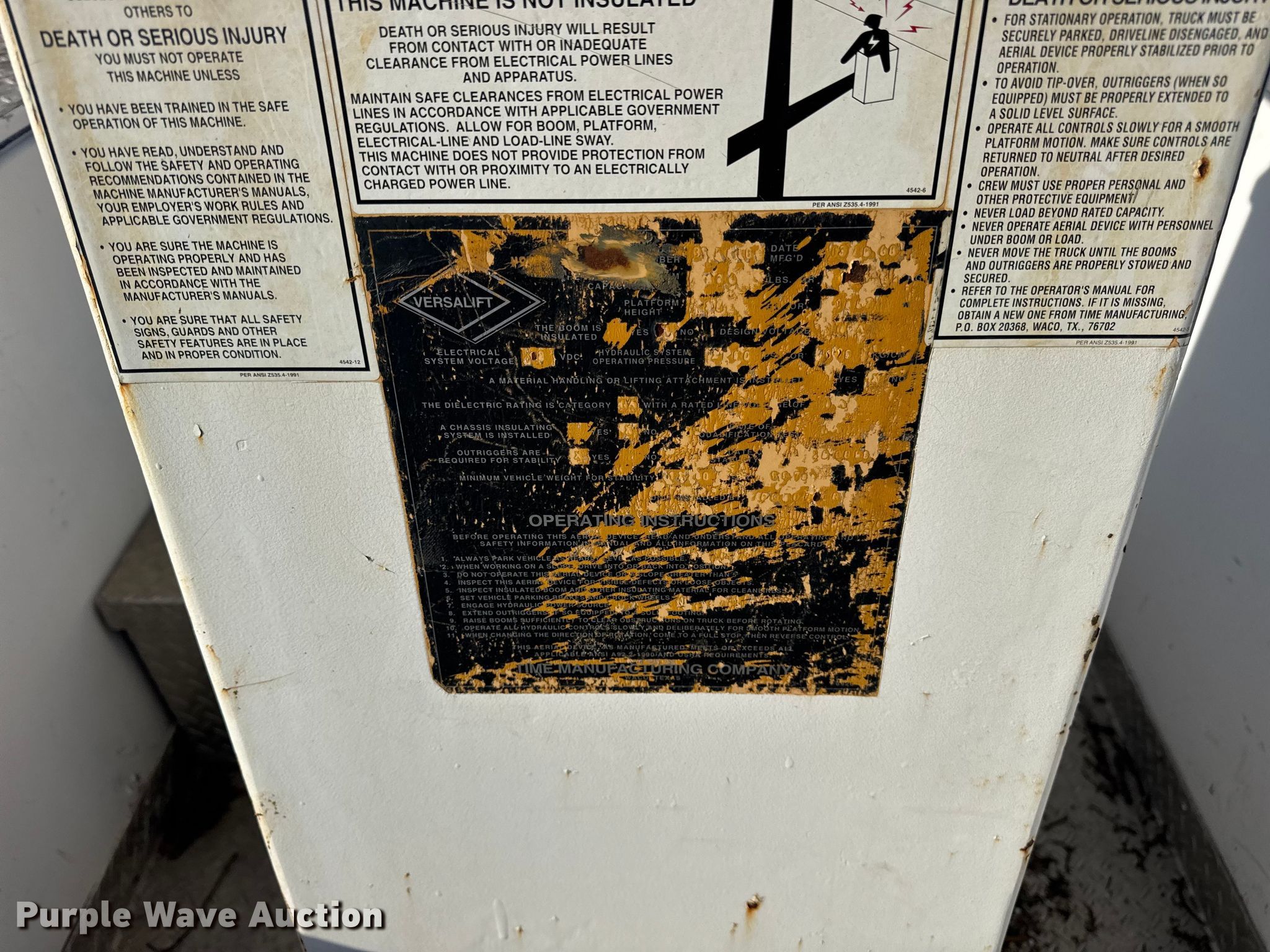 1998 GMC Sierra C3500 bucket truck. Miles: 66,960 on odometer, VIN: 1GDKC34F7WF063601, Unit #: 13. Engine Displacement: 6.5L, Cylinders: 8, Fuel type: Diesel. Transmission Automatic. Chassis Axles: Single, Suspension: Spring, Brakes: Hydraulic, PTO. Interior AC, Heat, Cruise control. Features Bed Utility bed, Poudrier 4406-00-000, Serial: MU980998384057, Length: 11', Width: 90", Boom Versalift SST-36-ENH, Serial: BY9836, Boom type: Articulating, Telescopic, Man basket, Boom controls Ground, Platform/ basket, Certification valid through: 02/23. Tires Size: 225/70R19.5. Notes Jump start required during on-site data collection. Illinois title. Seller is a government entity who will be assigning and distributing the title. Please contact the seller for distribution questions. City of Lincoln, IL. Lincoln, IL 62656