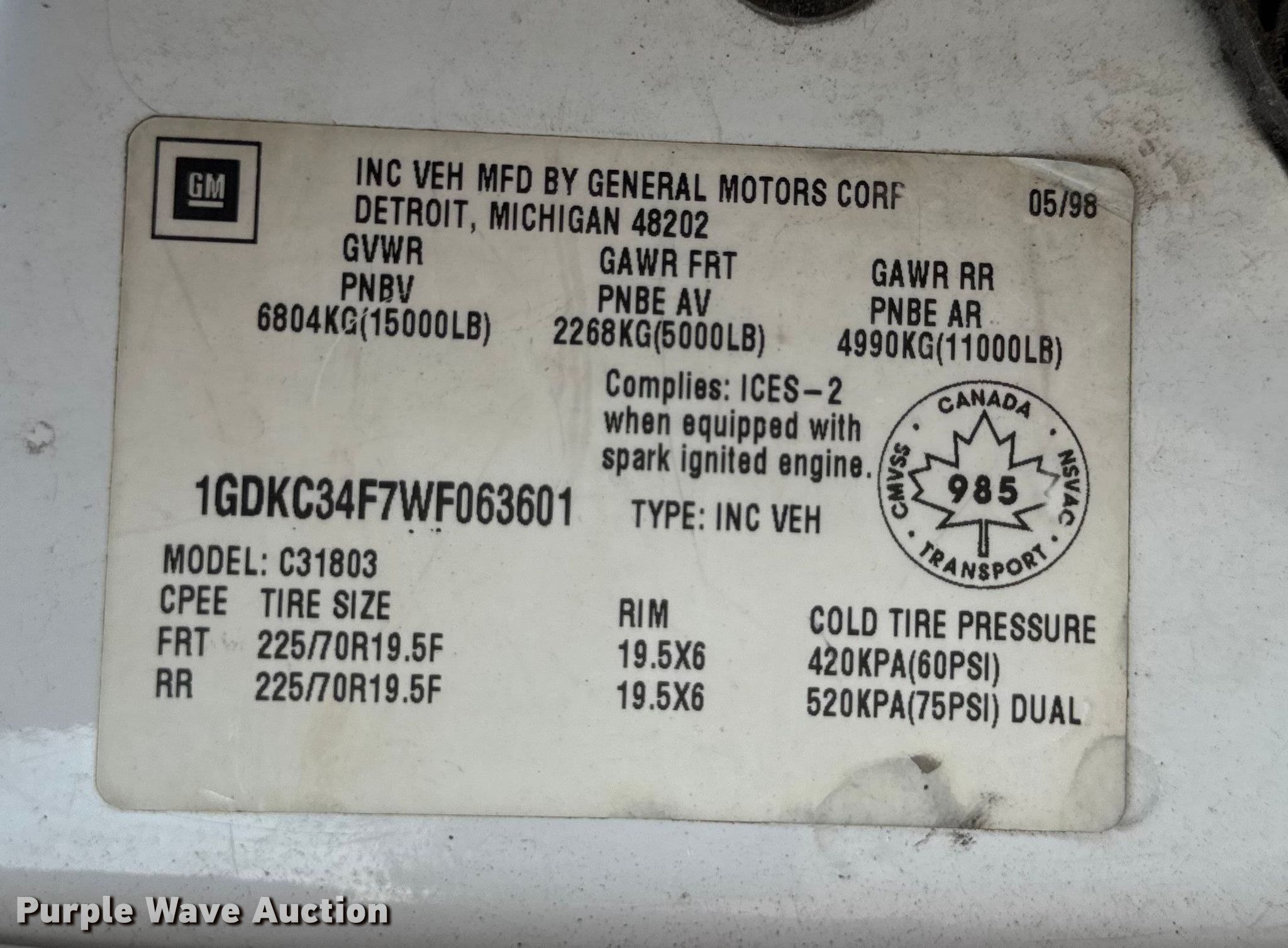 Purple Wave is selling a used Bucket Truck in Illinois. This item is a 1998 GMC Sierra C3500 bucket truck with the following: Miles: 66,960 on odometer, VIN: 1GDKC34F7WF063601, Unit #: 13