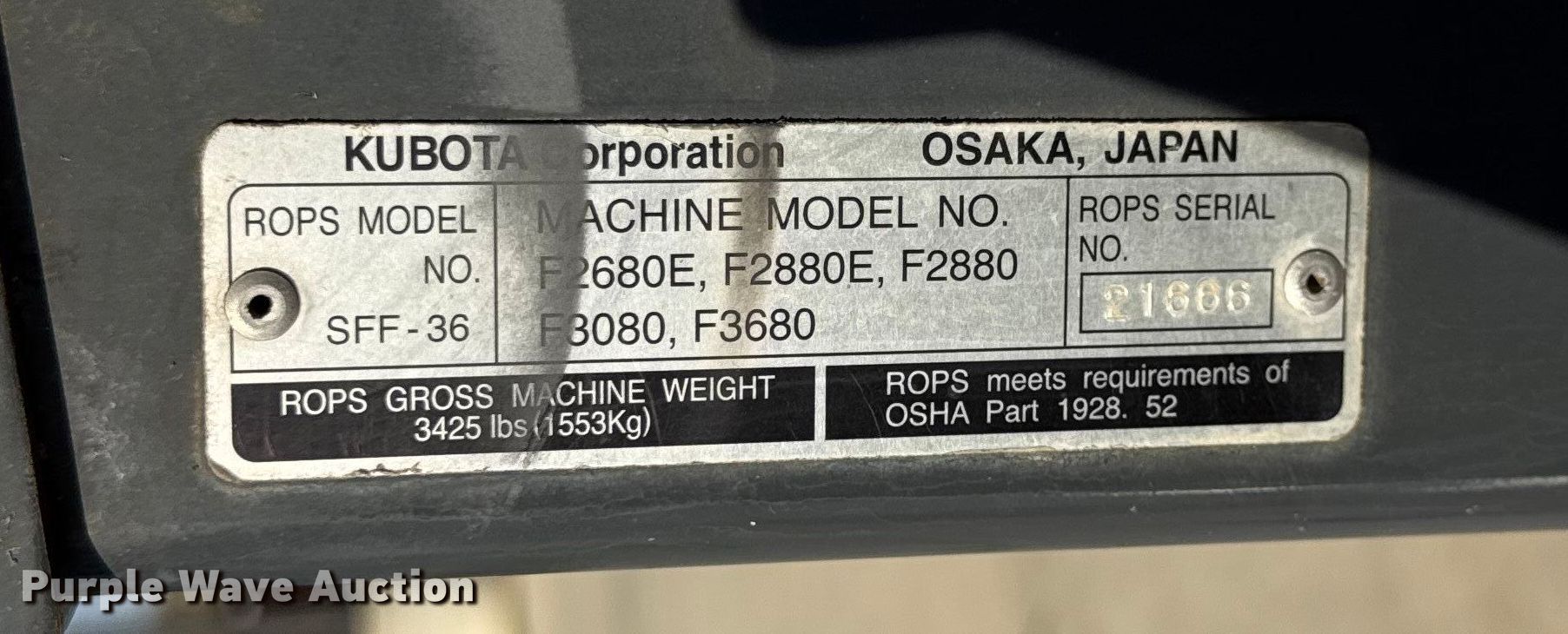 Purple Wave is selling a used Commercial Turf Mower in Illinois. This item is a Kubota F3080 lawn mower with the following: Hours: 1,659 on meter, Cutting width: 60", Serial: 10905