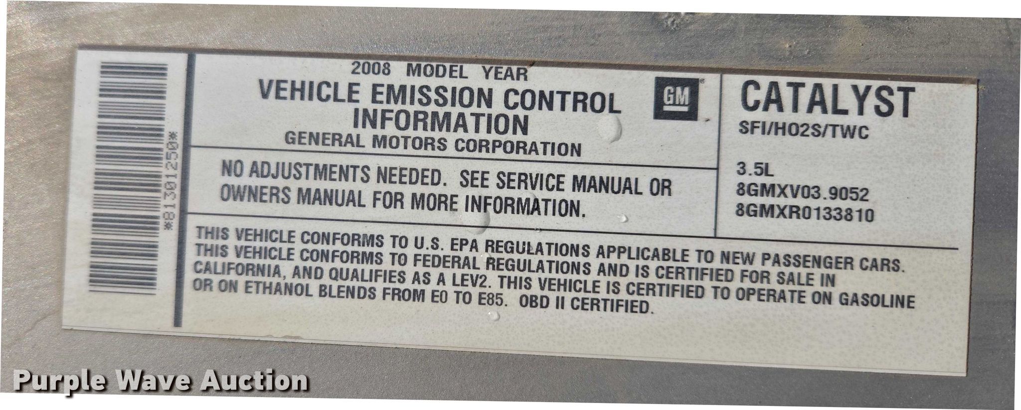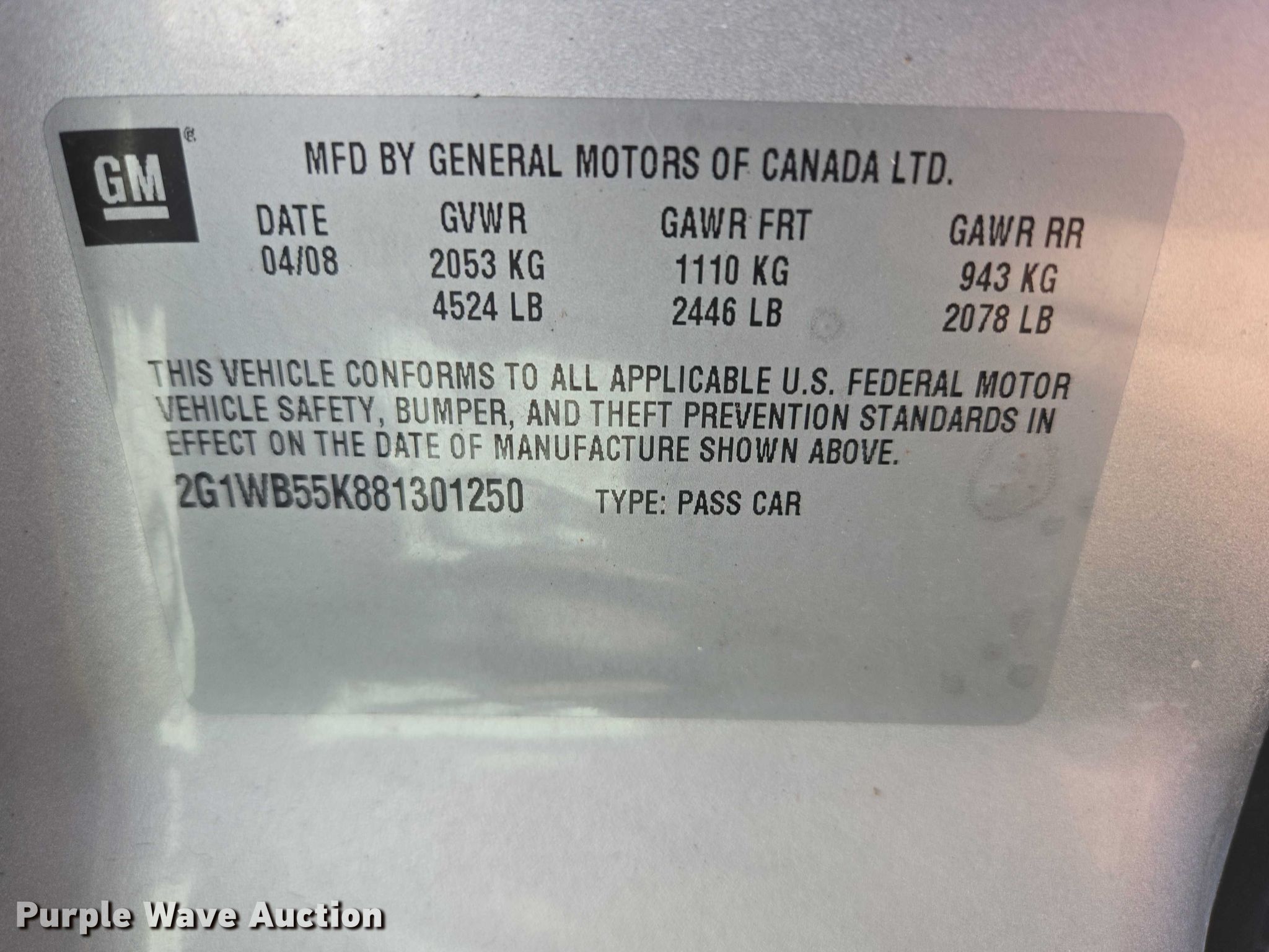 Purple Wave is selling a used Passenger Vehicle in South Dakota. This item is a 2008 Chevrolet Impala with the following: Miles: 203,622 on odometer, VIN: 2G1WB55K881301250, Unit #: DCI02