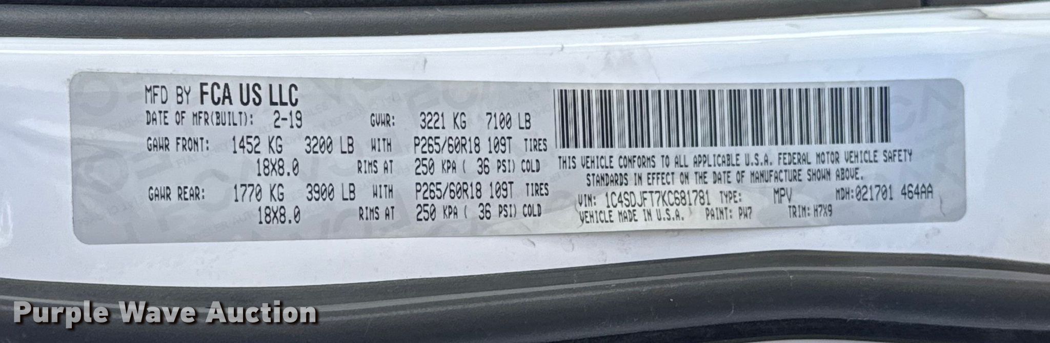 Purple Wave is selling a used Passenger Vehicle in Oklahoma. This item is a 2019 Dodge Durango SSV SUV with the following: Miles: 80,940 on odometer, VIN: 1C4SDJFT7KC681781
