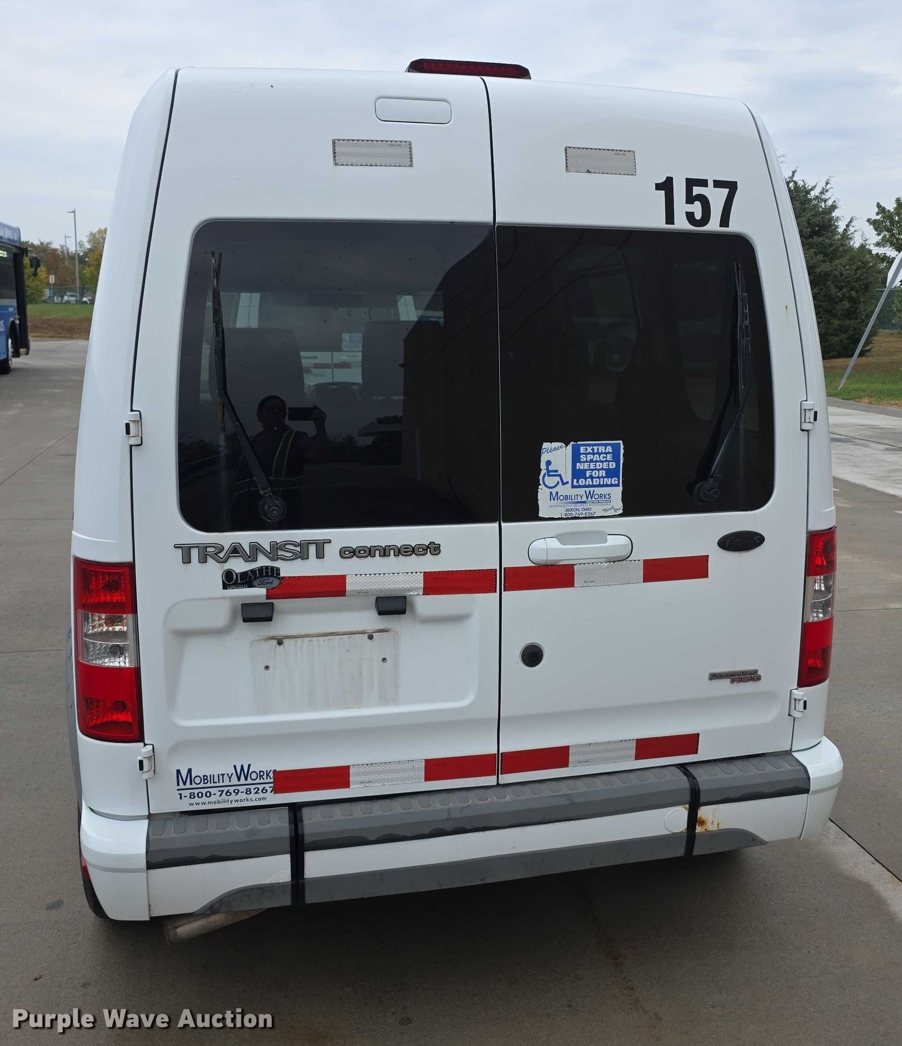 2012 Ford Transit Connect XLT handicap accessible van. Miles: 149,742 on odometer, VIN: NM0KS9CN9CT096144, Unit #: 147. Engine Displacement: 2.0L, Fuel type: Gas. Transmission Automatic. Interior AC, Heat, Heated mirrors, Power windows, Power locks, Cruise control. Tires Size: 205/65R15. Notes Dash warning indicator: Check engine. Kansas title. Title distribution may be delayed up to 14 days from verification of funds. Johnson County Transit. Olathe, KS 66061