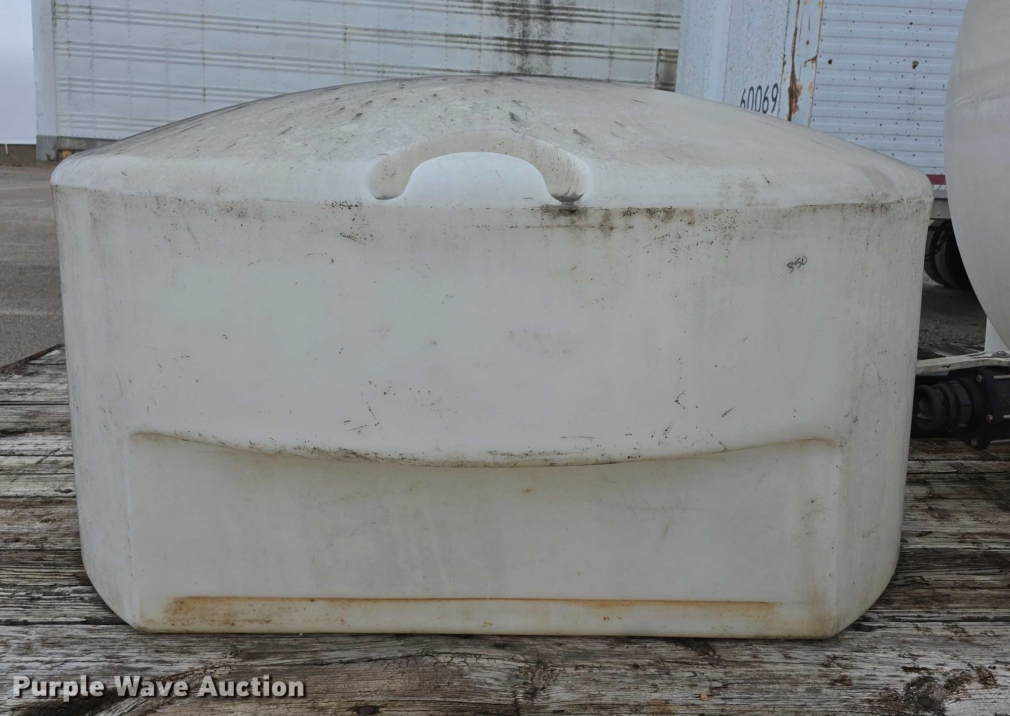 Purple Wave is selling a used Tanks in Kansas. This item is a (2) poly tanks with the following: Capacity: 350 gallons, Capacity: 1,000 gallons, Previously held liquid chloride, Trailer not included
