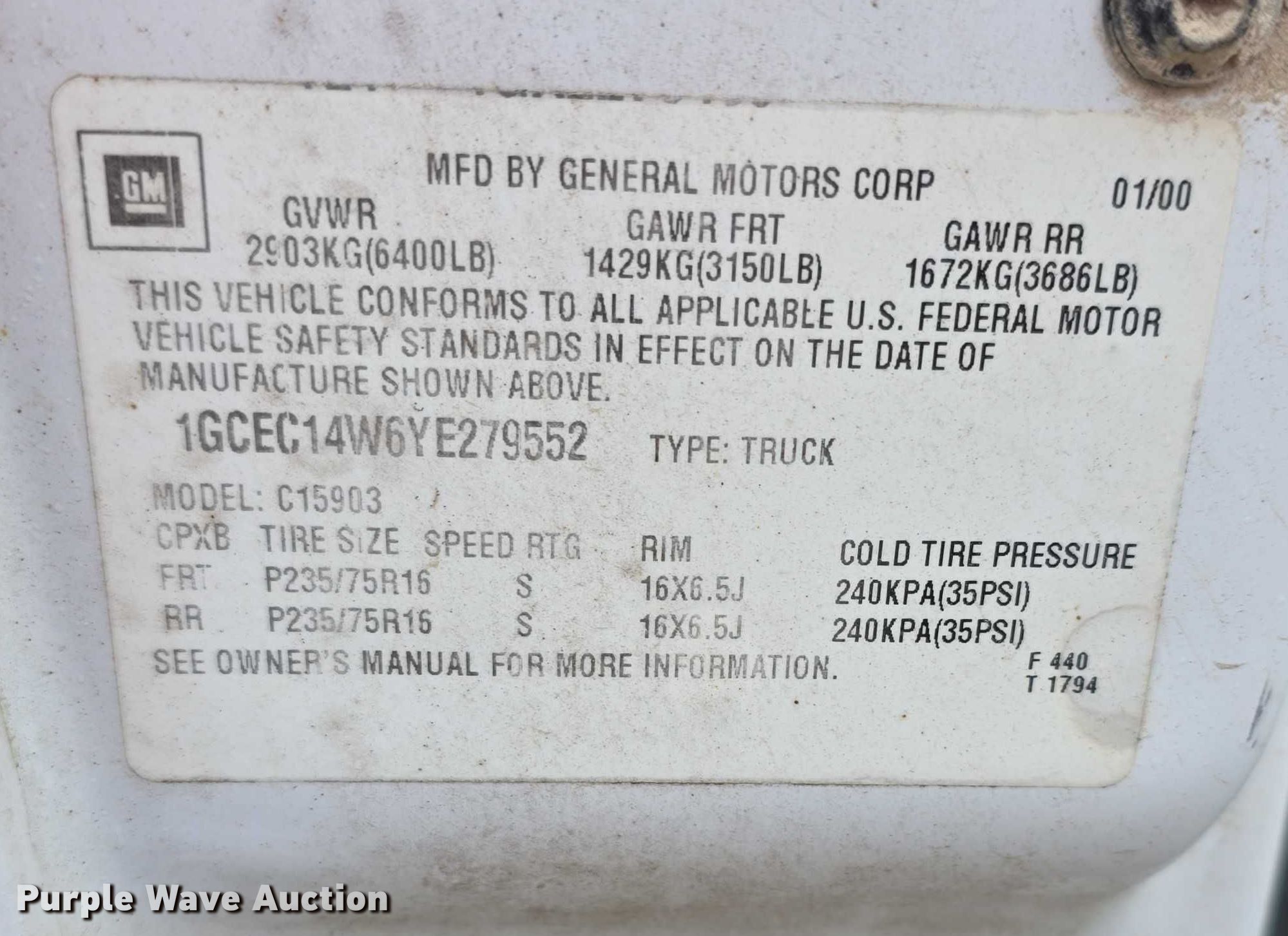 Purple Wave is selling a used 1/2 Ton Pickup or Van in Kansas. This item is a 2000 Chevrolet Silverado 1500 pickup truck with the following: Miles: 189,229 on odometer, VIN: 1GCEC14W6YE279552, Unit #: 114