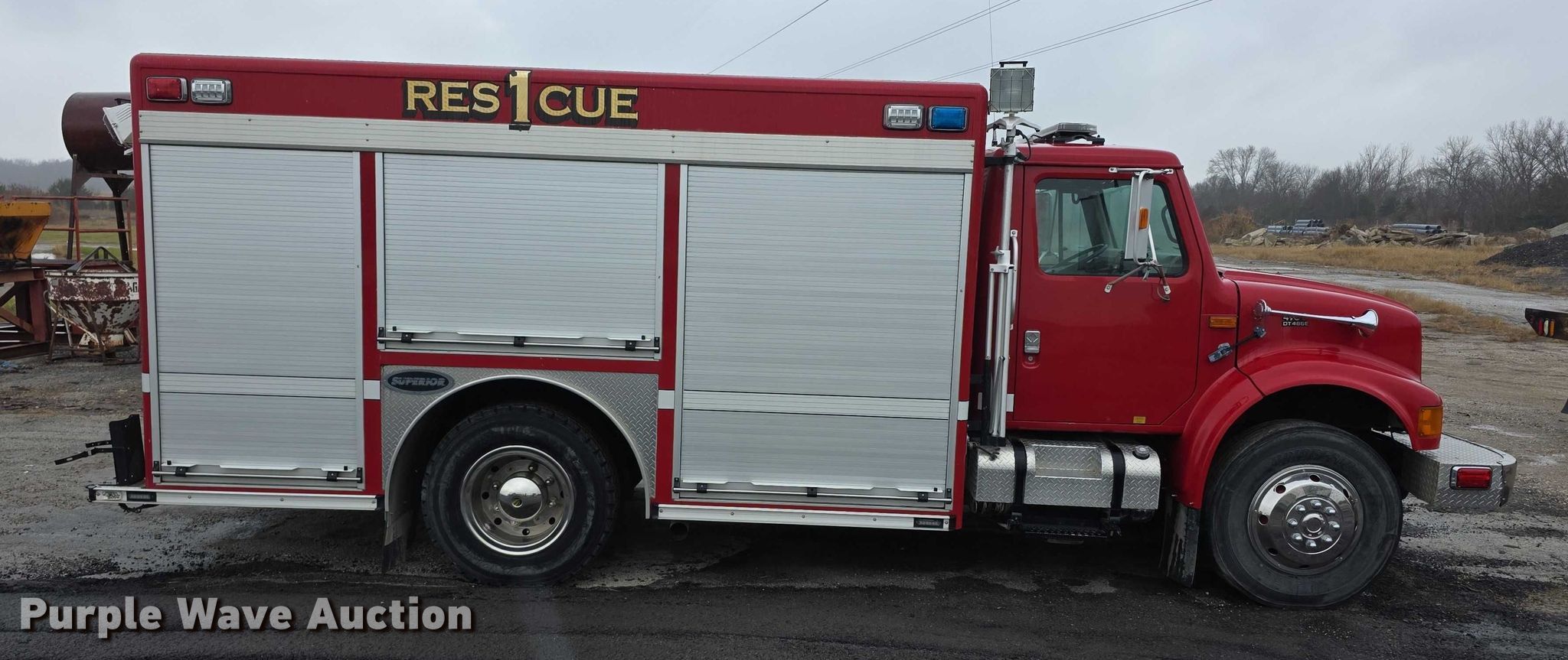 Purple Wave is selling a used Fire Truck or Emergency Vehicle in Kansas. This item is a 1999 IH Superior 4900 rescue vehicle with the following: Miles: 12,173 on odometer, Actual mileage unknown, Hours: 6,481 on meter, VIN: 1HTSDAAR9XH634874