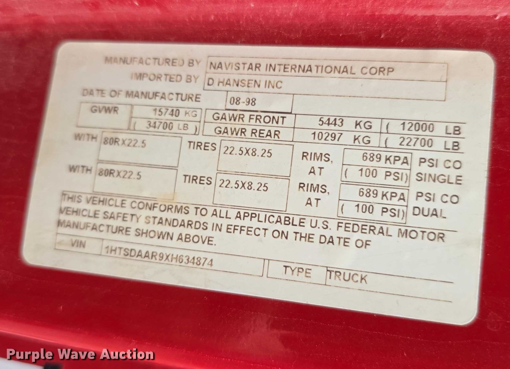 - VIN: 1HTSDAAR9XH634874