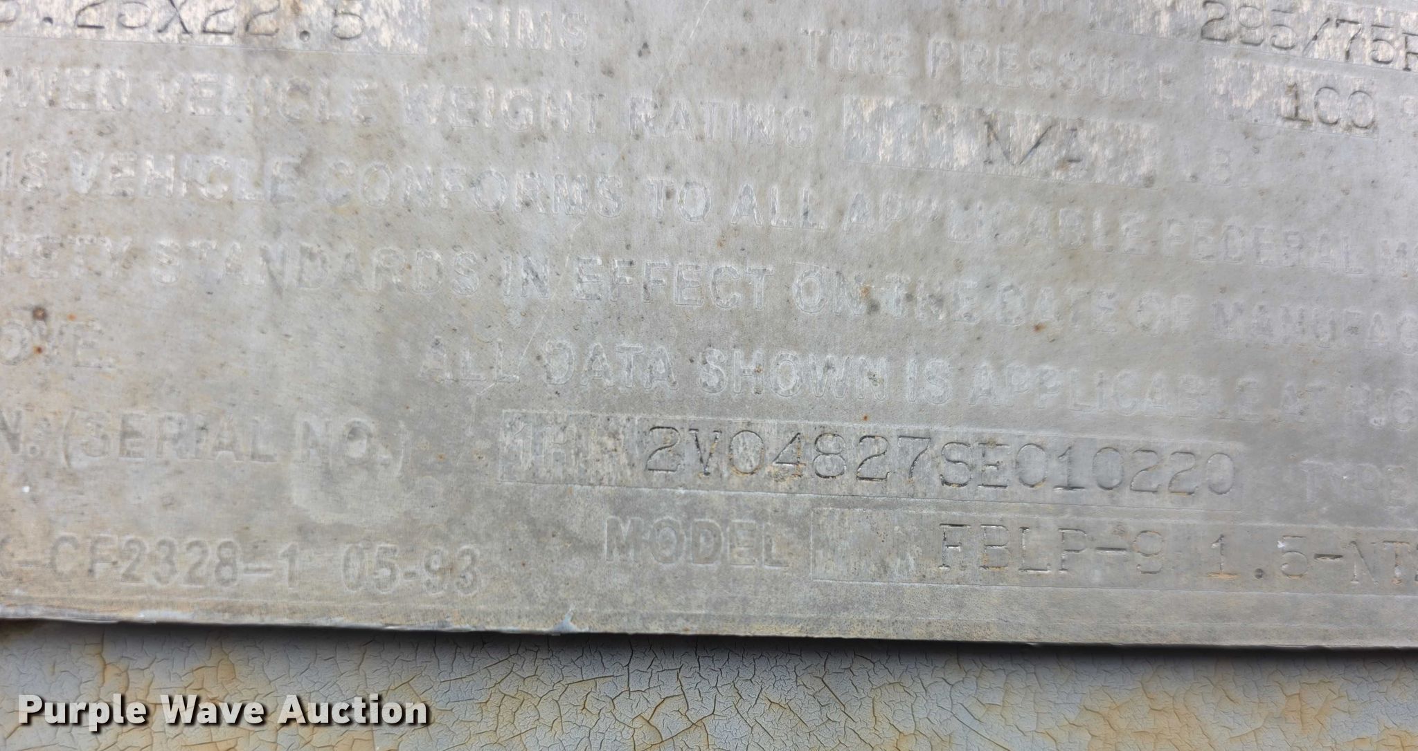 1995 Fruehauf FBLF91.5NT248 dry van trailer. VIN: 1H2V04827SE010220, Unit #: 71392. Dimensions Overall Length: 48' 6", Width: 8'. Features Deck type: Wood. Chassis Landing gear: Dual, Suspension: Air, Brakes: Air, Axles: Tandem, GVWR: 68,000 lbs, GAWR: 20,000 lbs. Tires Steel wheels, Size: 295/75R22.5, Size: 275/80R22.5. Notes Unit not DOT compliant, Tires damaged, weather cracking, Unit must be hauled , Unknown operating condition. Kansas title. Title distribution may be delayed up to 14 days from verification of funds. Paola, KS 66071