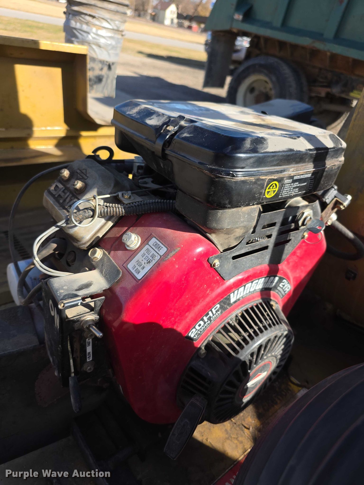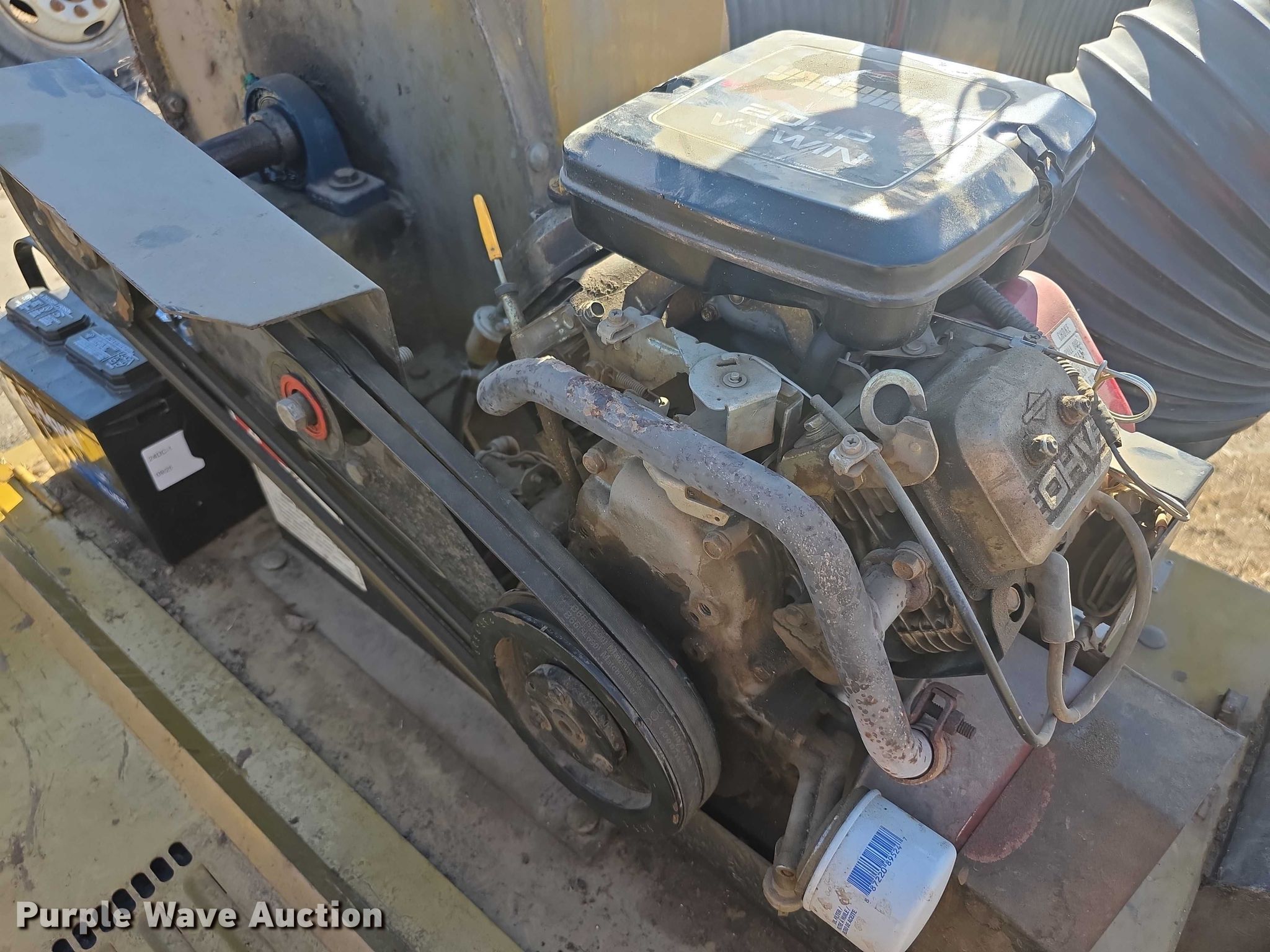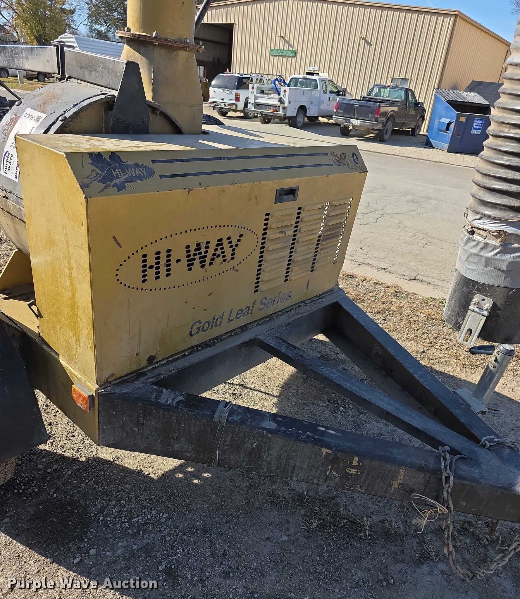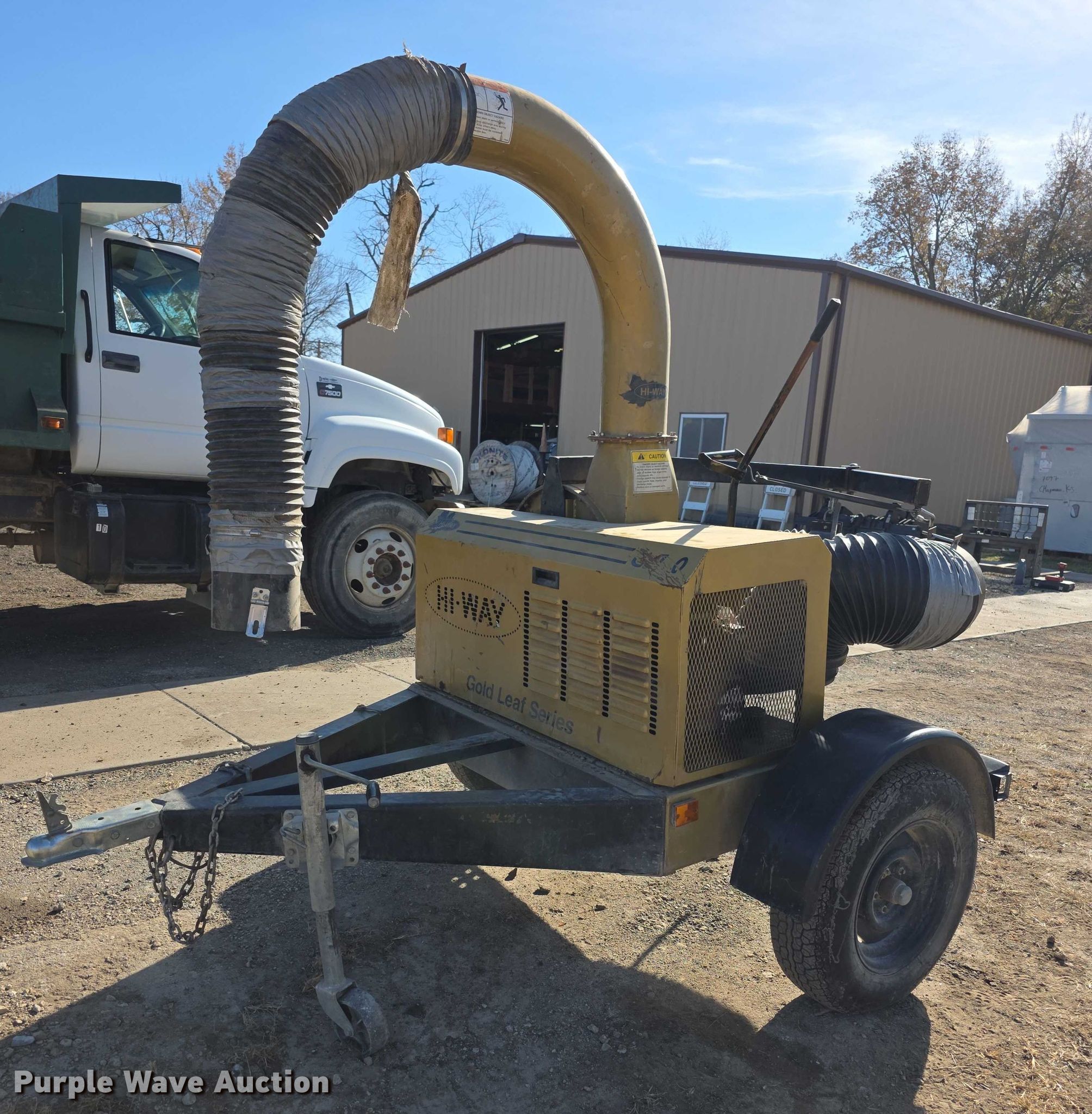 Hiway G750 leaf vacuum. Serial: 110849. Dimensions Overall Length: 10' 6", Width: 6' 6", Height: 7' 6". Engine Briggs & Stratton Vanguard, Fuel type: Gas, HP: 20. Features Ball hitch: 2". Tires Rear: 205/75R15. Notes Battery missing. This is worksite support equipment and will not come with a title. Transfer of ownership documentation will be a bill of sale. City of Chapman. Chapman, KS 67431