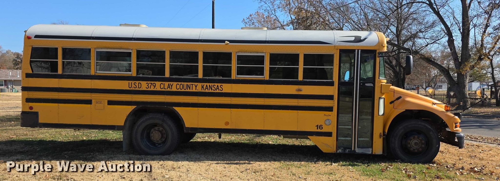 Purple Wave is selling a used Bus in Kansas. This item is a 2004 Bluebird school bus with the following: Miles: 228,838 on odometer, Hours: 10,355 on meter, VIN: 1BAKBC0H14F217242, Unit #: 16