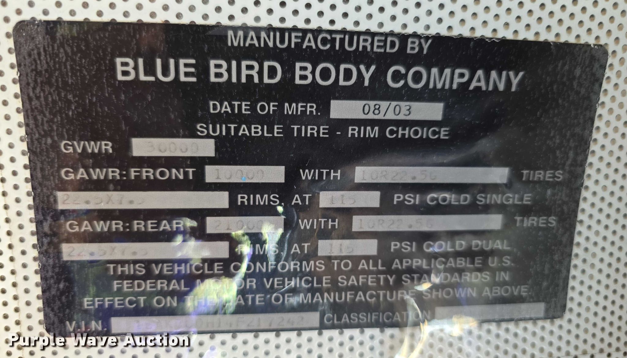 Take a look at this used 2004 Bluebird school bus being sold on December 16th, 2025 in the Tuesday December 16 Government Auction made by Bluebird. Take a look at all of the item information below or take a look at similar auctions for Transit Vehicles.