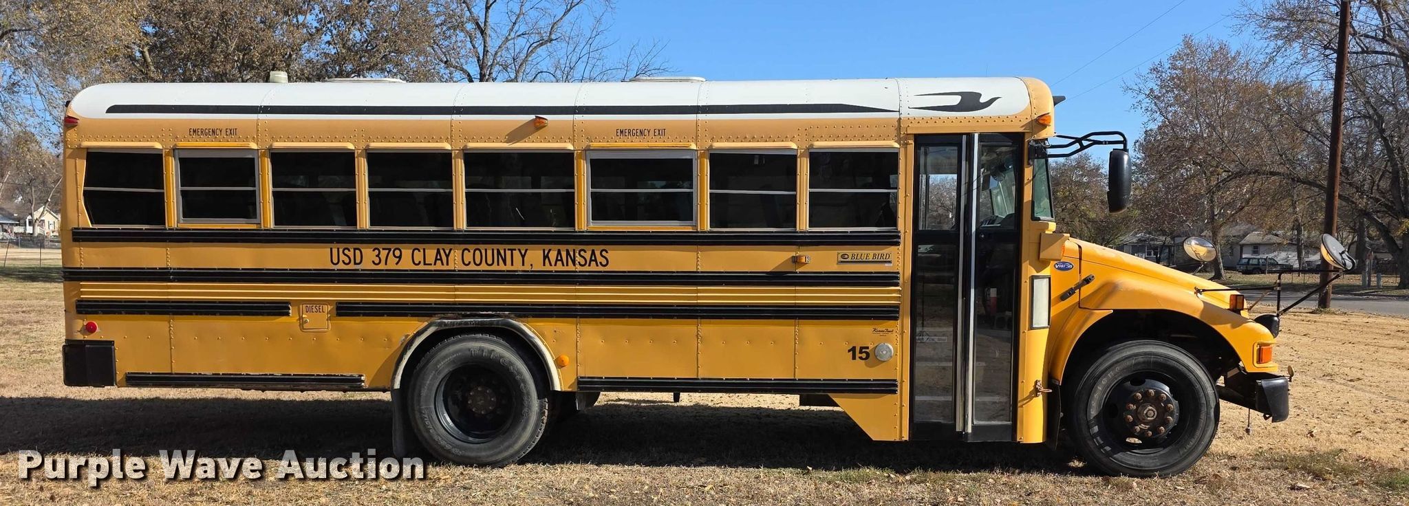 Purple Wave is selling a used Bus in Kansas. This item is a 2007 Bluebird school bus with the following: Miles: 201,702 on odometer, Hours: 8,564 on meter, VIN: 1BAKBCKH67F244597, Unit #: 15
