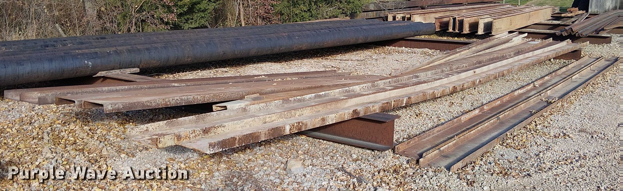 Purple Wave is selling a used Building Materials in Missouri. This item is a (12) pieces of channel iron with the following: (4) 19' L x 12" W pieces, (2) 36' L x 15" W pieces, (2) 29' L x 12" W pieces, (4) Various sized pieces