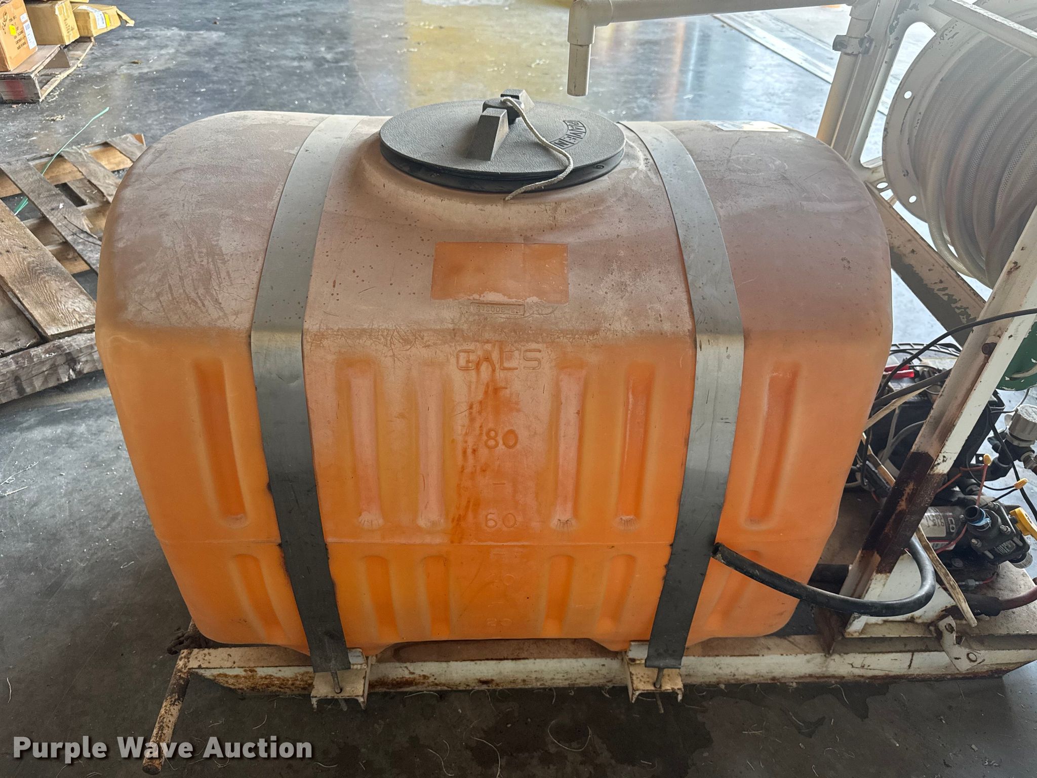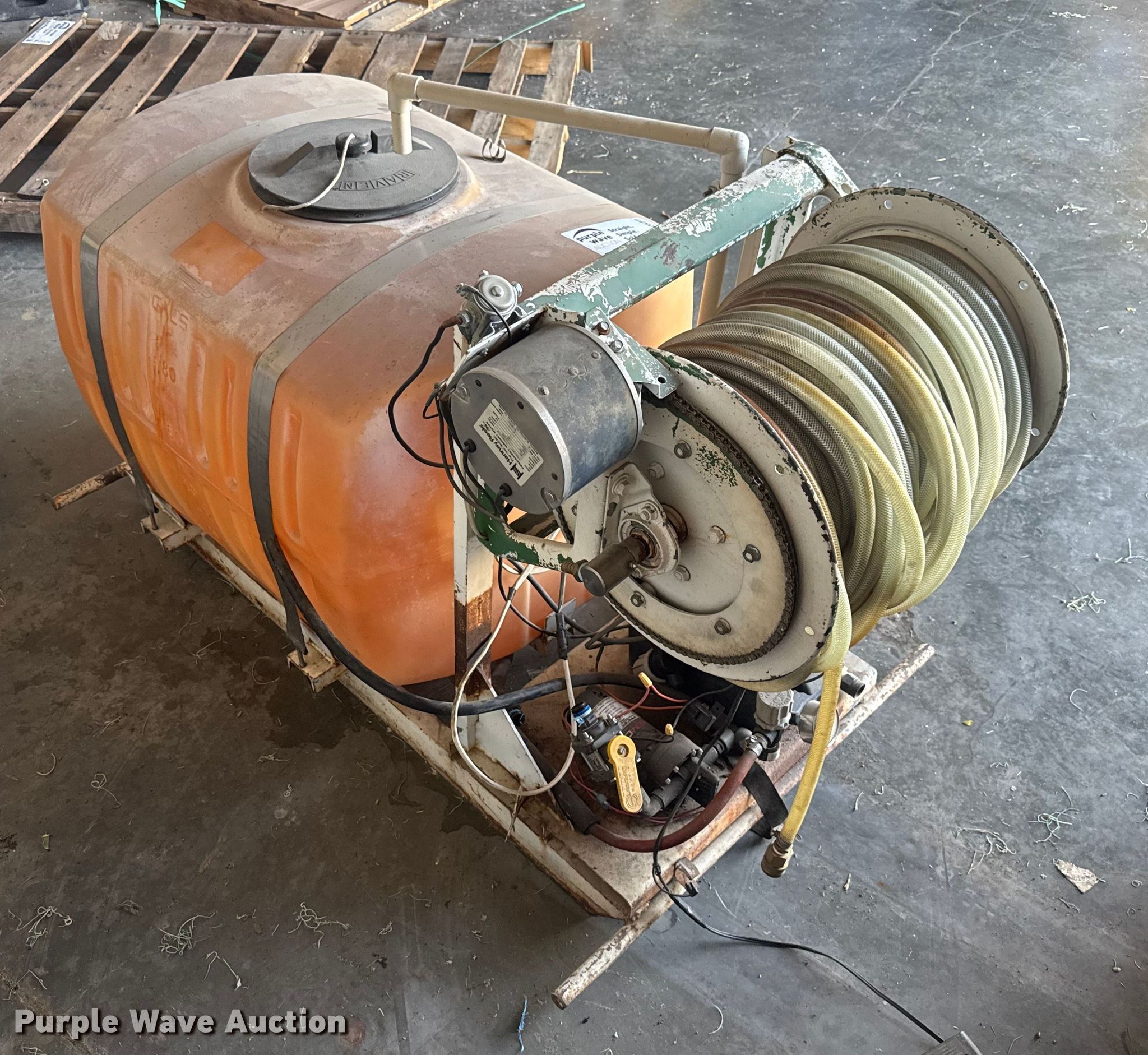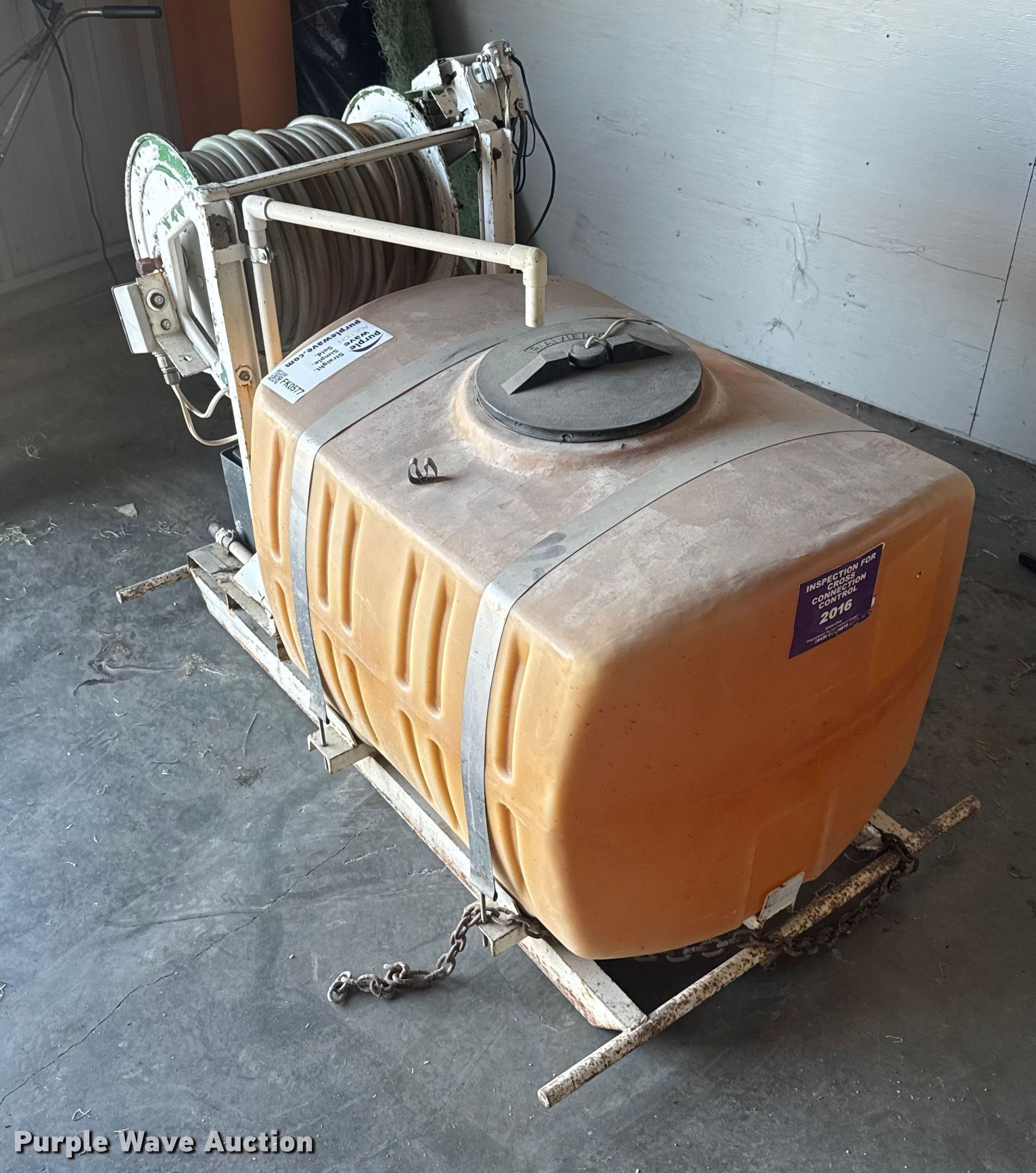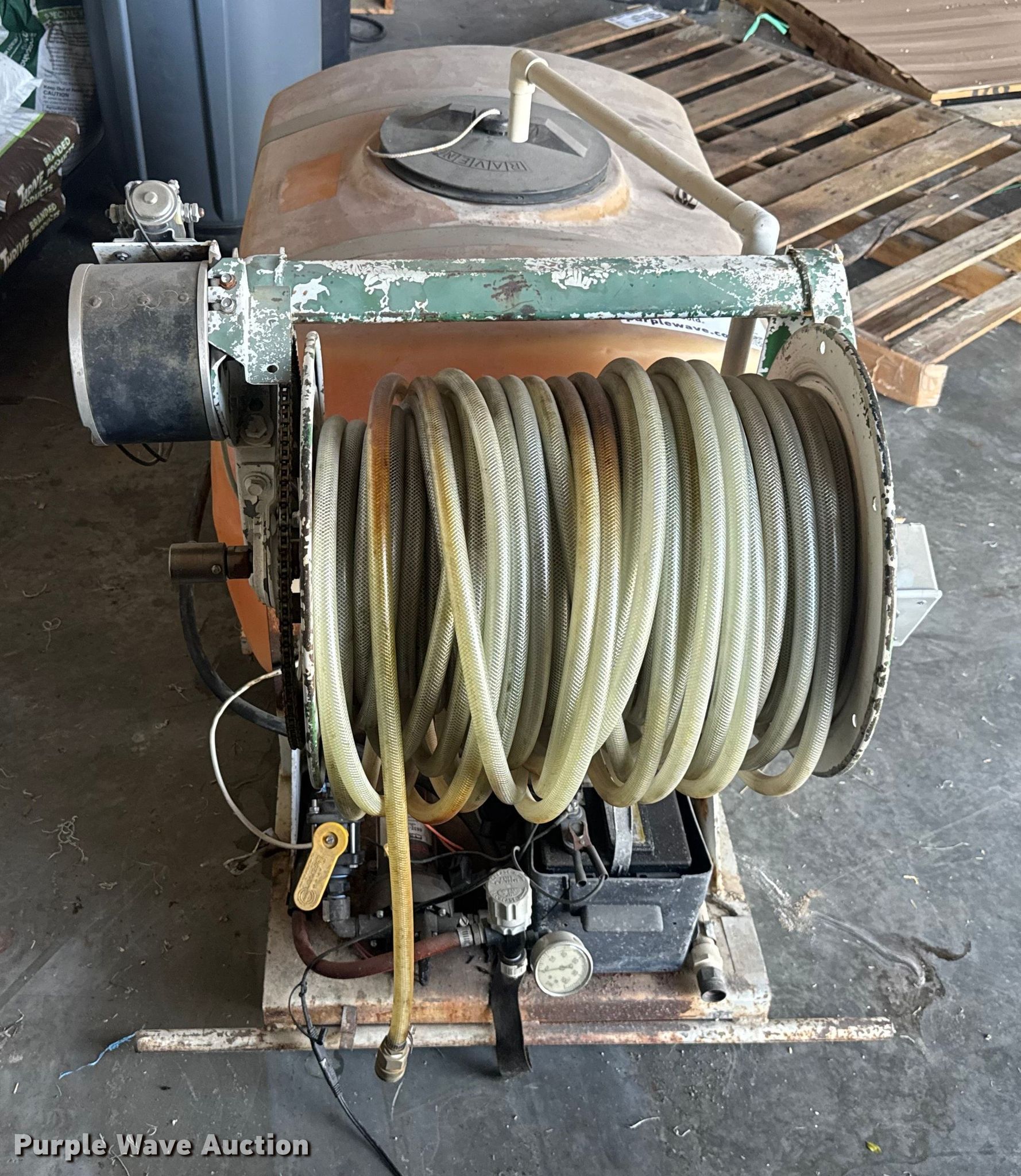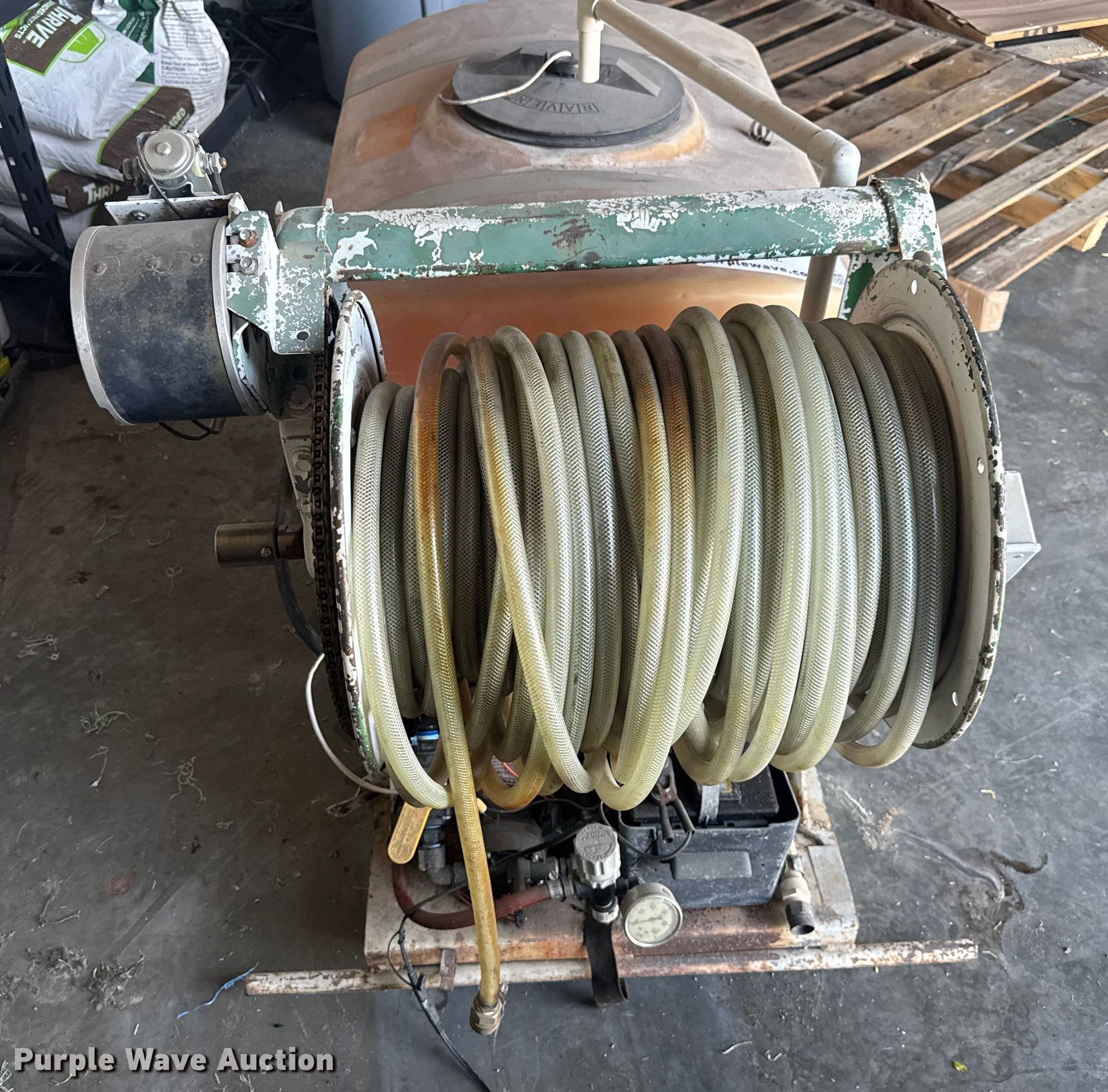 Purple Wave is selling a used Lawn and Garden in Kansas. This item is a Westheffer spray tank with the following: Serial: 941096, Capacity: 100 gallon, Hannay P56AN227 reel, RemCo Proflo pump