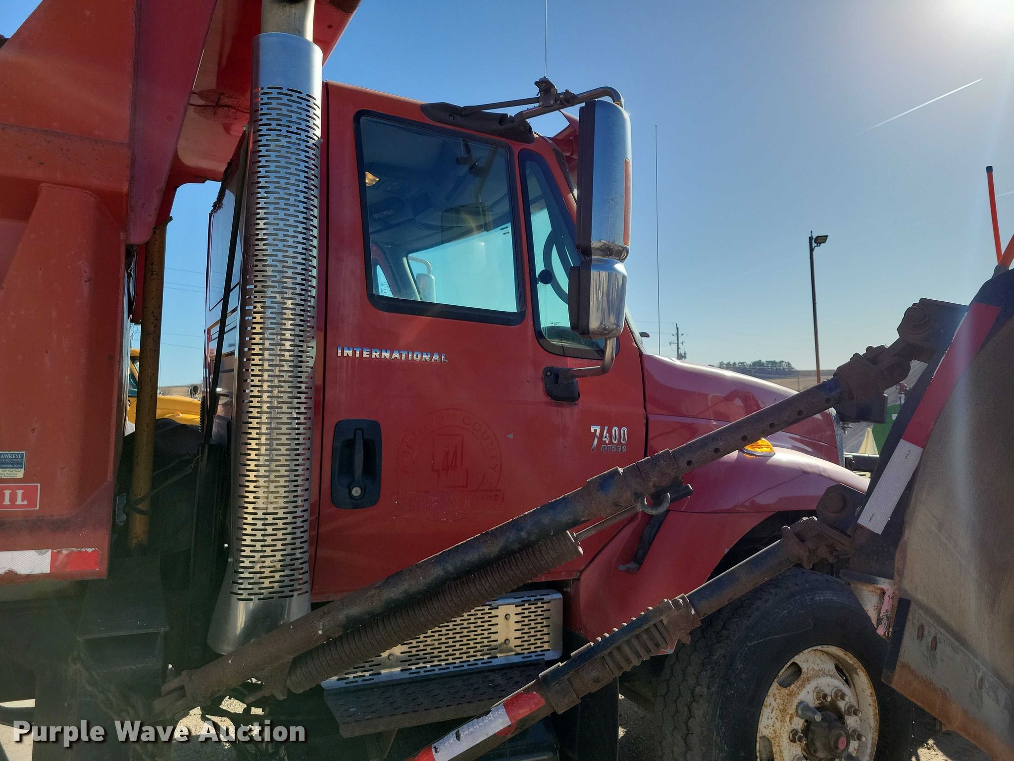 Purple Wave is selling a used Construction Dump Truck in Iowa. This item is a 2003 International 7400 dump truck with the following: Miles: 153,477 on odometer, Hours: 7,235 on meter, VIN: 1HTWHADT43J060801