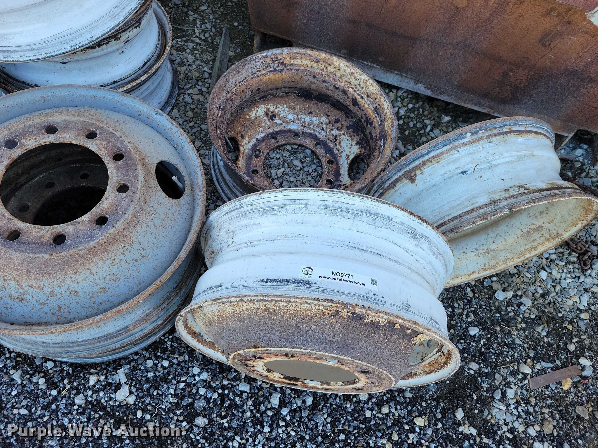 (9) semi truck wheels for sale in Audubon, Iowa. Item NO9771 will sell on December 16th, 2025.