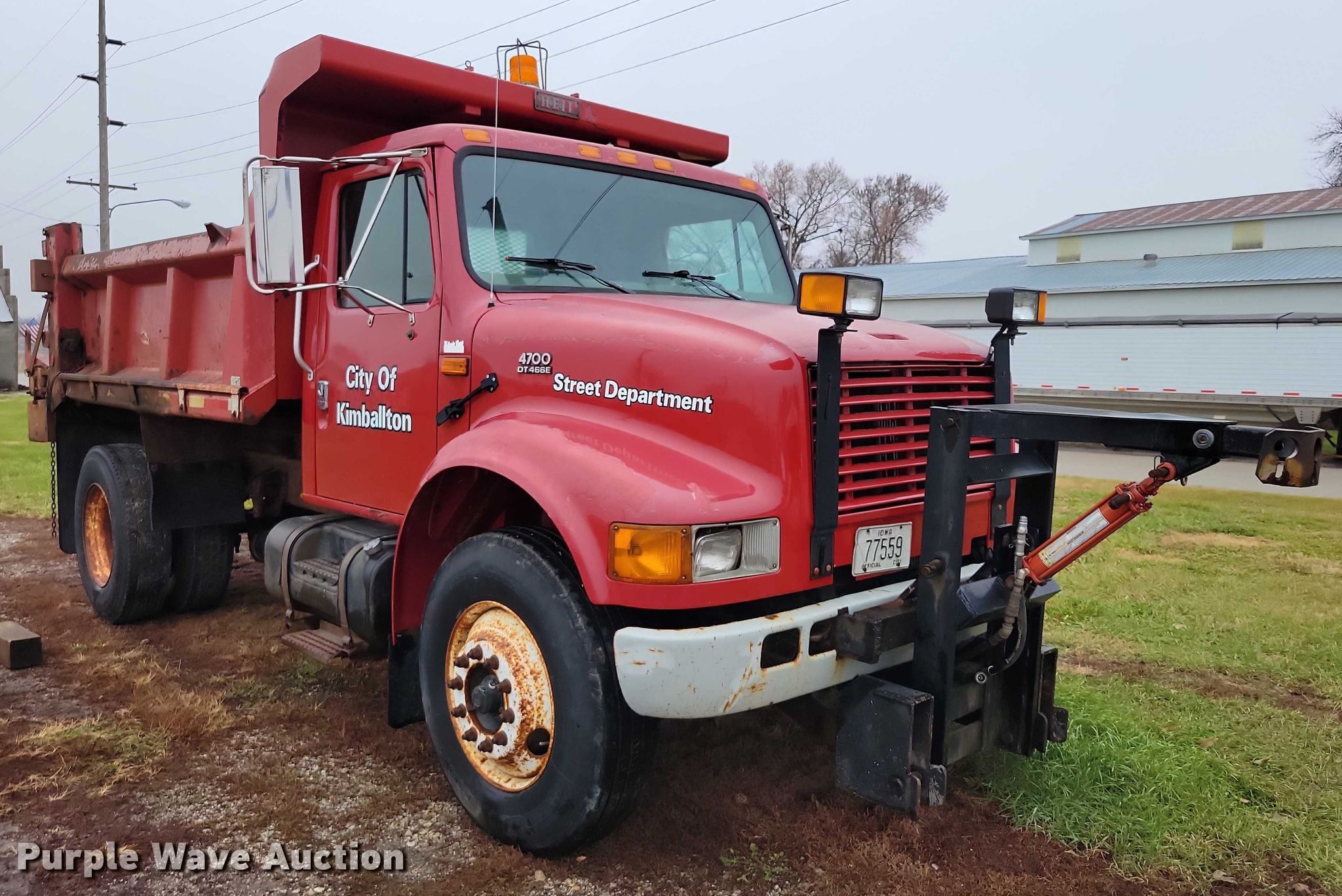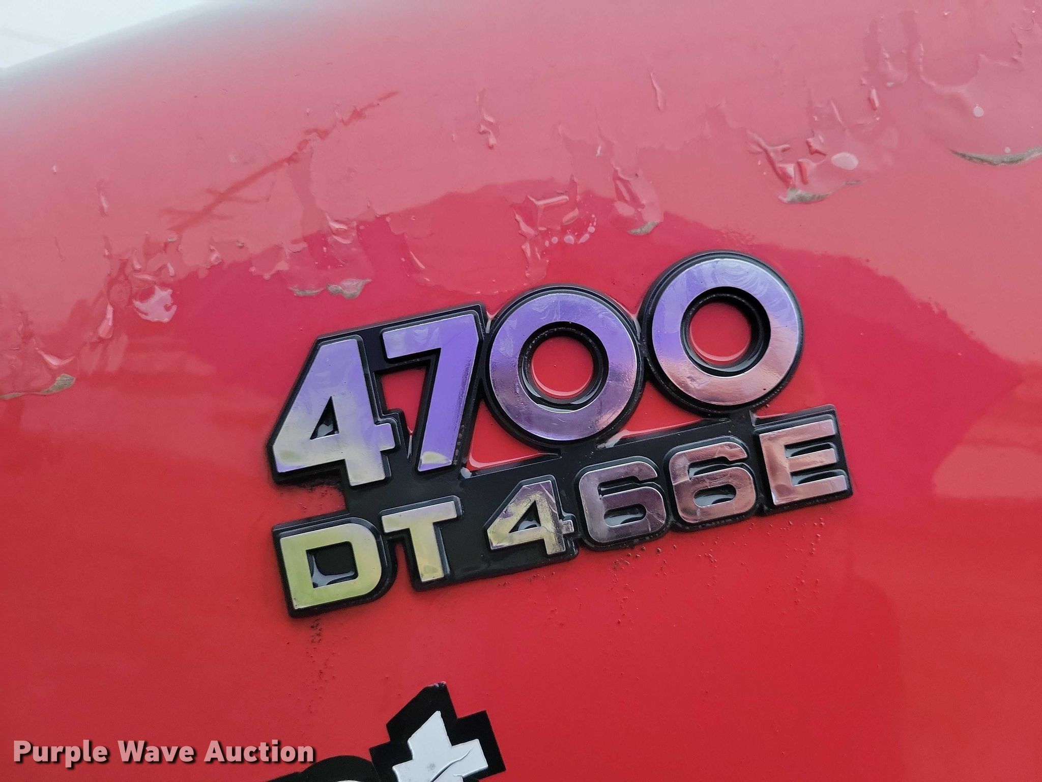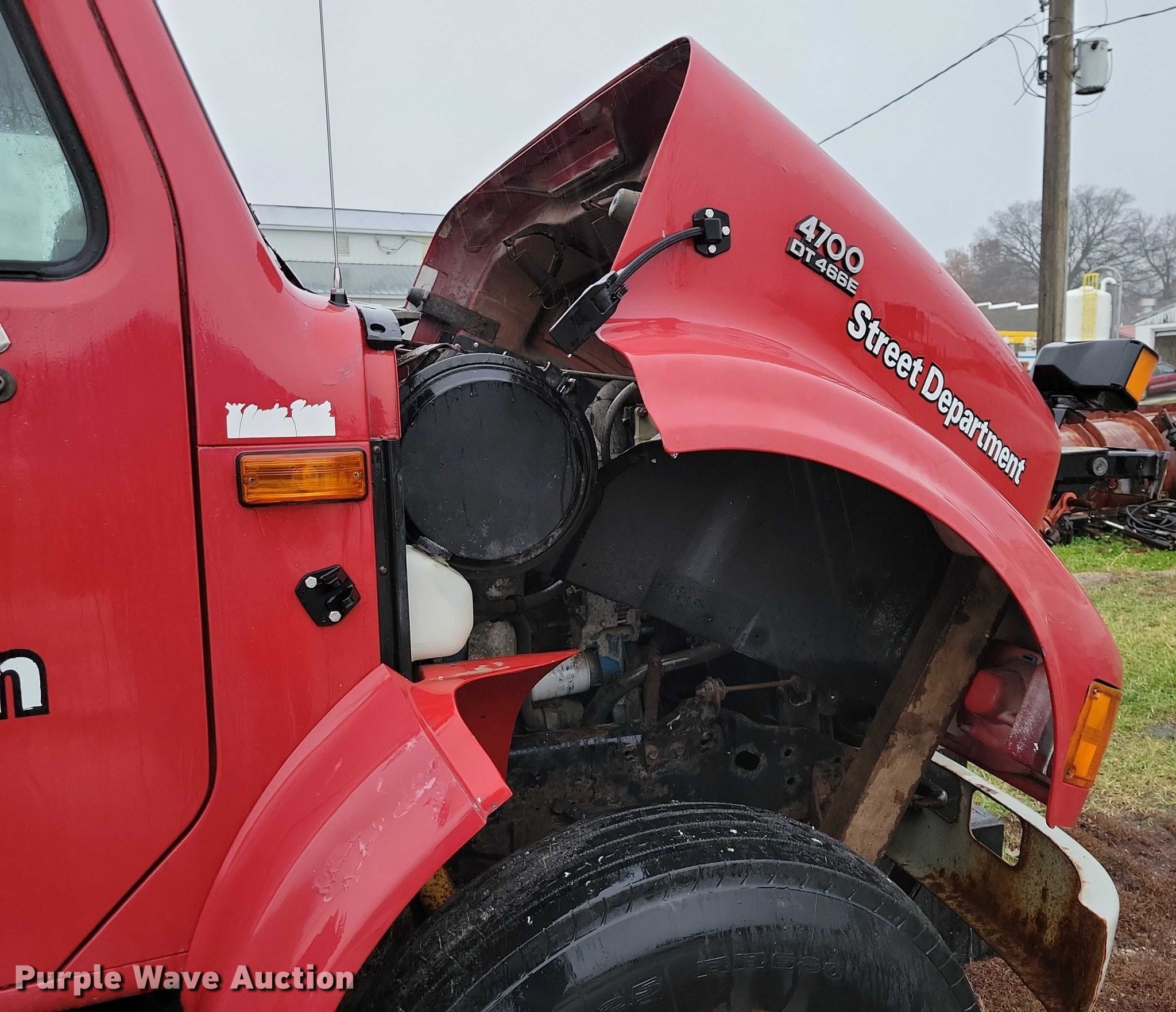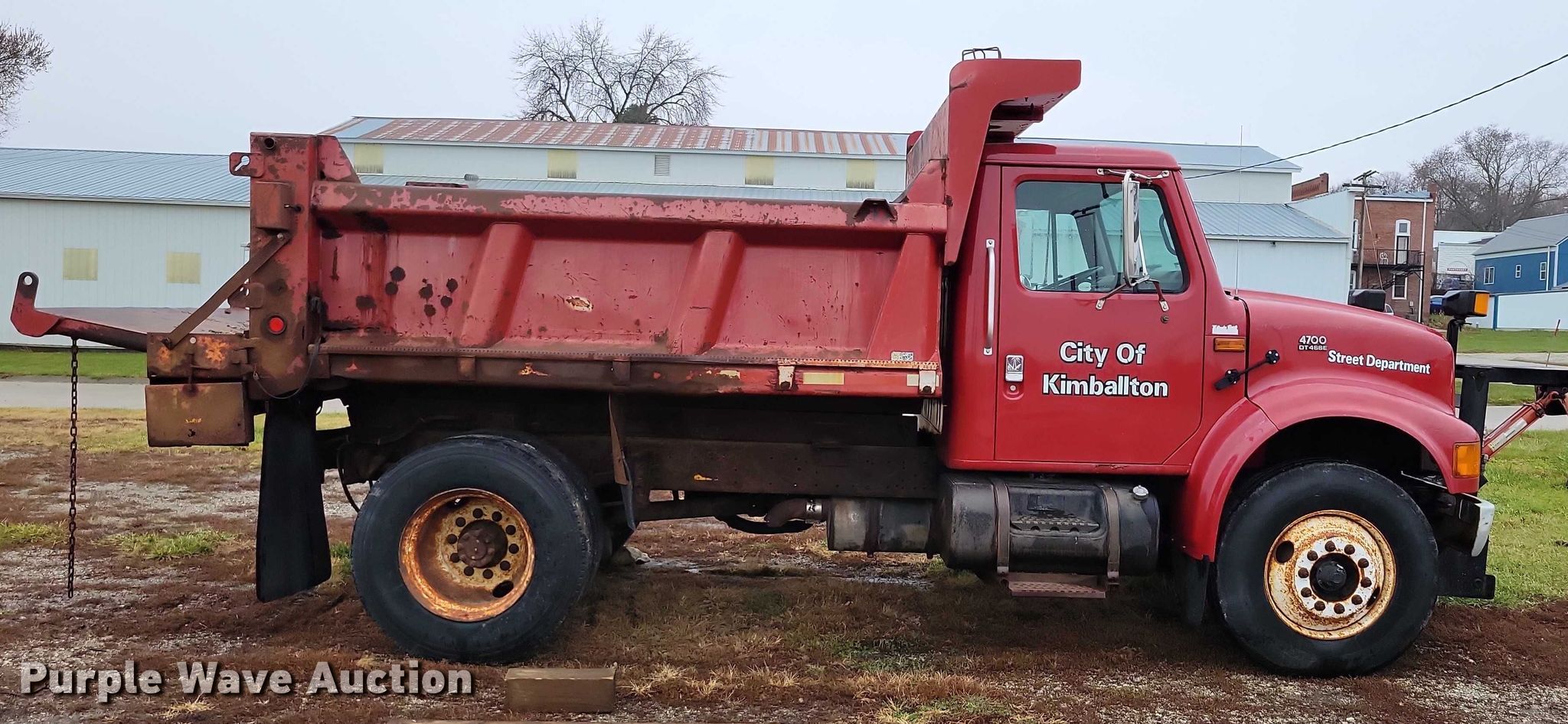 2001 International 4700 dump truck. Miles: 33,381 on odometer, Hours: 3,784 on meter, VIN: 1HTSCAAN01H340626. Engine International DT466E, Displacement: 7.6L, Cylinders: 6, Fuel type: Diesel. Transmission Allison, Automatic. Chassis Axles: Single, Suspension: Spring, Brakes: Air, PTO, GVWR: 33,000 lbs FAWR: 12,000 lbs, RAWR: 20,999 lbs. Interior Heat, Heated mirrors, Cruise control. Features Bed Dump bed, Heil, Length: 10', Width: 95", Bed type: Steel, Plow Henderson, Width: 132". Tires Size: 11R22.5. Notes Fuel system issues , Dead battery, Non-operational unit. Iowa title. Seller is a government entity who will be assigning and distributing the title. Please contact the seller for distribution questions. City of Kimballton, IA. Kimballton, IA 51543