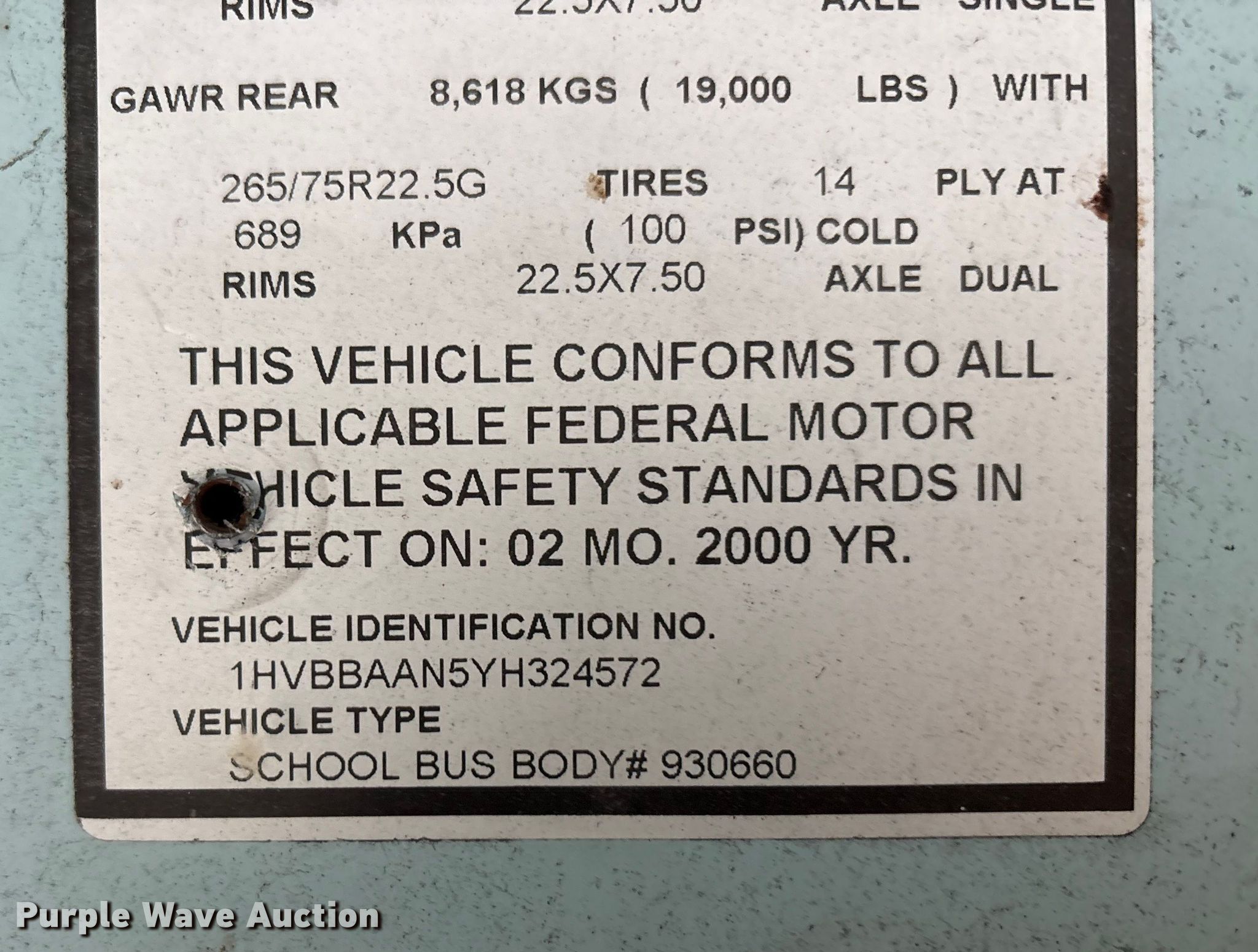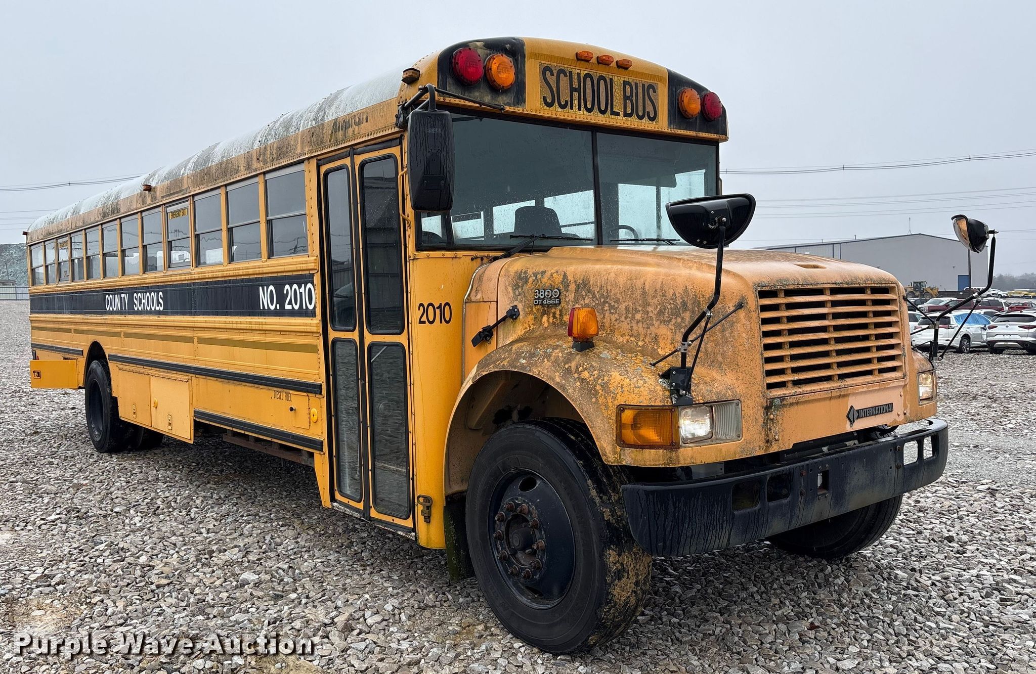 2000 International 3800 school bus. Miles: 201,667 on odometer, Hours: 10,471 on meter, VIN: 1HVBBAAN5YH324572, Unit #: 91498875. Engine International DT466E, Displacement: 7.64L, Cylinders: 6, Fuel type: Diesel. Transmission Automatic. Chassis Axles: Single, Suspension: Air, Brakes: Air, GVWR: 29,000 lbs. Interior Heat, Cruise control, Passengers: 8. Tires Size: 275/80R22.5. Notes Seats removed. Fleet inventory reduction, stored at a secured facility. Please review REQUIRED REMOVAL INSTRUCTIONS. Titles will be distributed after confirmation of payment and removal. Kentucky title. Title distribution may be delayed up to 30 days from verification of funds. Shelby County Public Schools/Bus Garage. Lawrenceburg, KY 40342