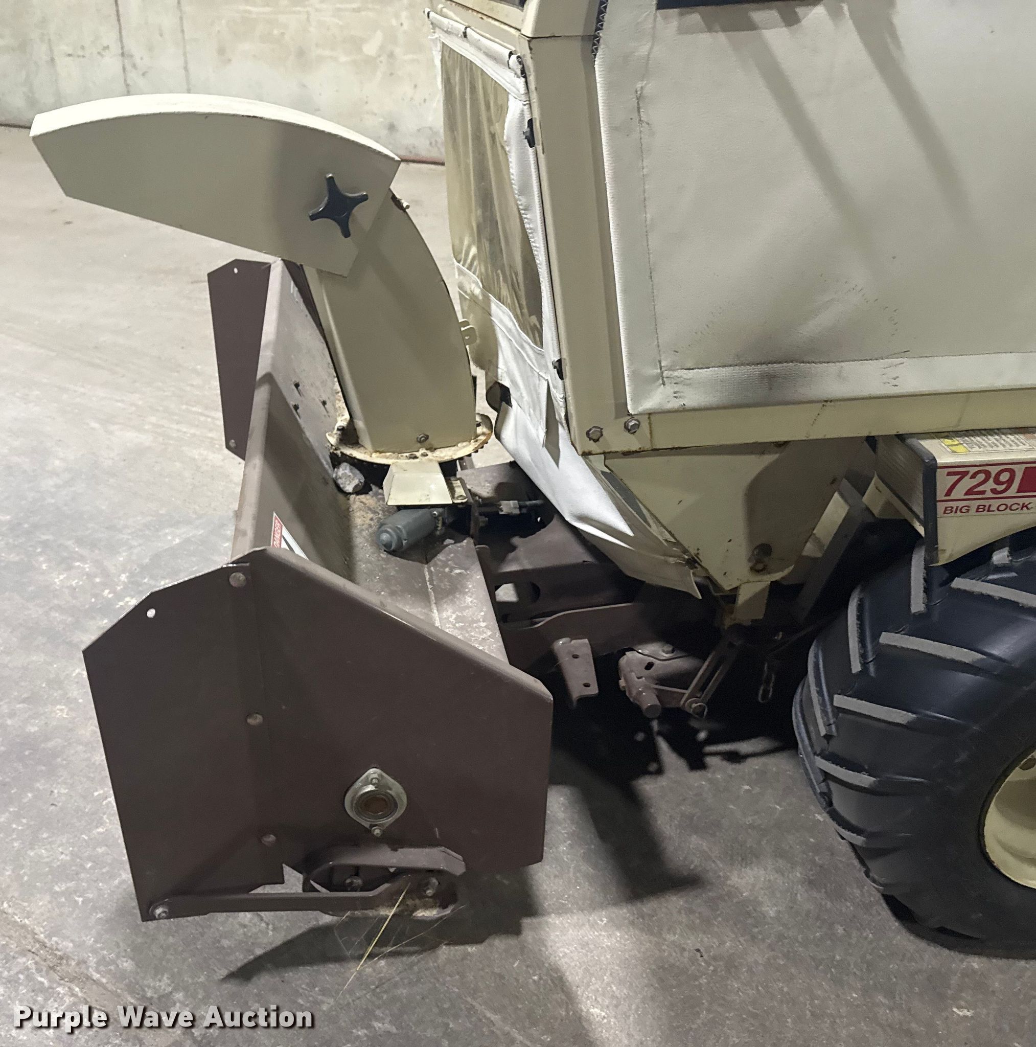 Grasshopper 729 ZTR lawn mower. Hours: 1,026 on meter. Engine Briggs & Stratton, Cylinders: 2, Fuel type: Gas. Transmission Hydrostatic. Operators station Enclosed cab. Features Snow blower Width: 43", Grasshopper 412. Tires Front: 11.00-10, Rear: 13x6.50-16. Notes Mower deck not included. Tulsa, OK 74134