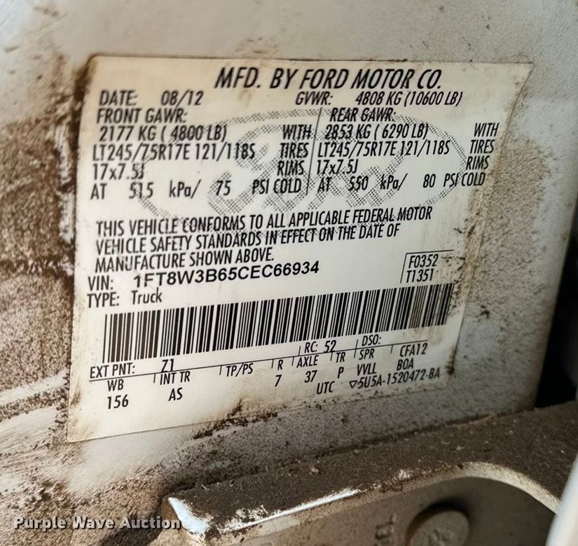 Purple Wave is selling a used 3/4 or 1 Ton Pickup or Van in Kansas. This item is a 2012 Ford F350 Super Duty Crew Cab pickup truck with the following: Miles: 180,124 on odometer, VIN: 1FT8W3B65CEC66934, Unit #: 1