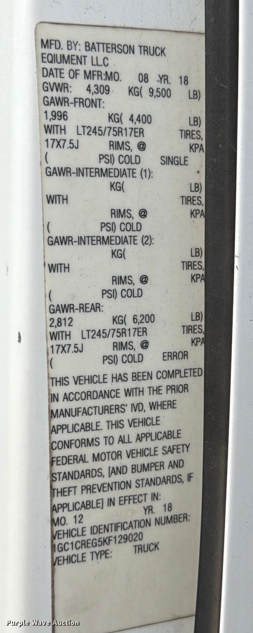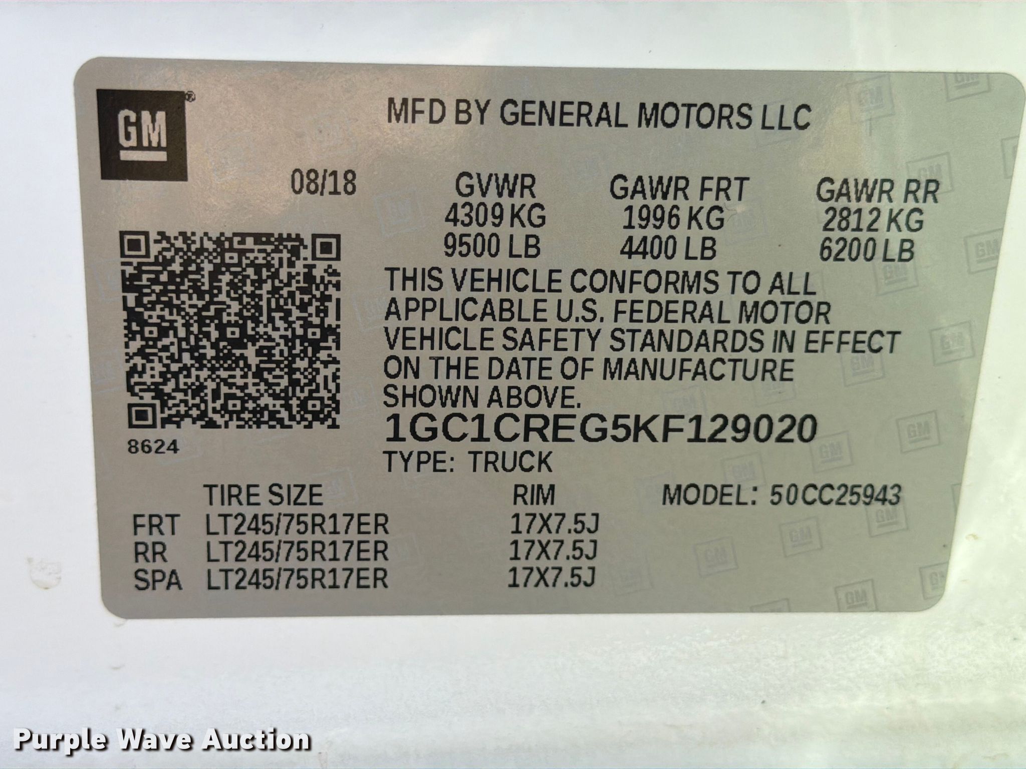 - VIN: 1GC1CREG5KF129020
