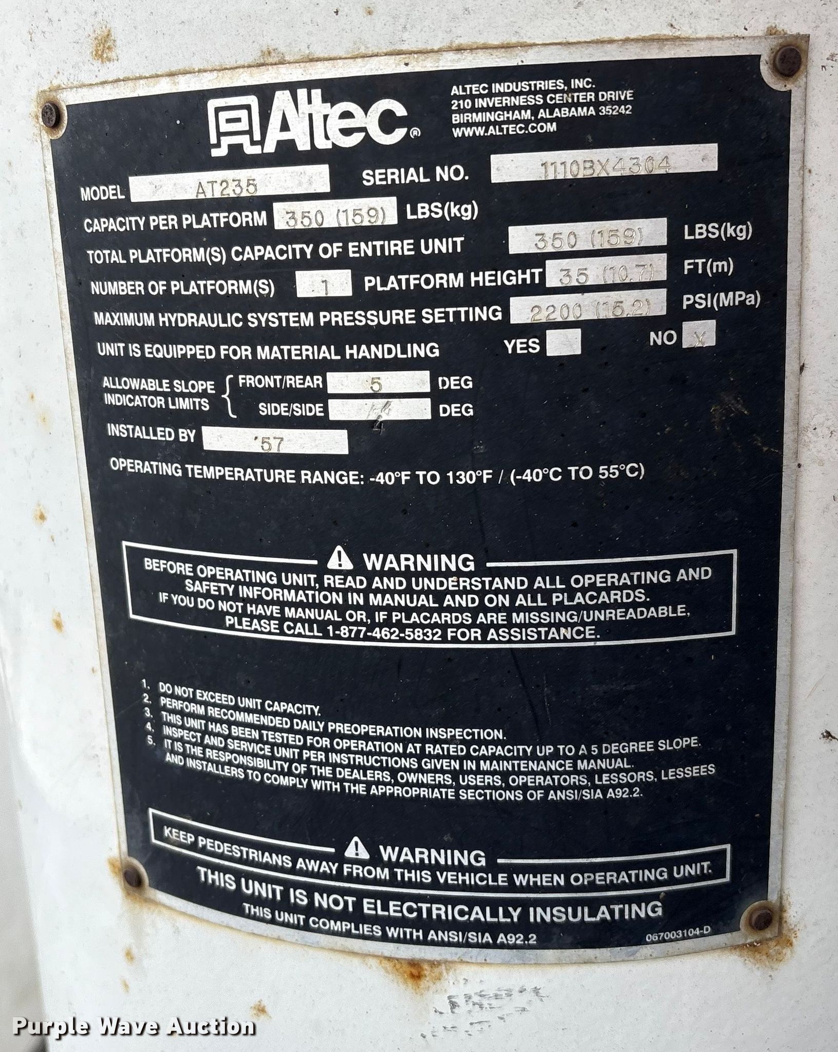 - Maximum lift height: 35'