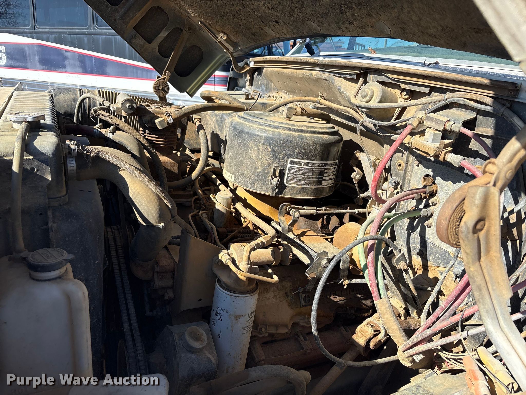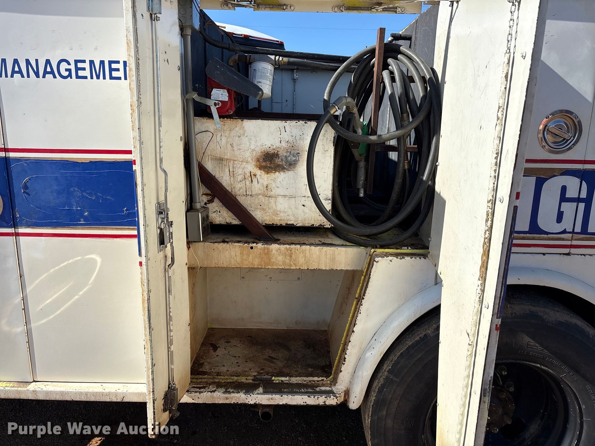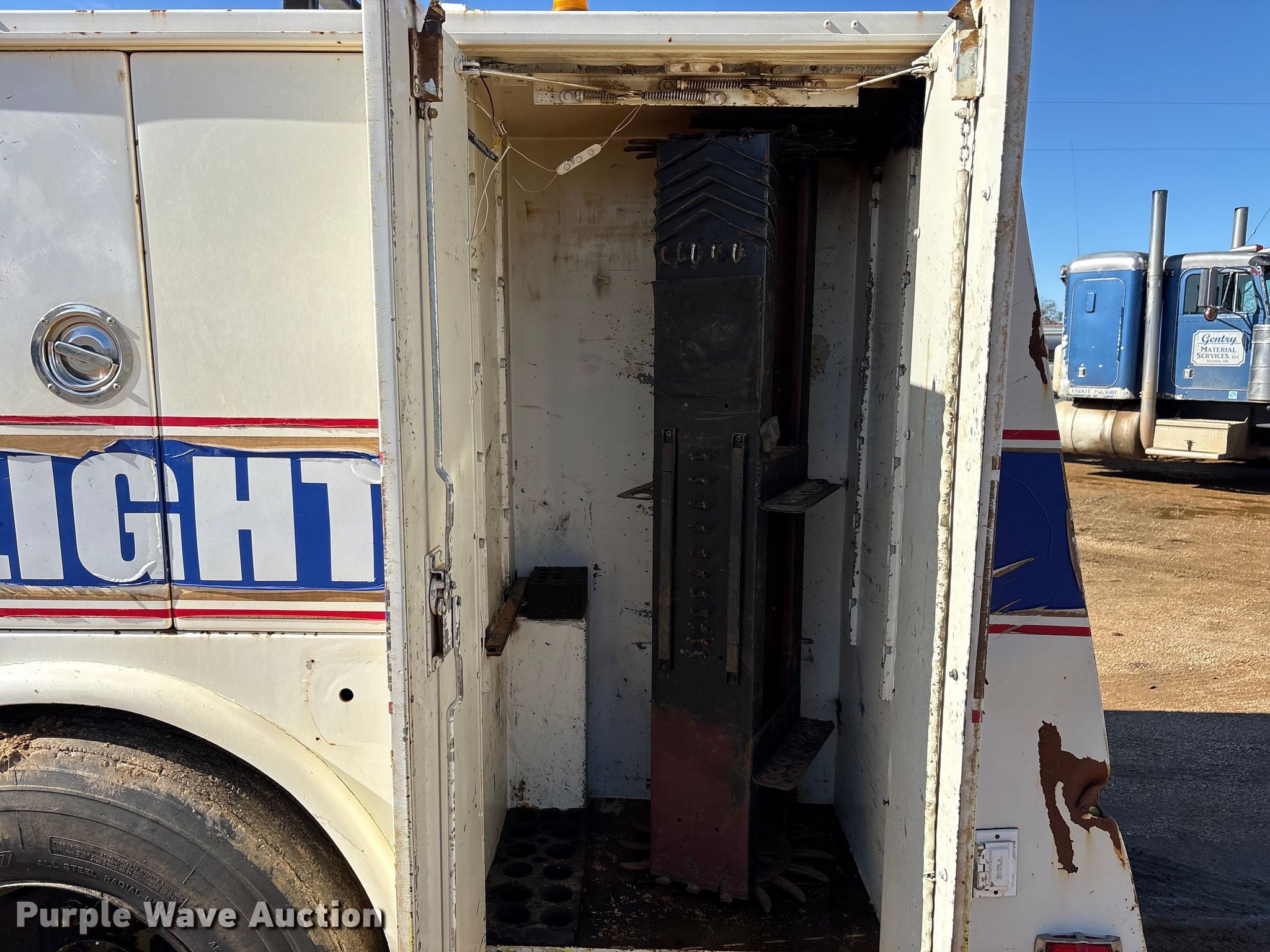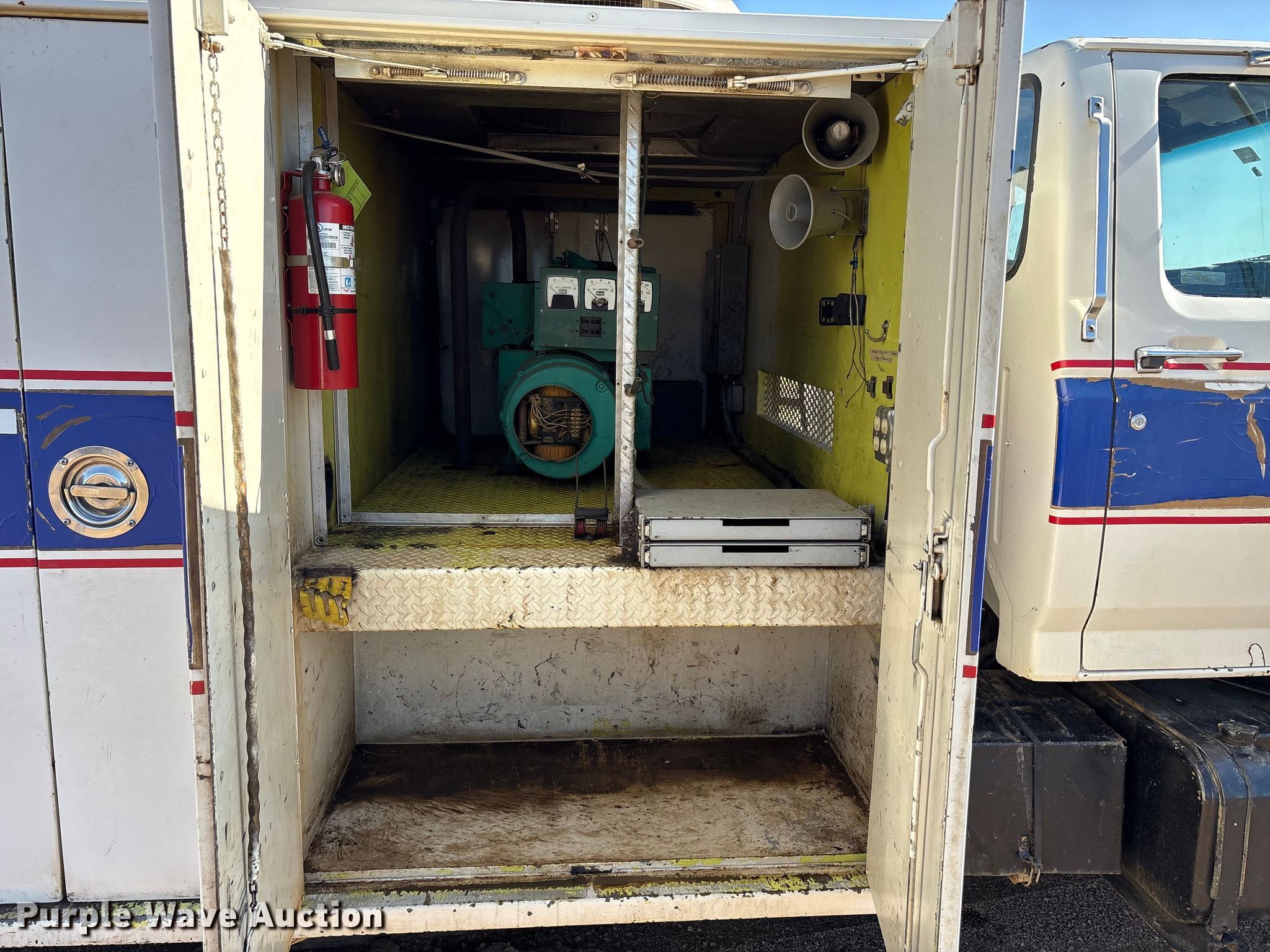 1987 Ford F8000 utility / service truck. Miles: 14,746 on odometer, Hours: 5,190 on meter, VIN: 1FDXK87U6HVA01941. Engine Caterpillar 3208, Serial: 02Z29045, Displacement: 10.4L, Cylinders: 8, Fuel type: Diesel, HP: 215. Transmission Automatic. Chassis Axles: Single, Suspension: Spring, Brakes: Air, GVWR: 26,500 lbs, Wheelbase: 177". Interior Heat. Features Fuel tanks: Dual Driver: Gas, Passenger: Diesel, Bed Length: 171", Width: 88", Generator Onan, Fuel type: Gas, Reservoirs Grease, Fuel tank. Tires Size: 11R22.5. Oklahoma classic title. Title distribution may be delayed up to 14 days from verification of funds. Gentry Material Services LLC. Tishomingo, OK 73460