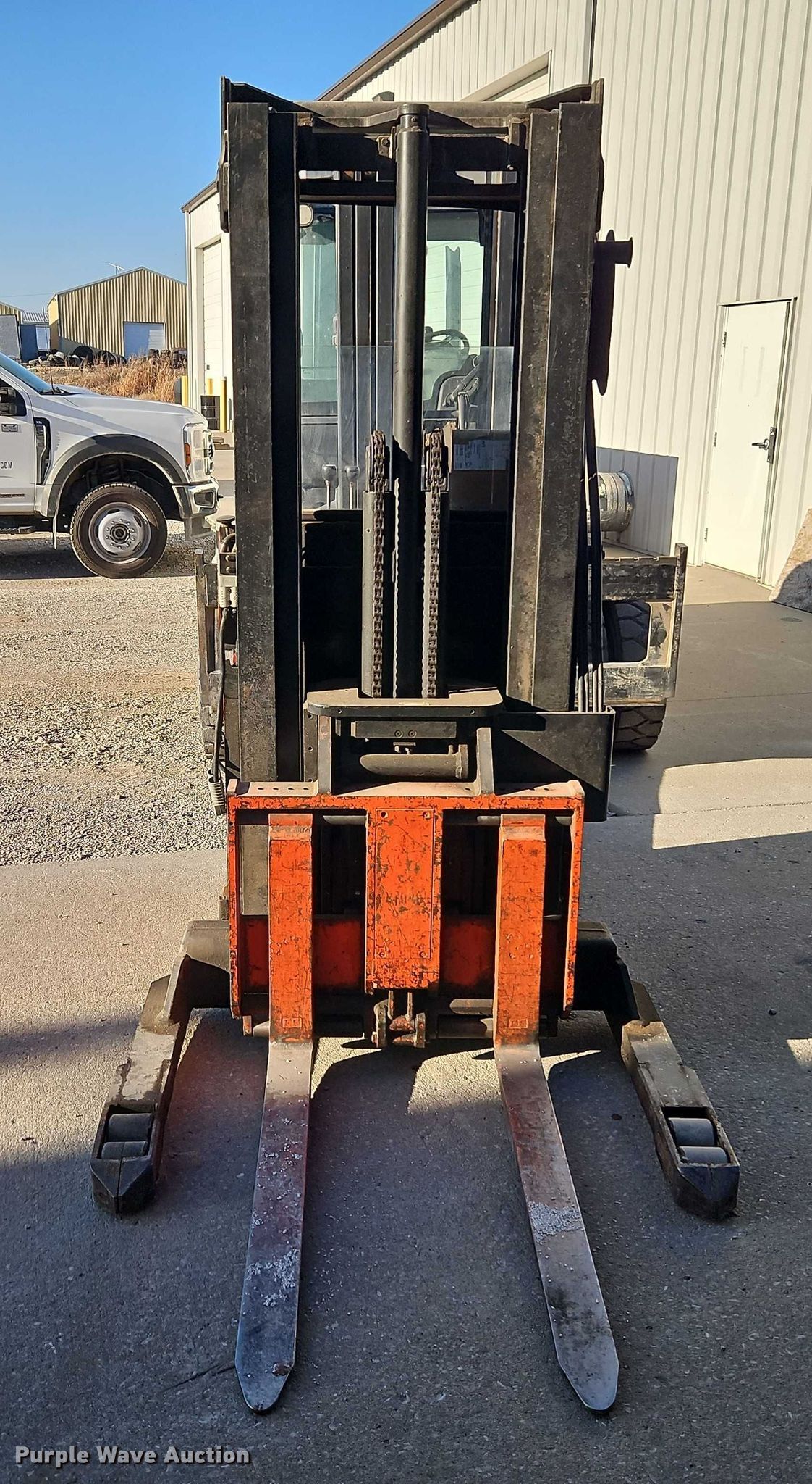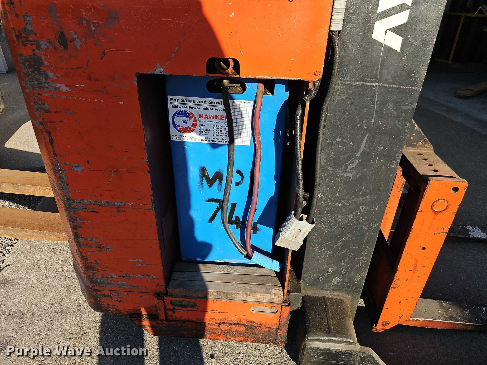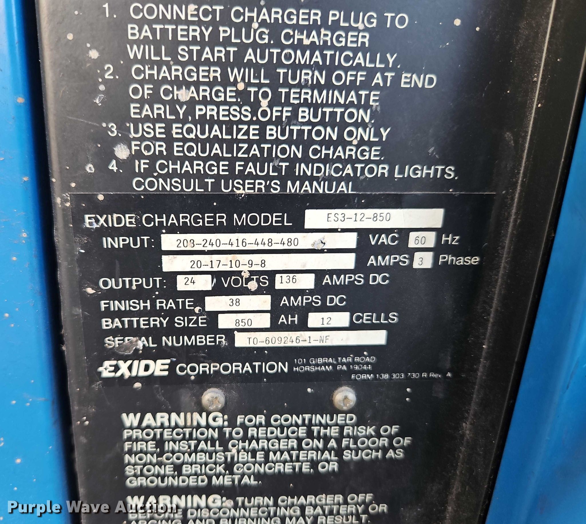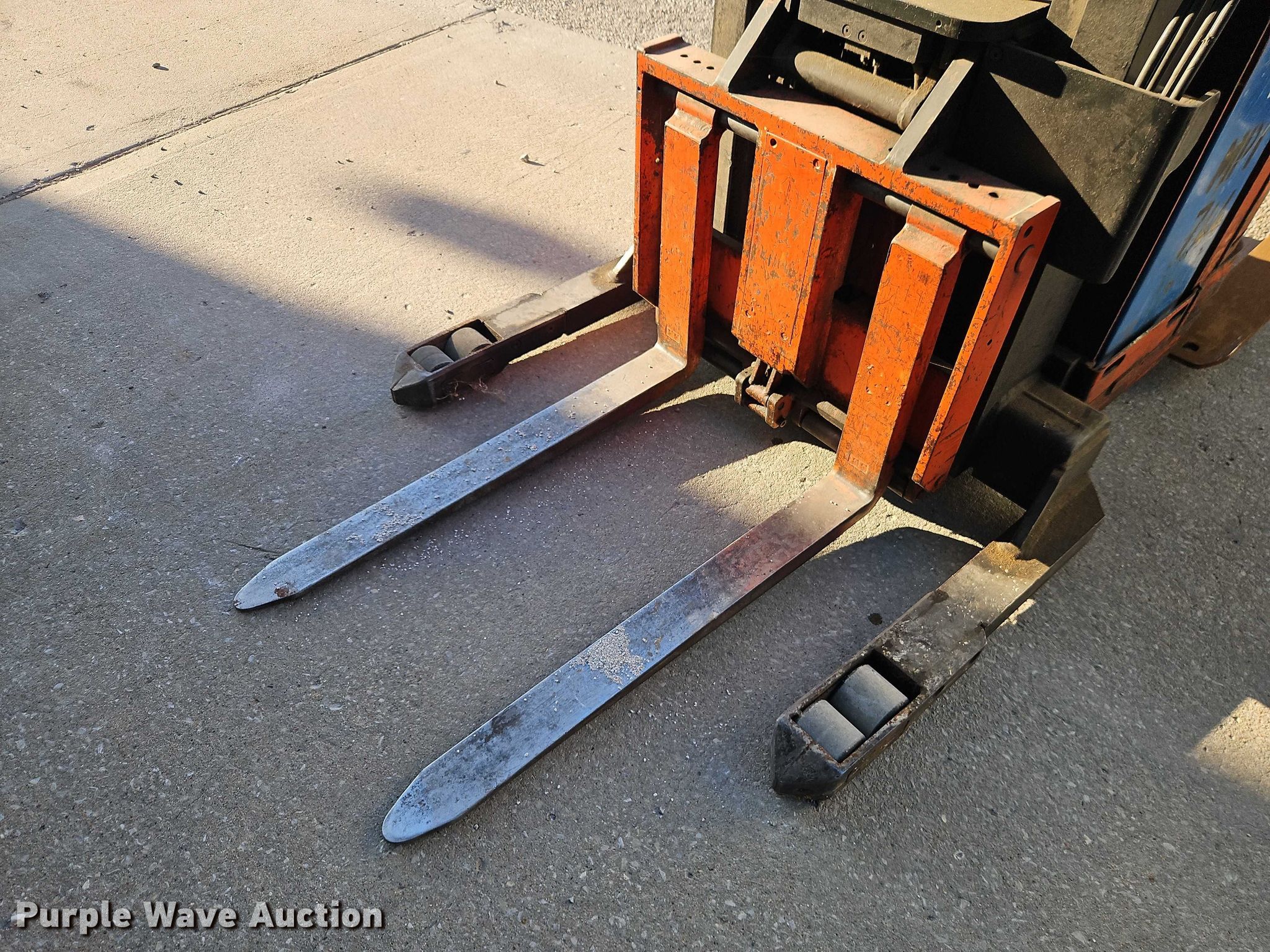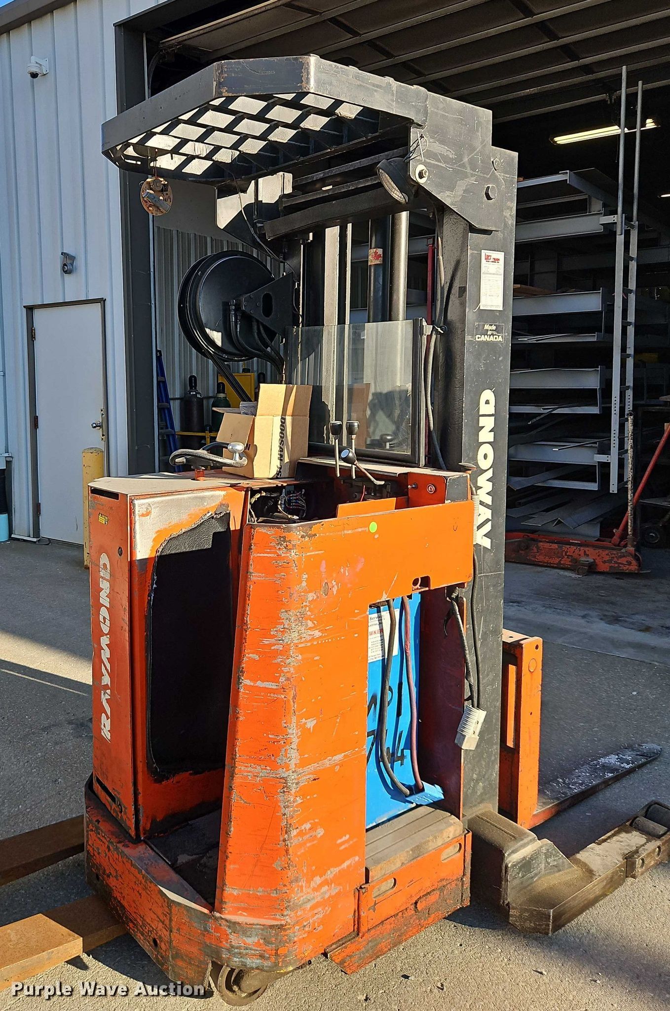Raymond 20R40TT forklift. Hours: 9,031 on meter, Serial: 020.85.24752. Electric Motor Volts: 24, Phase: Three, Charger: Three phase * Exide ES3-12-850. Transmission Electric drive. Features Maximum lift capacity: 4,000 lbs, Maximum lift height: 181", Collapsed mast height: 86", Mast stages: 2, Reach / retract, Fork length: 42". Notes Dead battery, Parts only, Parts may be missing, Non-operational unit. Parallel Ag. 1015 U.S. 65 Business. Marshall, MO 65340