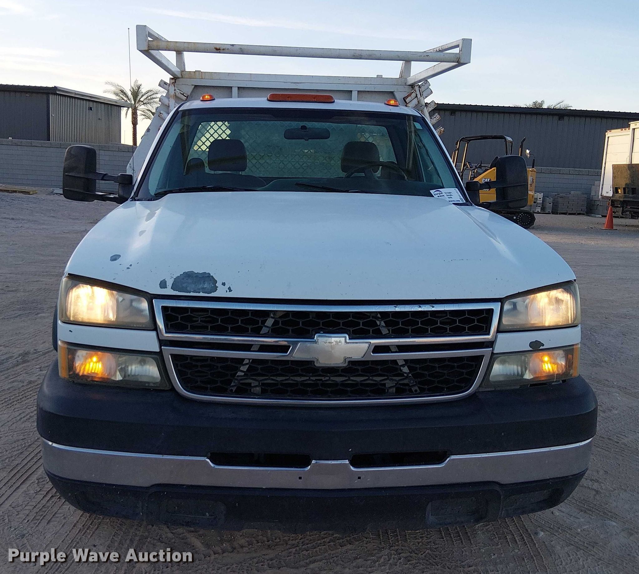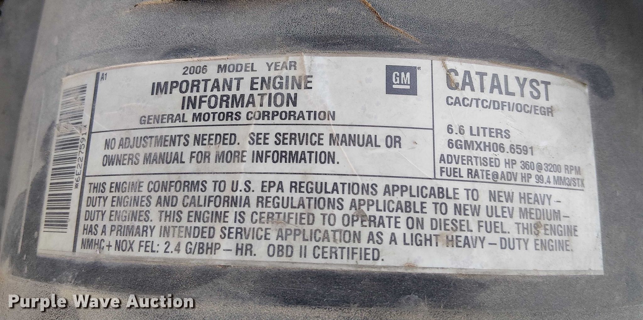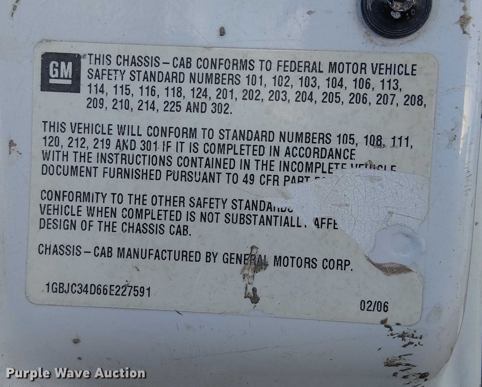 2006 Chevrolet Silverado 3500 flatbed pickup truck. Miles: 230,153 on odometer, Hours: 3,139 on meter, VIN: 1GBJC34D66E227591. Engine Displacement: 6.6L, Cylinders: 8, Fuel type: Diesel. Transmission Automatic. Interior Brake controller. Features Bed Flatbed, Harbor Truck Bodies FBS / 14496-16, Serial: 55491, Length: 12' 6", Width: 8'. Tires Size: LT235/85R16. Notes Dash warning indicator: Check engine, Airbag, Windshield chipped or cracked. Arizona title. Title distribution may be delayed up to 30 days from verification of funds. Redmond Construction. Fort Mohave, AZ 86426