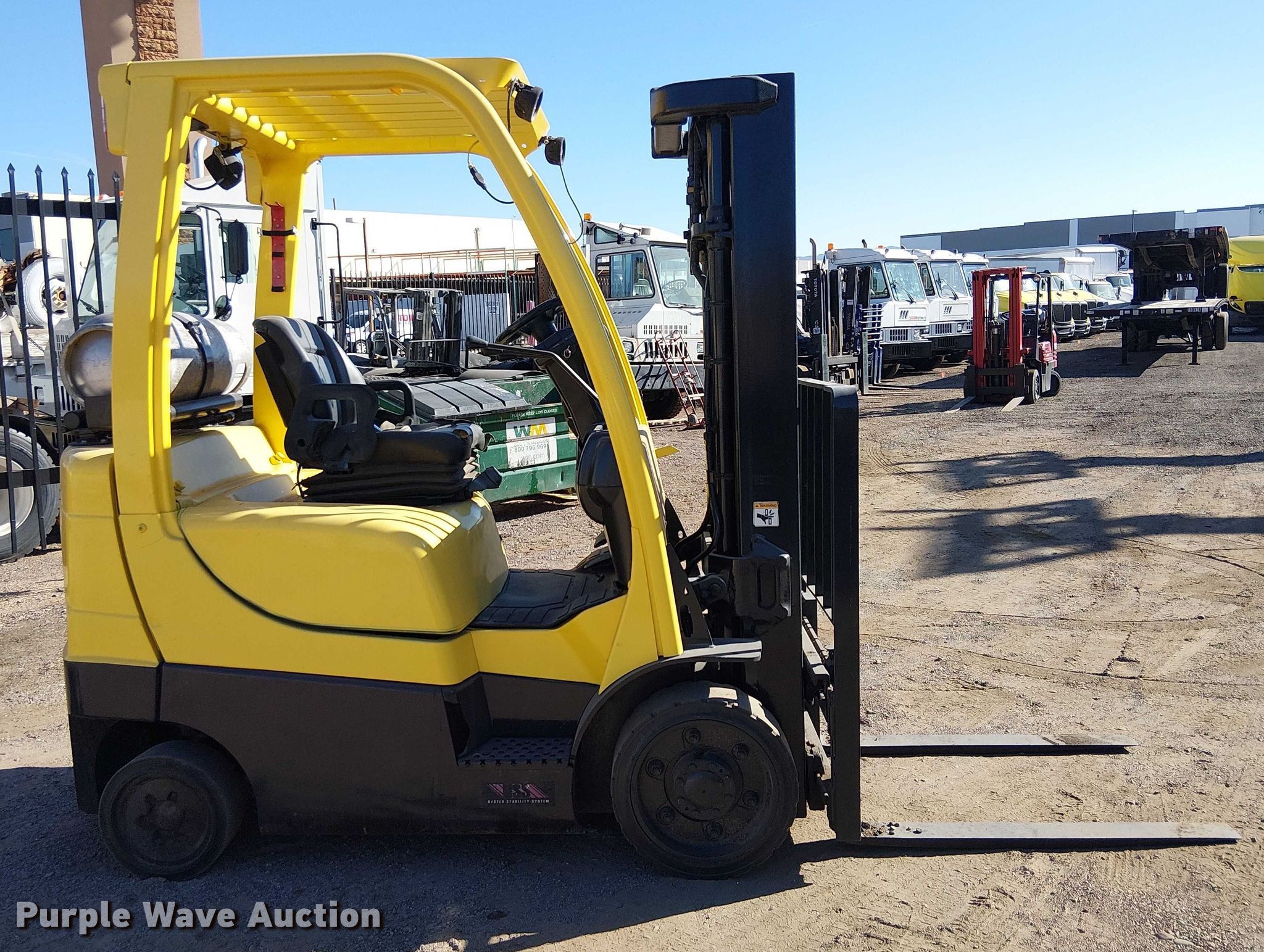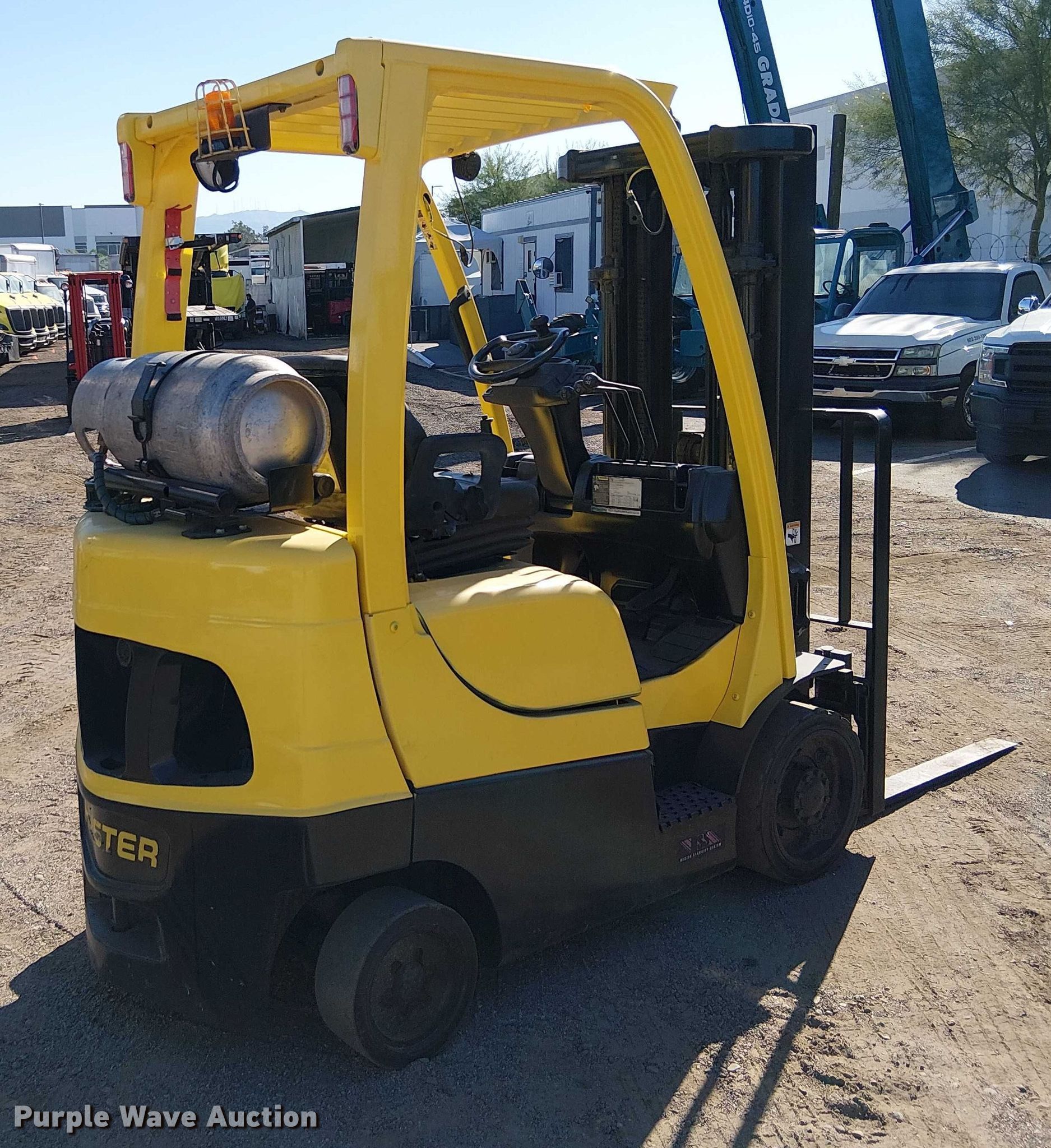 Purple Wave is selling a used Cushion Tire or Pneumatic Forklift in Arizona. This item is a 2012 Hyster S50 forklift with the following: Hours: Unknown, Serial: F187V20627K
