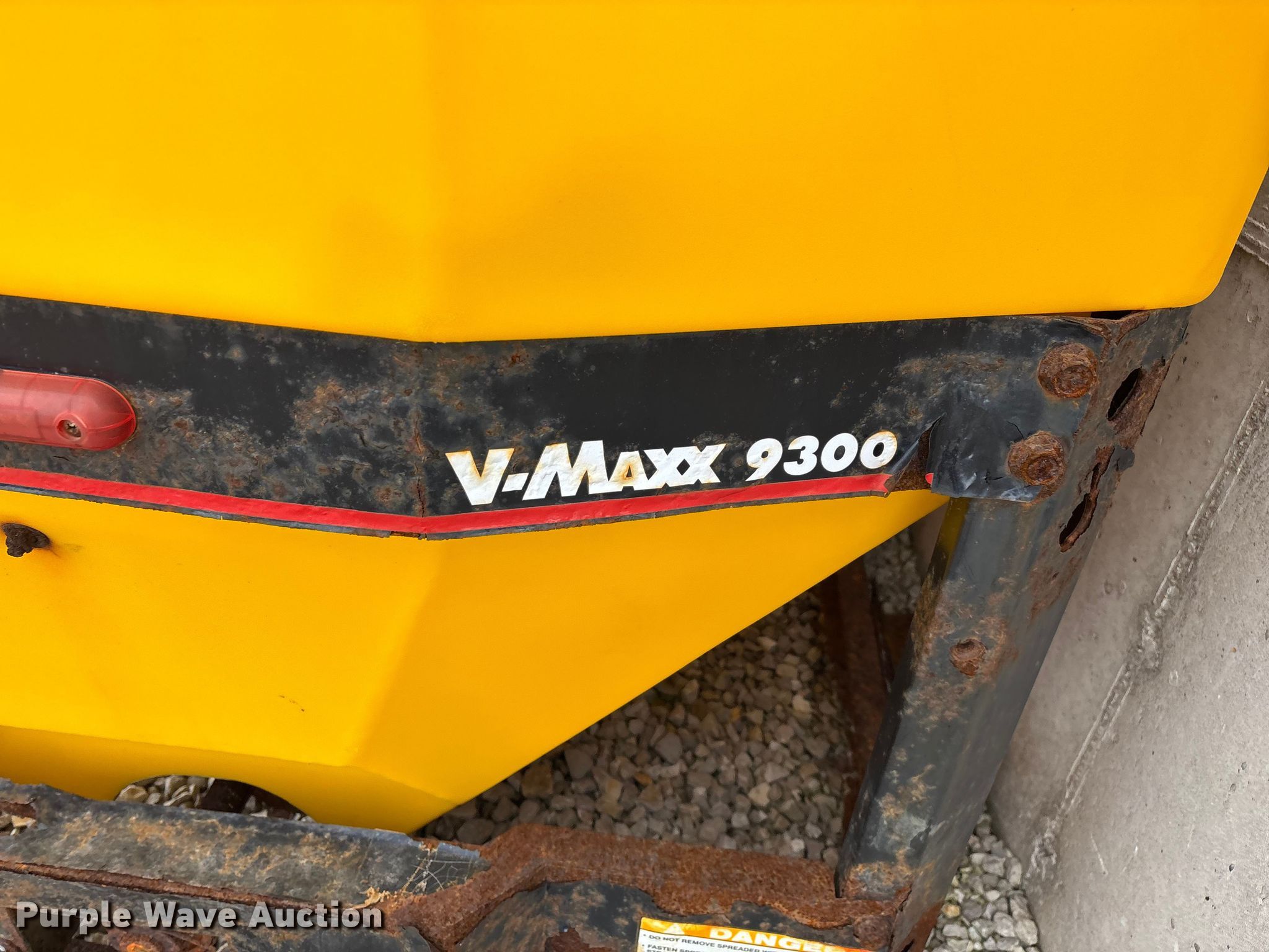 SnowEx Vmaxx 9300 spreader. Features. Size: 9'L x 53"W x 45"H. Notes Rust damage, Non-operational unit. Quaker Windows & Doors. Freeburg, MO 65035