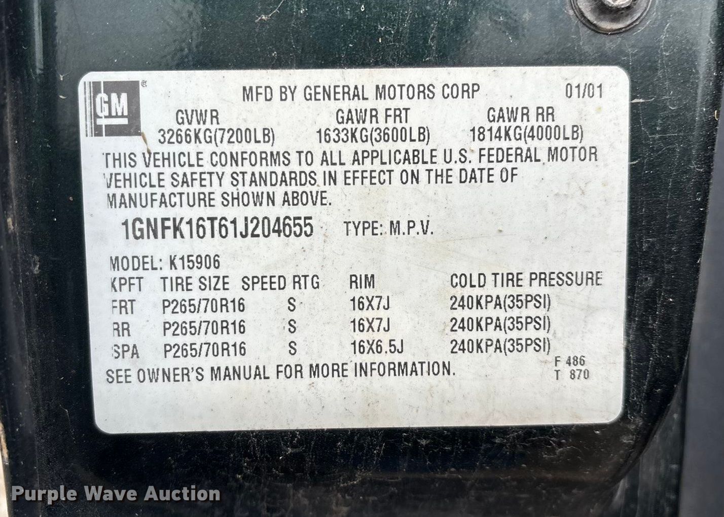 - VIN: 1GNFK16T61J204655