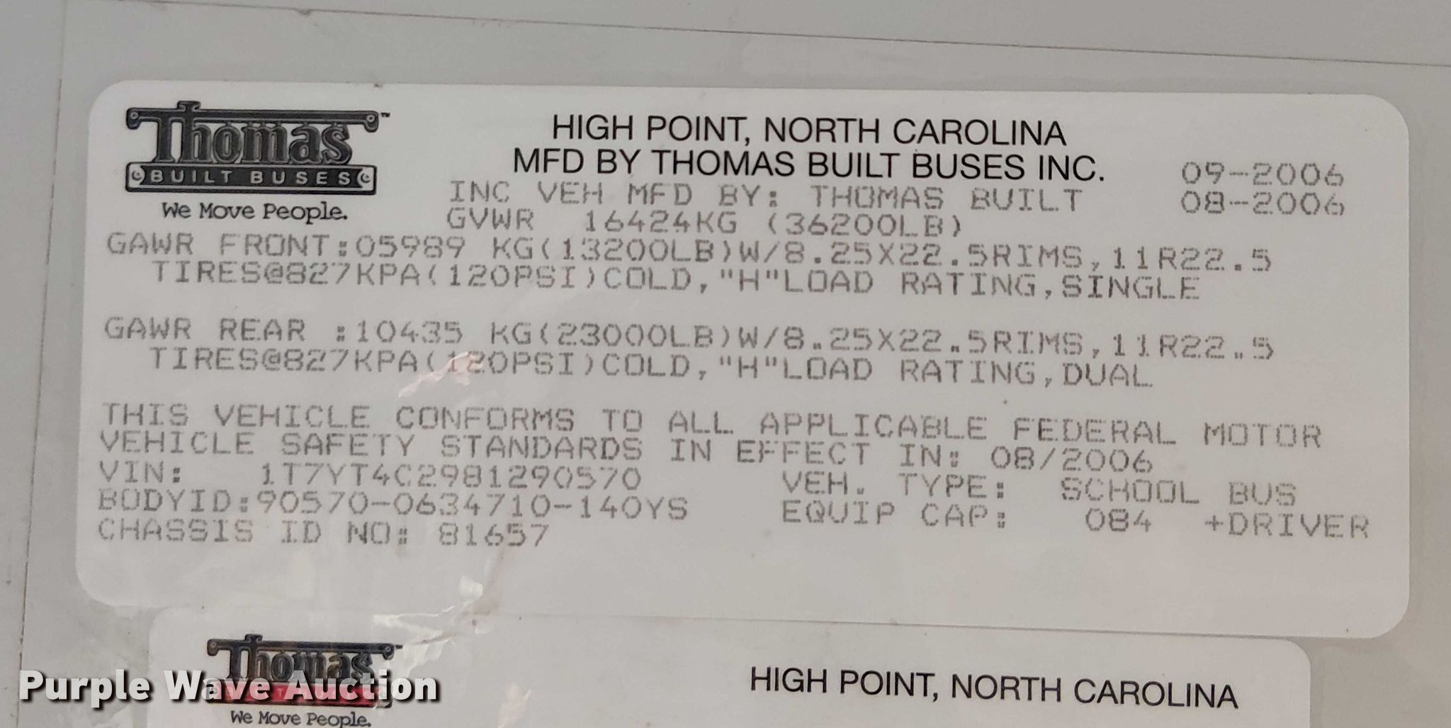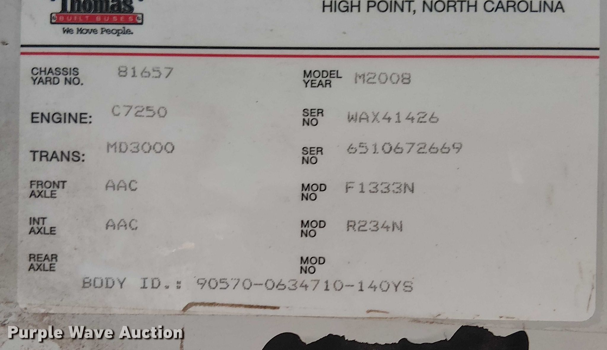 Purple Wave is selling a used Bus in Arizona. This item is a 2008 Thomas Built HDX school bus with the following: Miles: 171,365 on odometer, VIN: 1T7YT4C2981290570