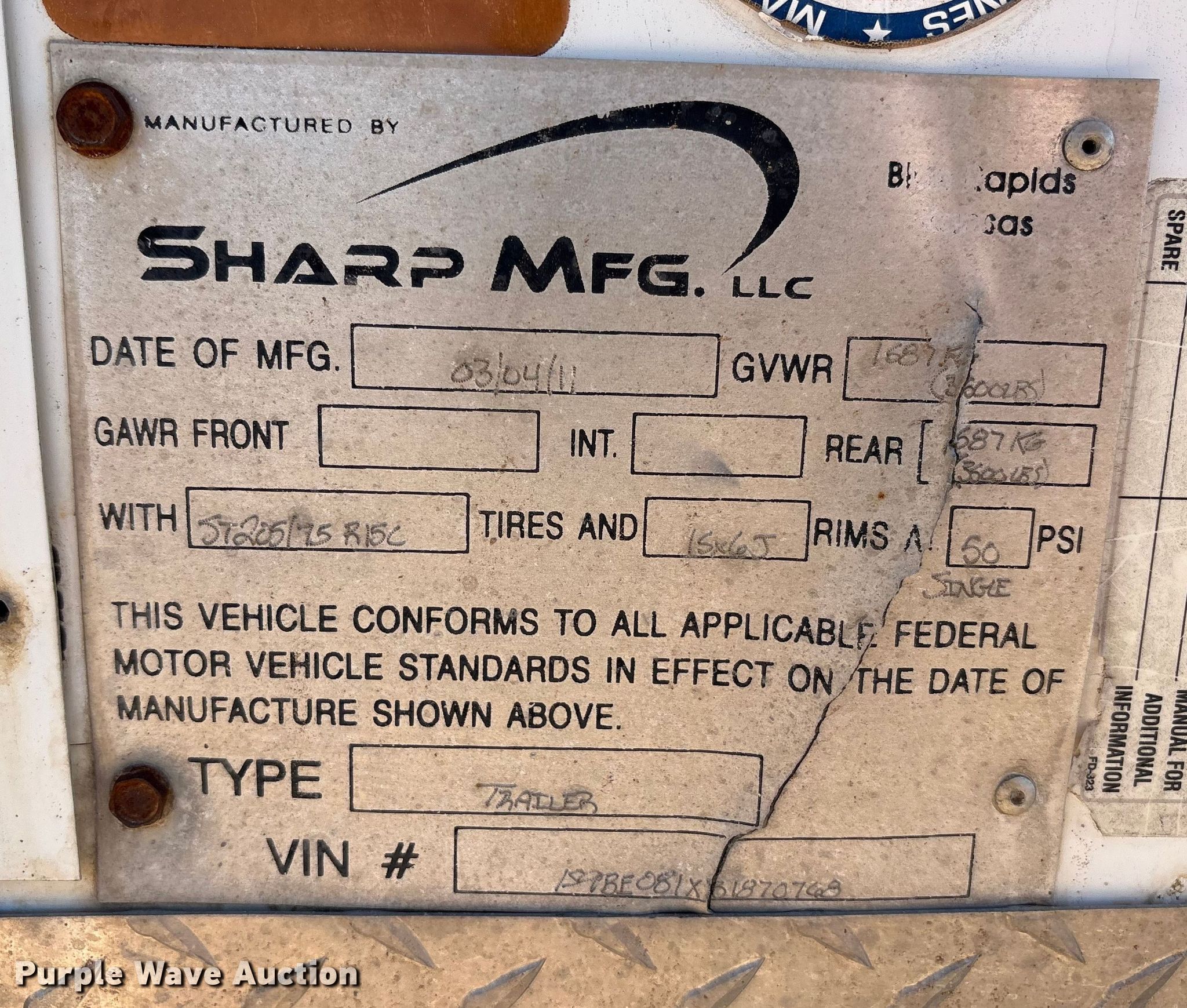 Purple Wave is selling a used Enclosed Cargo Trailer in Texas. This item is a 2011 Sharp Manufacturing enclosed cargo trailer with the following: VIN: 159BE081X81870768