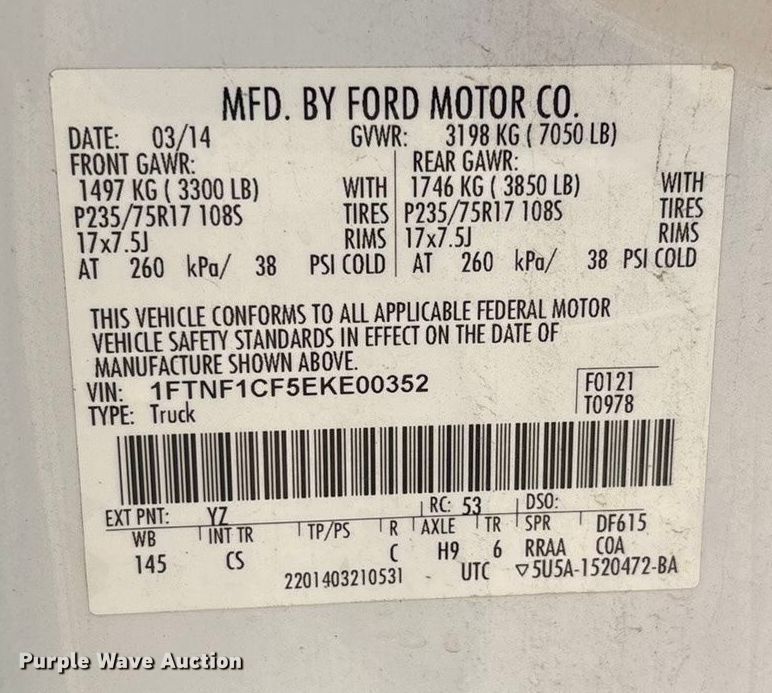 - VIN: 1FTNF1CF5EKE00352