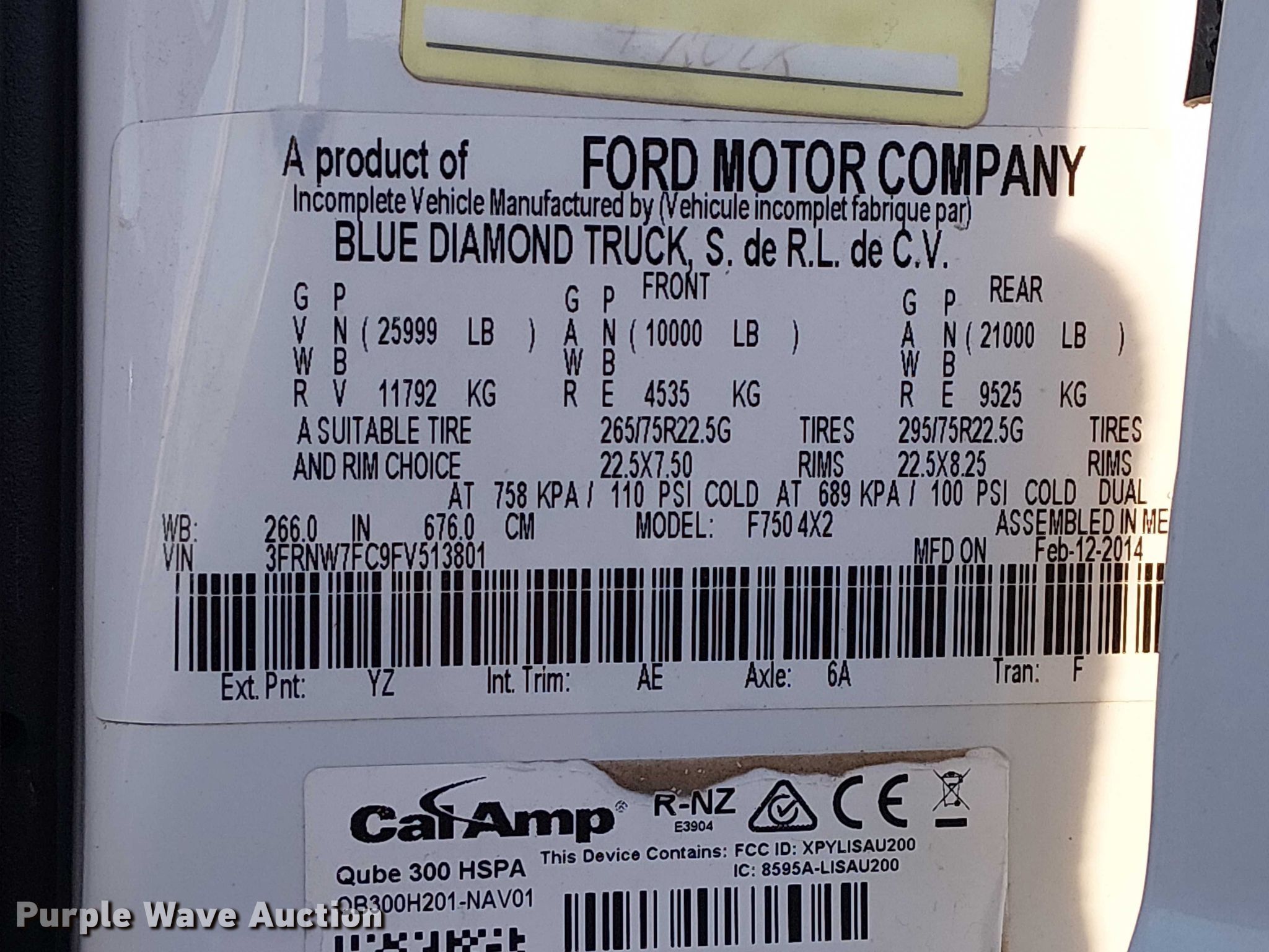 2015 Ford F750 Super Duty utility / service truck. Miles: 75,269 on odometer, Hours: 4,934 on meter, VIN: 3FRNW7FC9FV513801. Engine Cummins, Displacement: 6.7L, Cylinders: 6, Fuel type: Diesel. Transmission Automatic. Chassis Axles: Single, Suspension: Spring, Brakes: Hydraulic, GVWR: 25,999 lbs, Wheelbase: 266". Interior AC, Heat, Power windows, Power locks, Cruise control, Auxiliary controls, Brake controller. Features Bed Flatbed, Length: 13' 5", Width: 95" Gooseneck.. Tires Size: 11R22.5. Oklahoma title. Seller is an Oklahoma licensed motor vehicle dealer. Buyers may be required to provide identification to the licensed dealer to comply with state laws. Title will be assigned and distributed by the dealer. Please contact the seller for distribution questions. Title distribution may be delayed up to 30 days from verification of funds. Collinsville, OK 74021