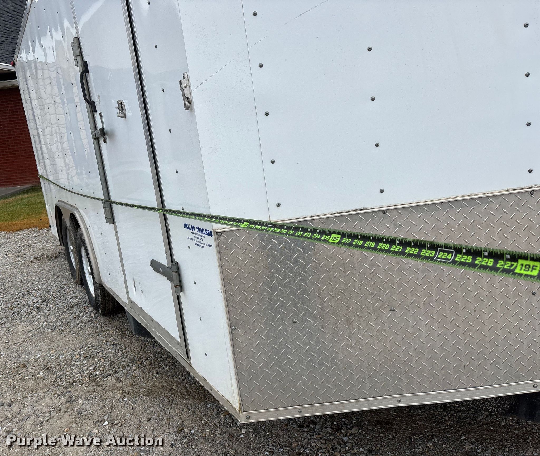 2016 MTPA Pro Star Windbreaker enclosed cargo trailer. VIN: 4MPCB1623G1006521. Dimensions Overall Length: 20' 8", Width: 8' 8", Body Length: 18' 6", Width: 8' 5", Rear door / ramp 71" L x 91" W. Features Deck type: Wood. Chassis Ball hitch: 2 5/16", Landing gear: Single, Suspension: Spring, Brakes: Electric, Axles: Tandem, GVWR: 7,000 lbs, GAWR: 3,500 lbs. Tires Steel wheels, Size: ST225/75R15. Notes Door latch issues. Missouri title. Title distribution may be delayed up to 14 days from verification of funds. Hardy Holding Group. Pilot Grove, MO 65276