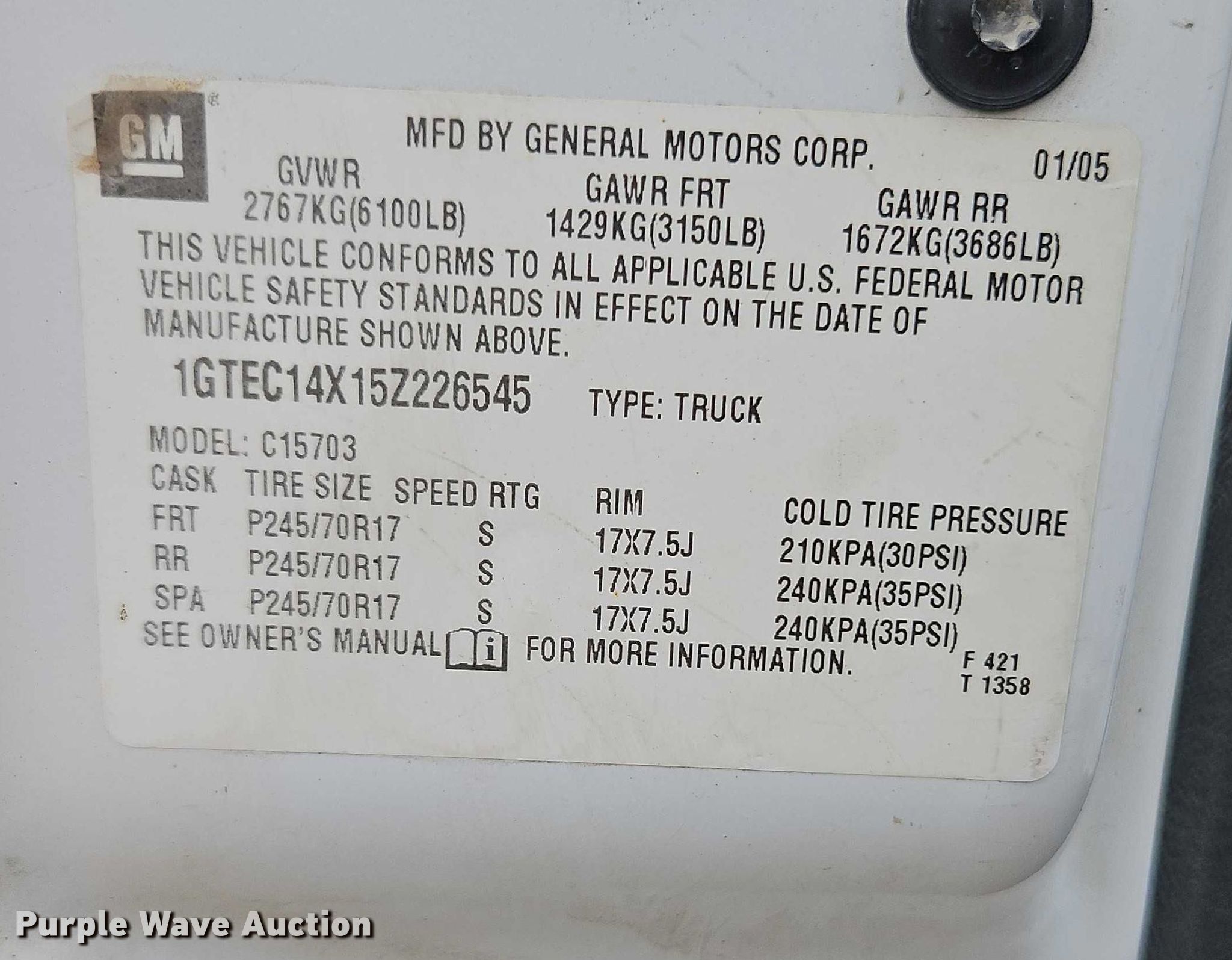 Purple Wave is selling a used 1/2 Ton Pickup or Van in Kansas. This item is a 2005 GMC Sierra 1500 pickup truck with the following: Miles: 230,357 on odometer, VIN: 1GTEC14X15Z226545, Unit #: 278