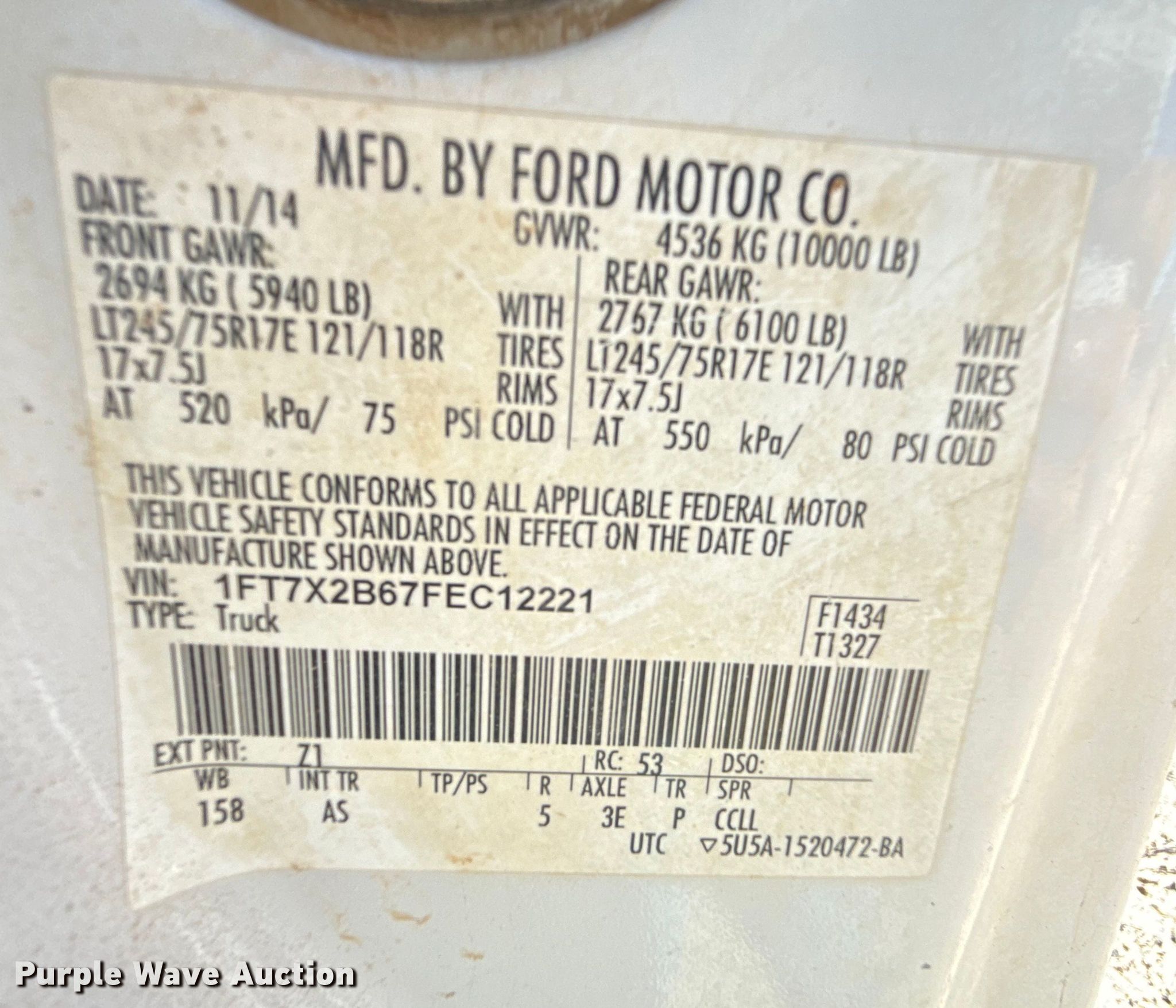 Purple Wave is selling a used 3/4 or 1 Ton Pickup or Van in Oklahoma. This item is a 2015 Ford F250 flatbed pickup truck with the following: Miles: 255,290 on odometer, VIN: 1FT7X2B67FEC12221, Unit #: 14212