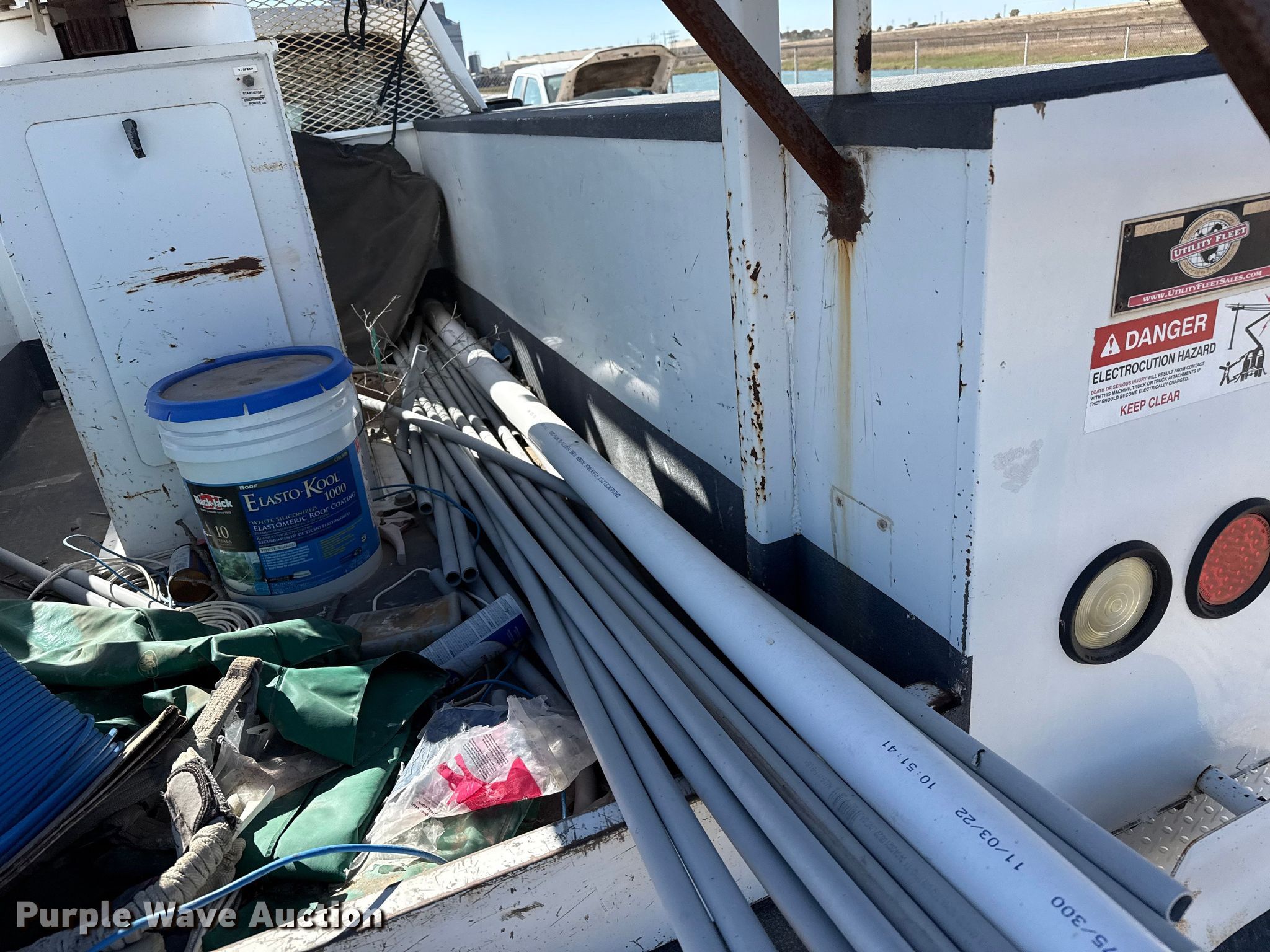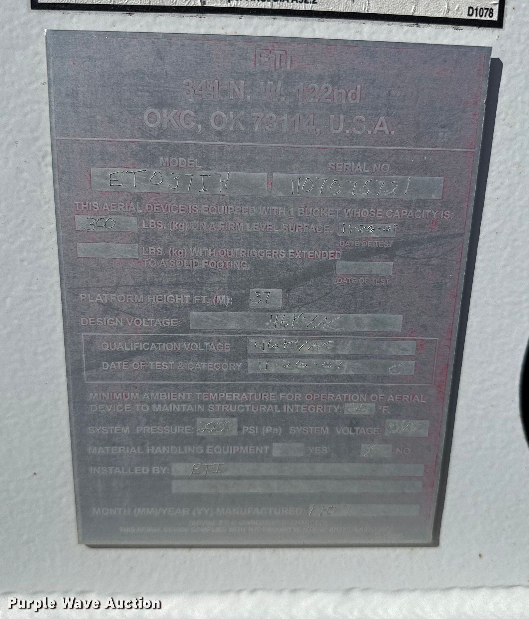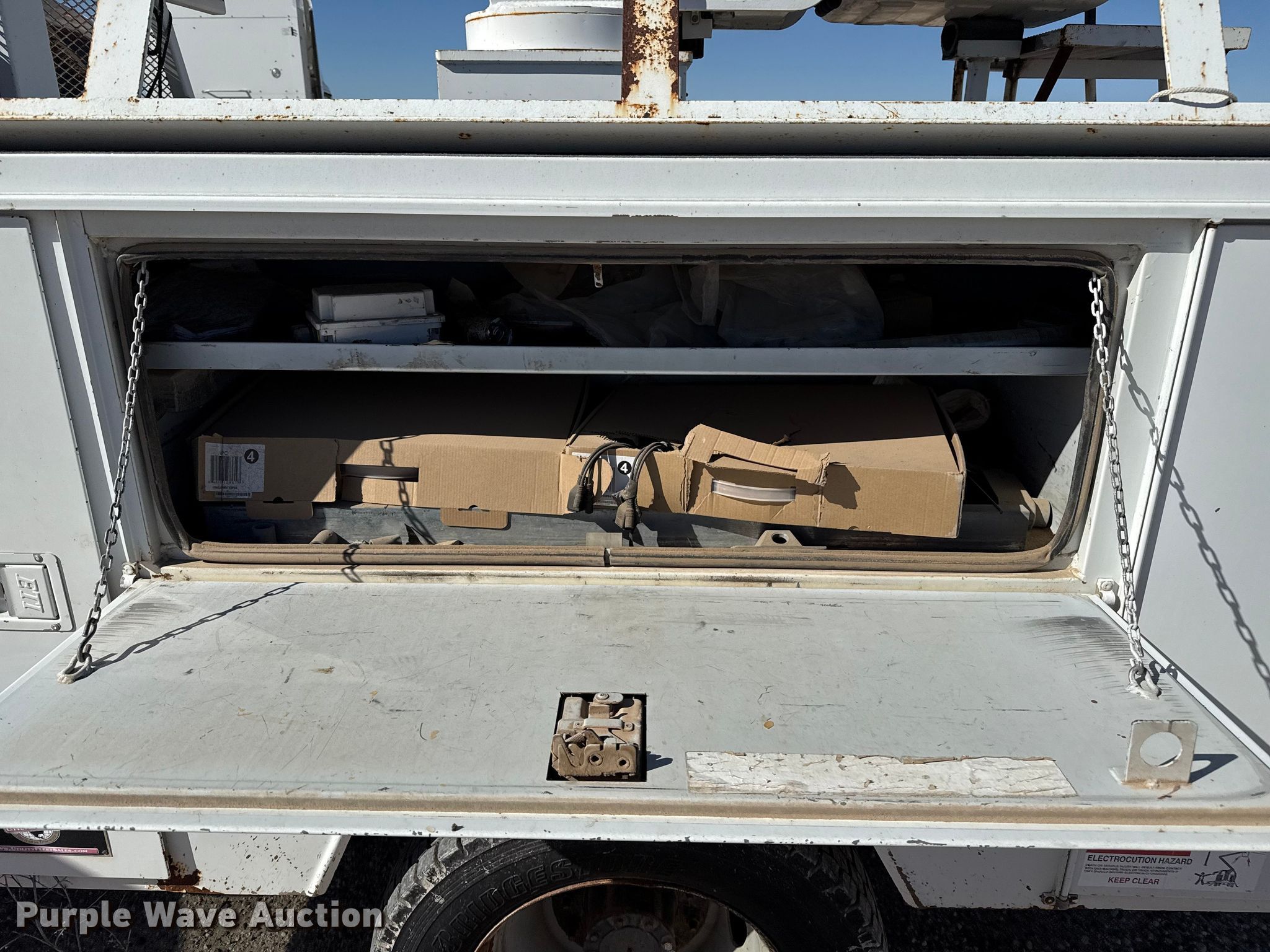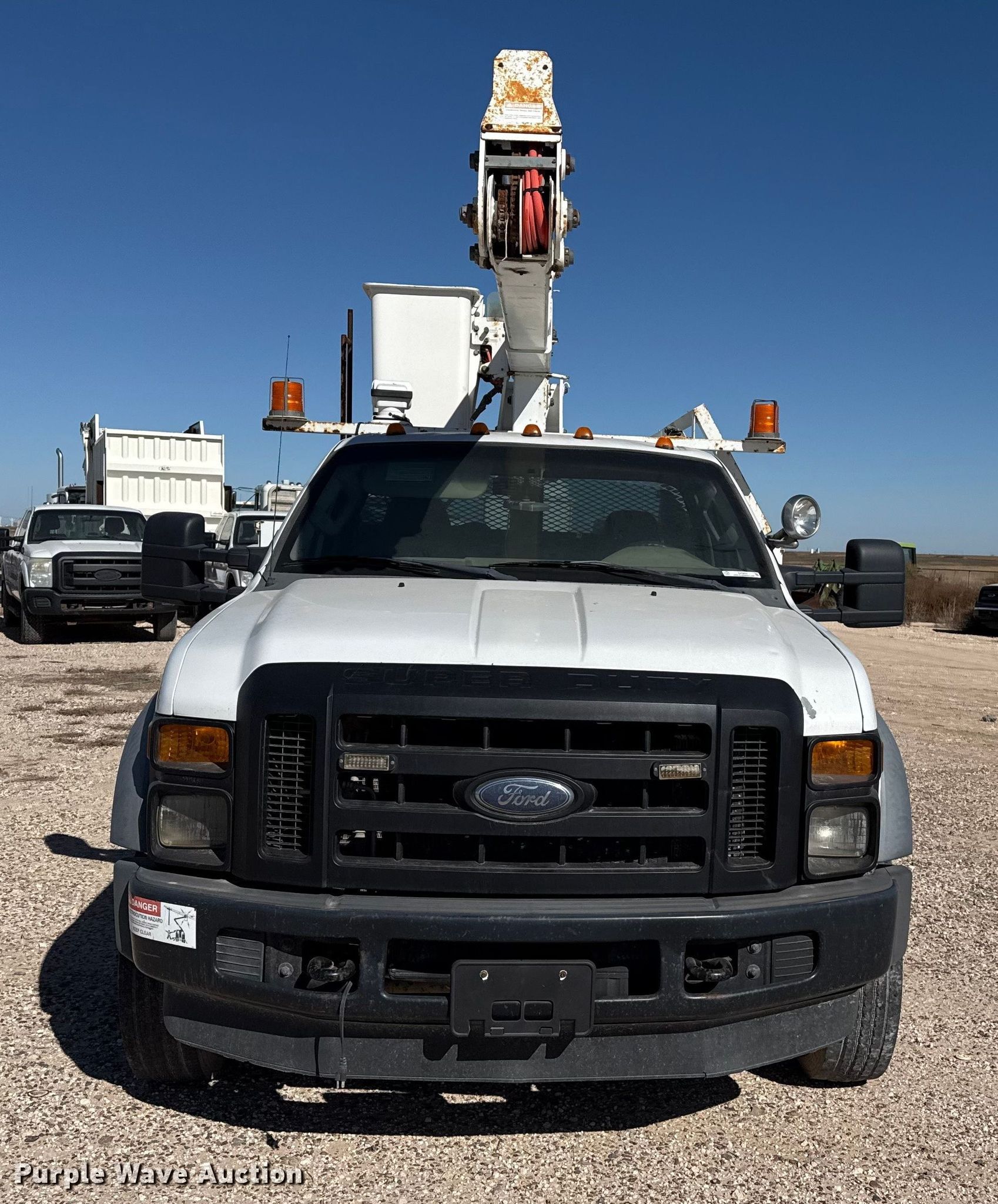 2008 Ford F550 bucket truck. Miles: 188,972 on odometer, VIN: 1FDAF56R28EC66443, Unit #: 13303. Engine Displacement: 6.4L, Cylinders: 8, Fuel type: Diesel. Transmission Automatic. Chassis Axles: Single, Suspension: Spring, Brakes: Hydraulic, PTO. Interior AC, Heat. Features Bed ETI, Length: 9', Width: 93", Boom ETI, Maximum lift capacity: 300 lbs, Maximum lift height: 37', Boom type: Insulated, Telescopic, Man basket, Boom controls Ground, Platform/ basket.. Tires Size: 225/70R19.5. Notes Jump start required during on-site data collection. Oklahoma title. Title distribution may be delayed up to 30 days from verification of funds. Seaboard Foods. Optima, OK 73945