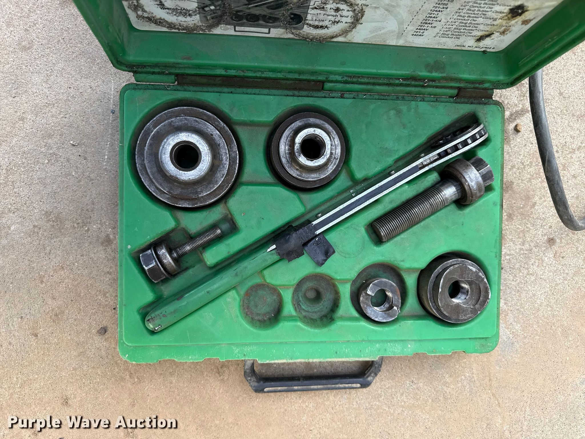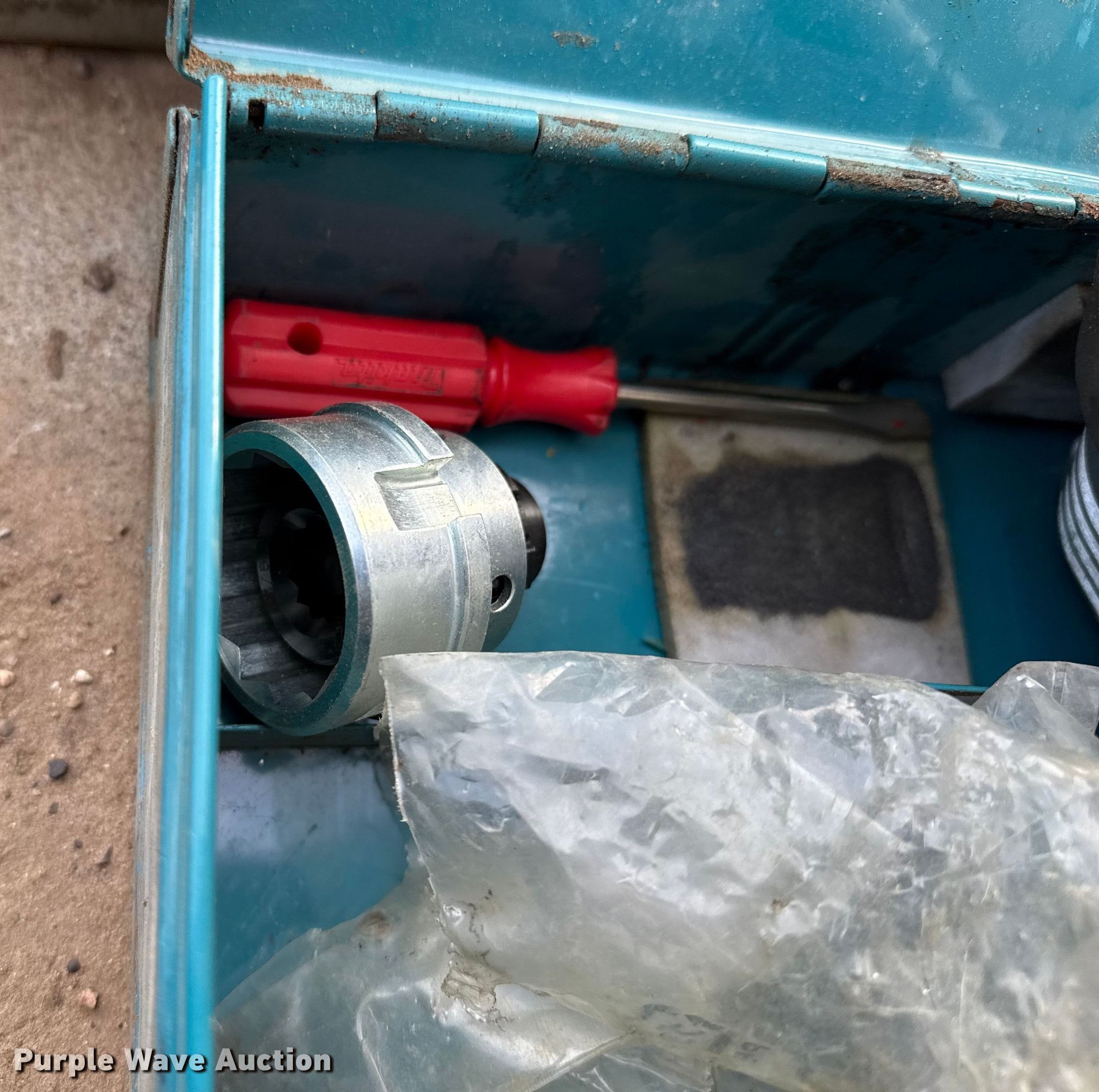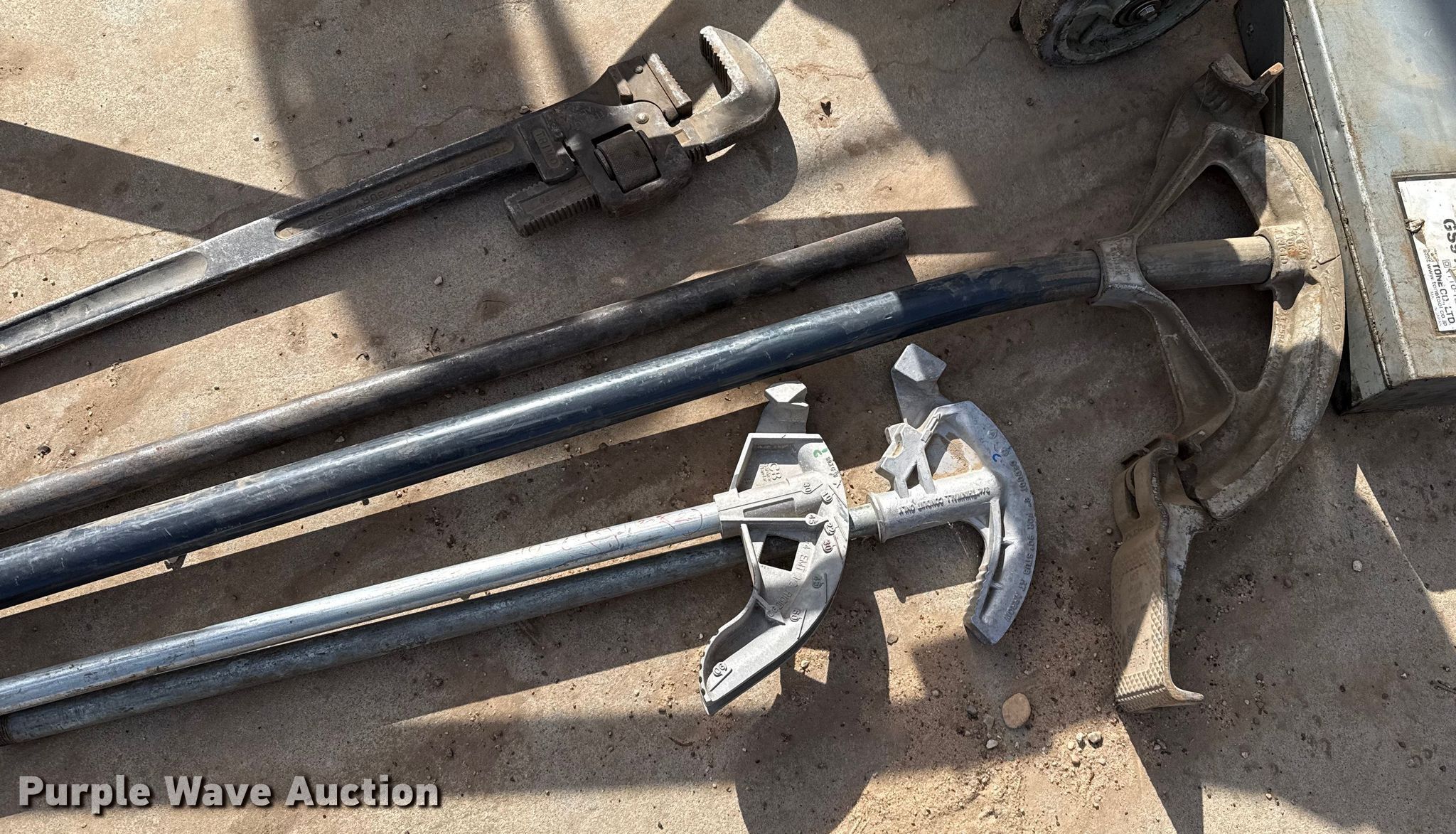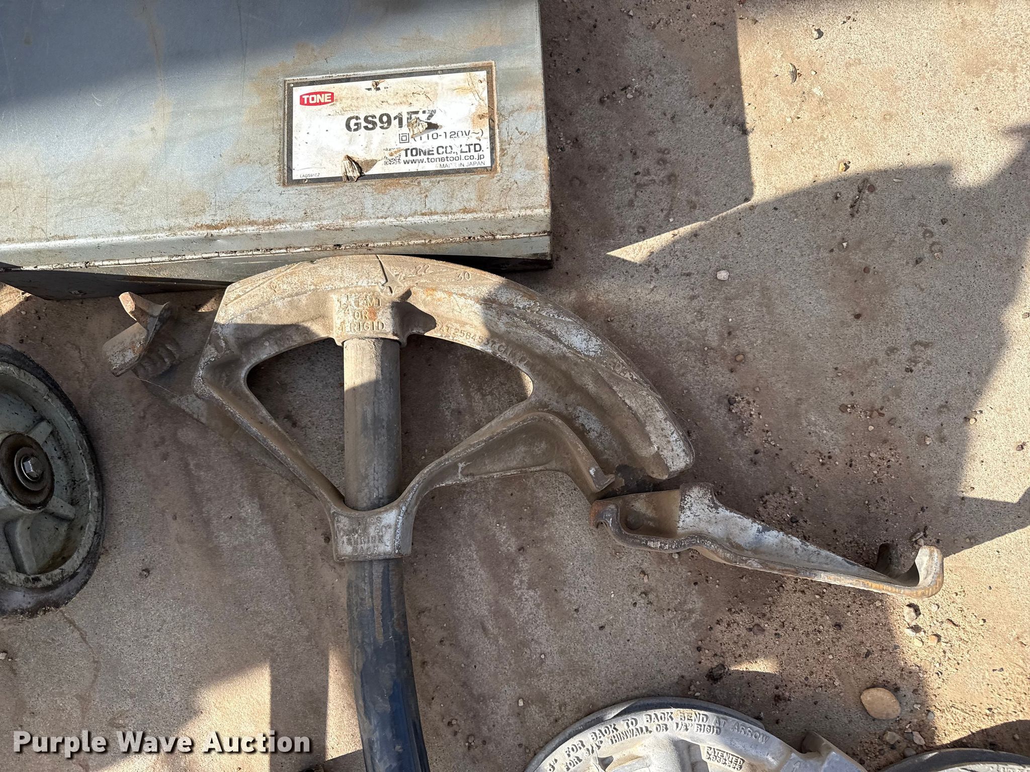 Purple Wave is selling a used Tools in Kansas. This item is a Tools with the following: Pipe benders, (2) 3/4" EMT or 1/2" Rigid, (2) Greenlee 1800 mechanical benders, 1" and 1/4" EMT or 1" Rigid, Tone shear wrench, Makita shear wrench, Knockout punch set, Milwaukee 1/4" hex drive drill, CST/berger laser level, Greenlee PVC heater, Volts: 230, Phase: Single, Amps: 30, Pipe capacity: 1/2" to 6", Milwaukee corded band saws, Cord needs replaced